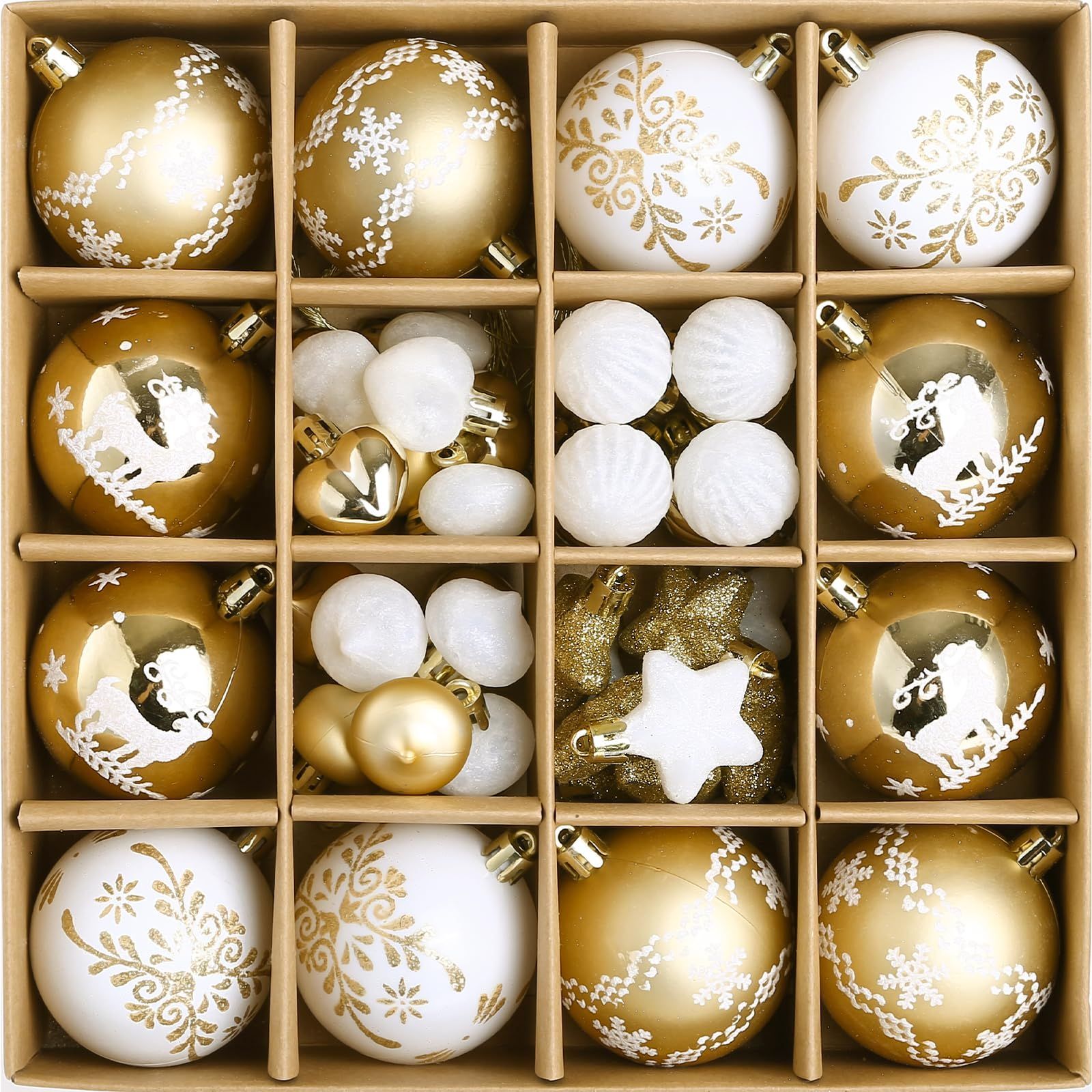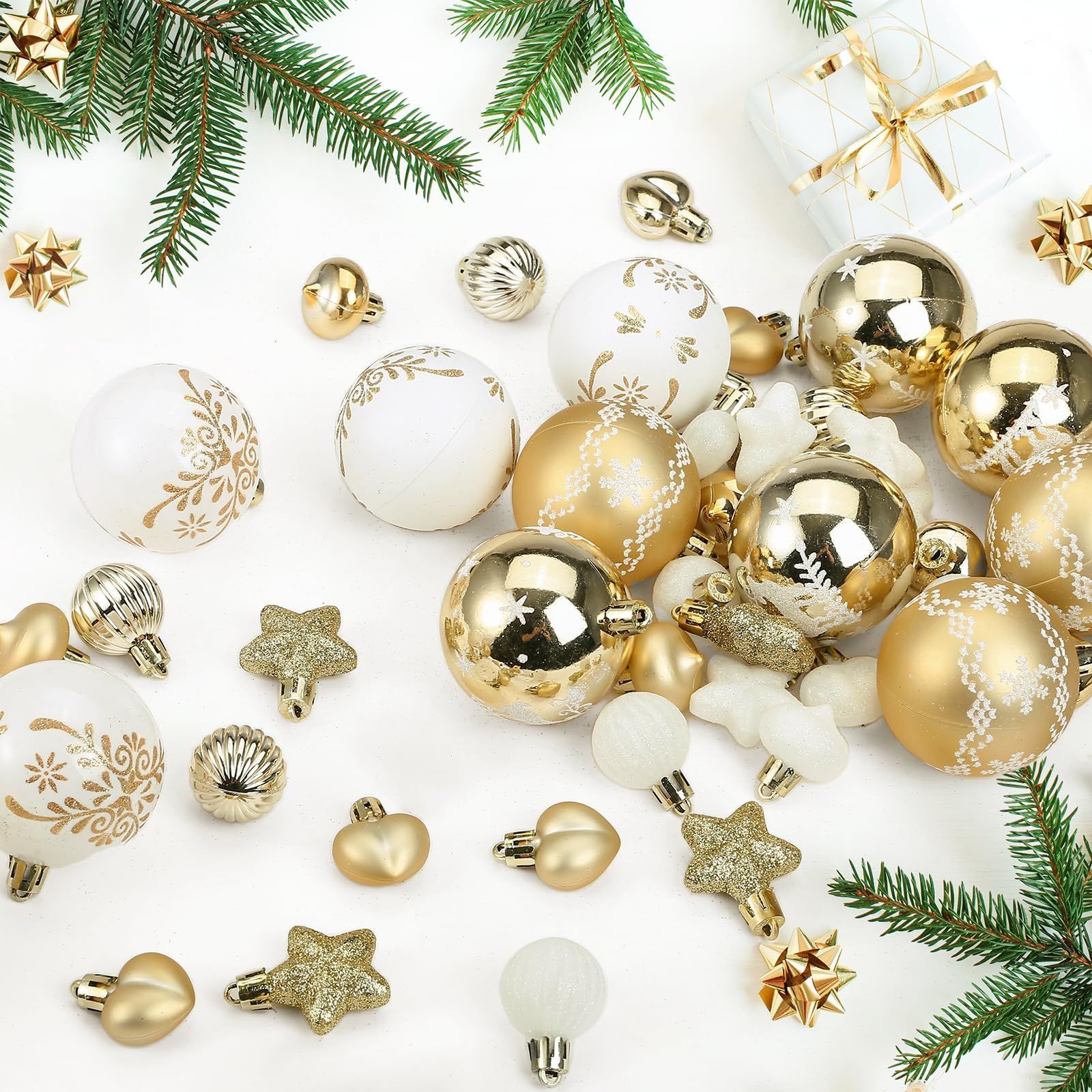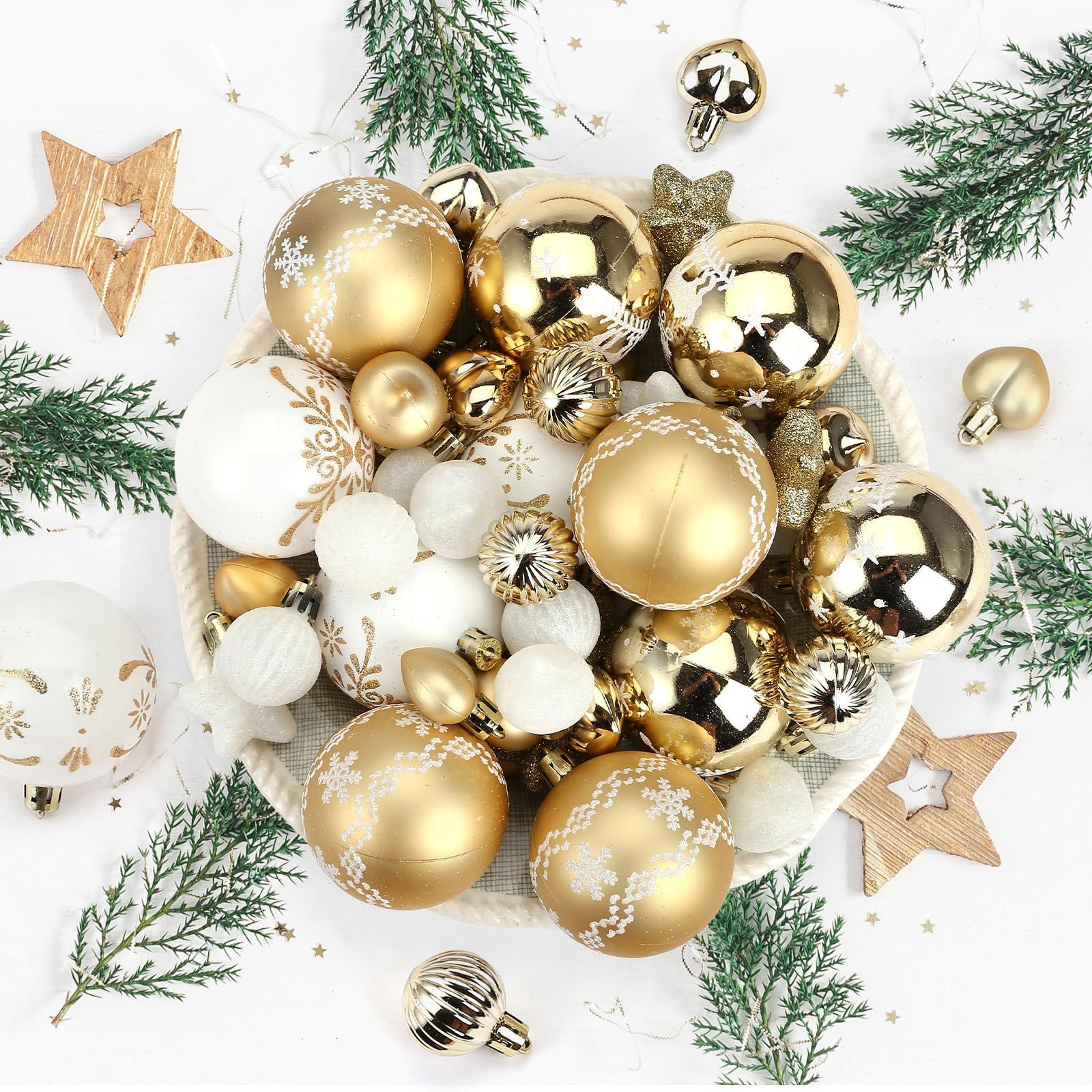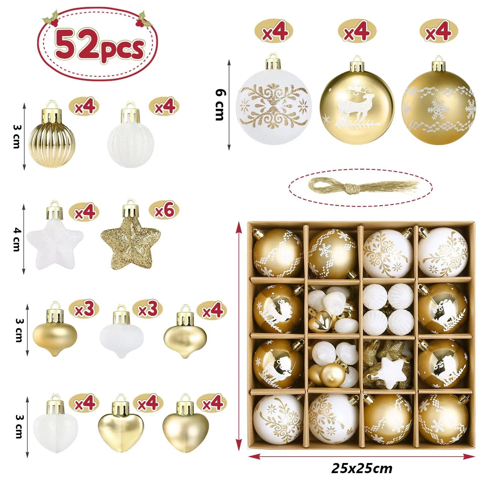 Kesote クリスマスツリー オーナメント ボール 52個セット クリスマスボール 大容量 ツリー オーナメント クリスマス オーナメント 飾り 飾り付け 装飾 デコレーション 花 豪華 ゴージャス おしゃれ 北欧 白&ゴールド