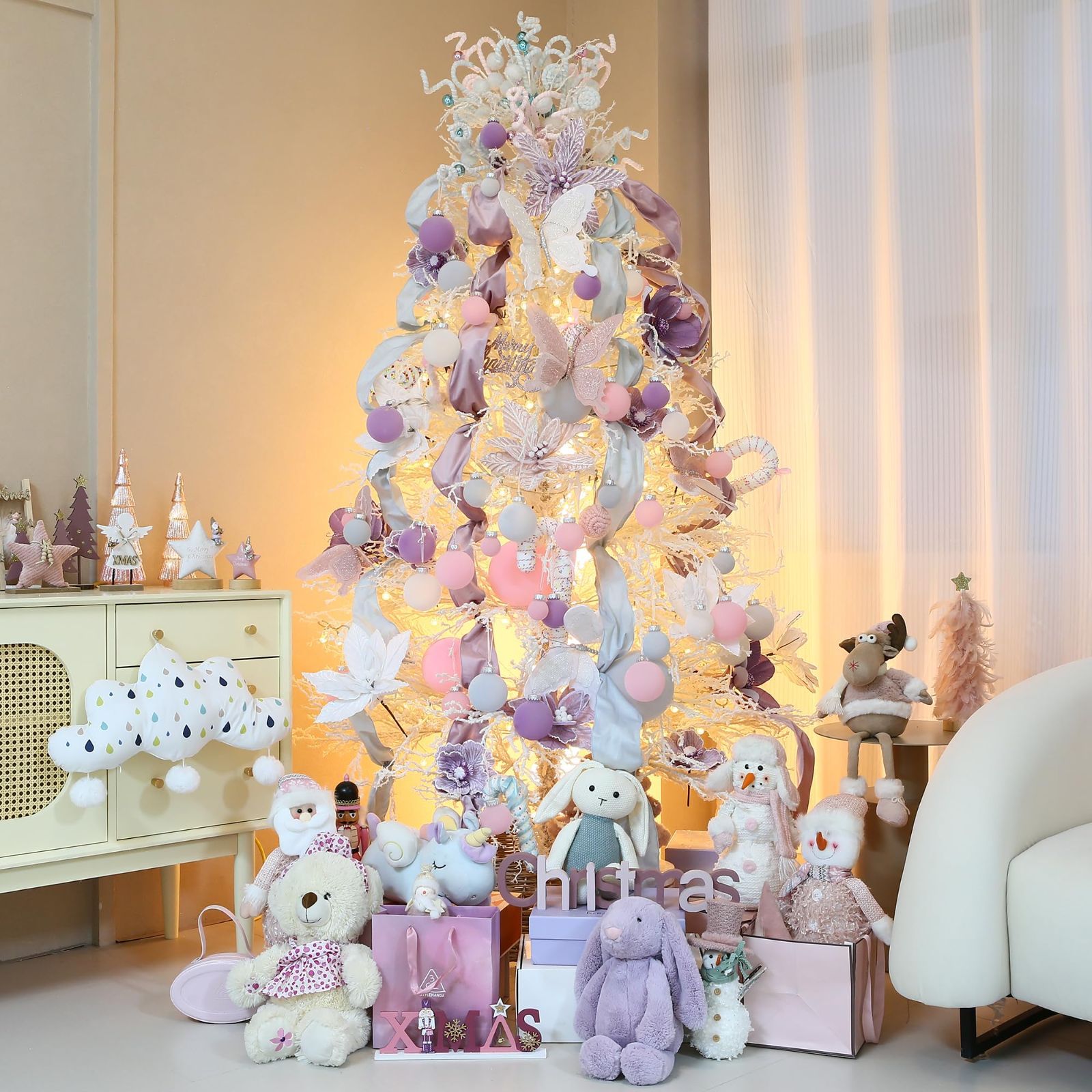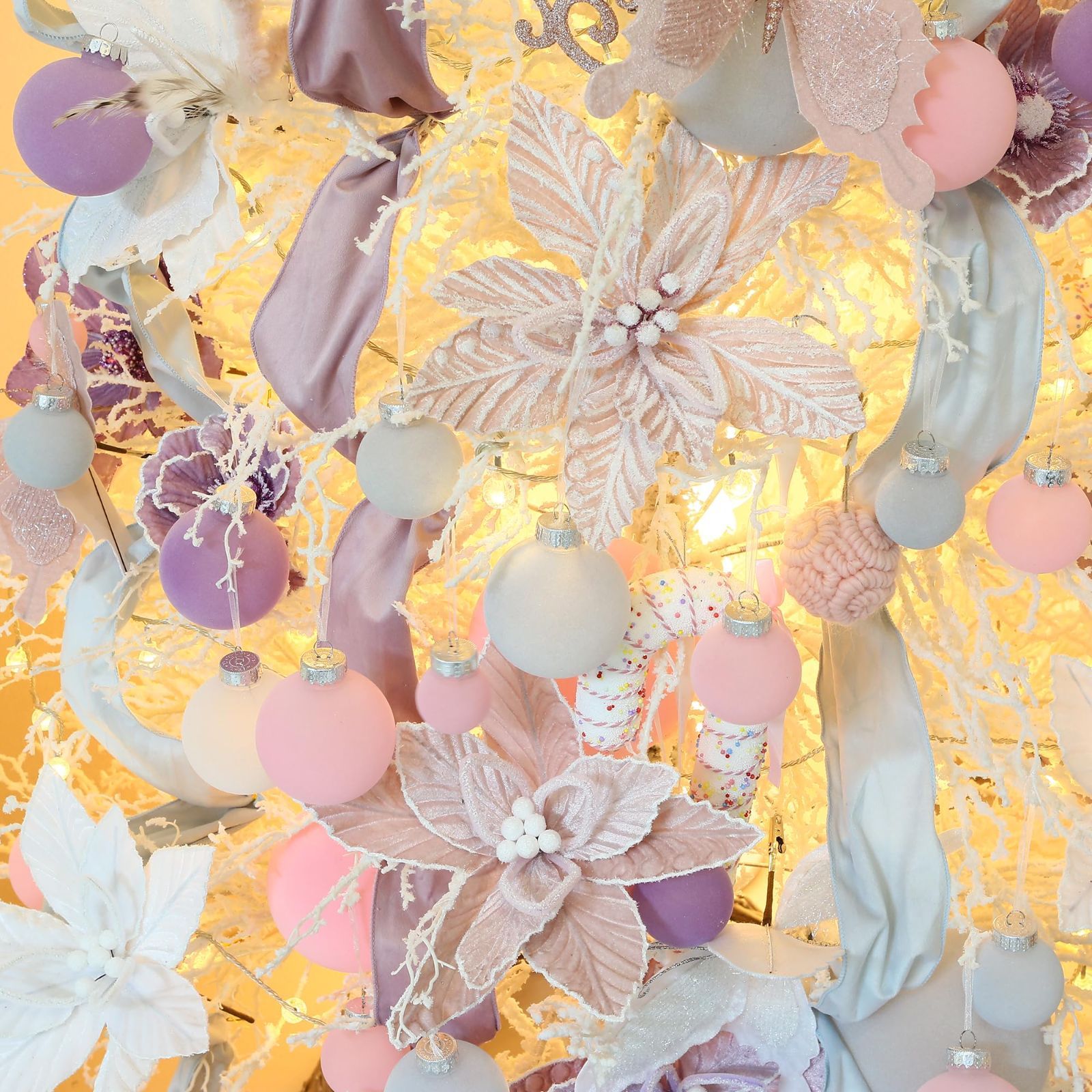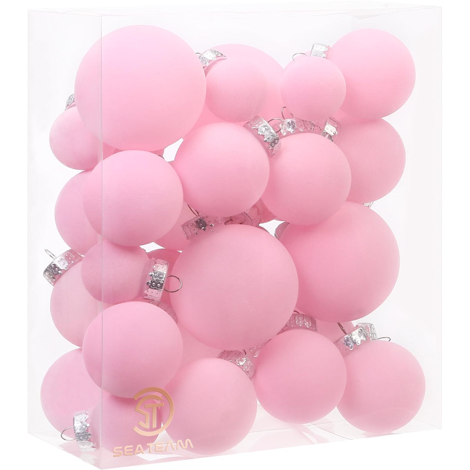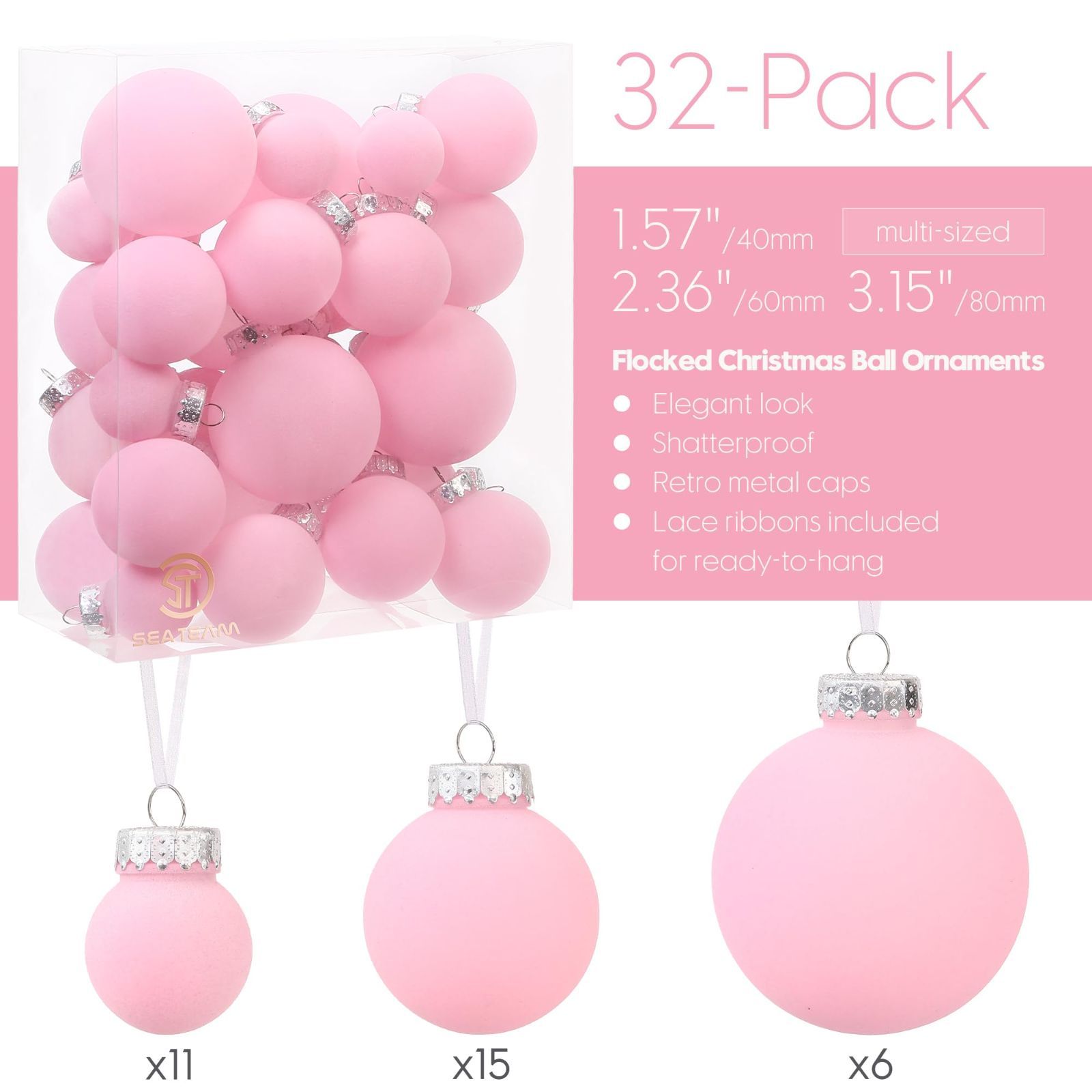Sea Team フロック加工ベルベットクリスマスボール オーナメント クリスマス飾り 32個豪華セット ボールミクス セット おしゃれ ツリー飾り 北欧風 多彩 可愛 華奢 人気 キラキラ 飛散防止 フック付き 新年(32個セット ピンク)