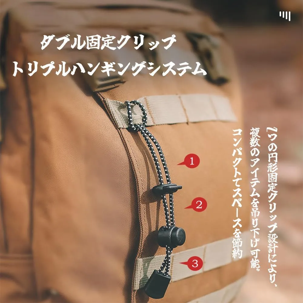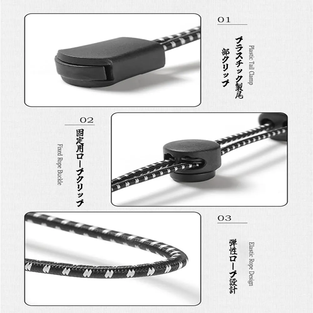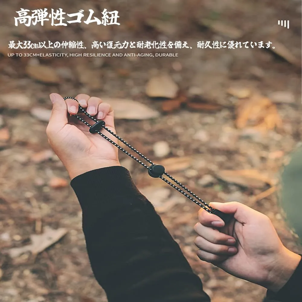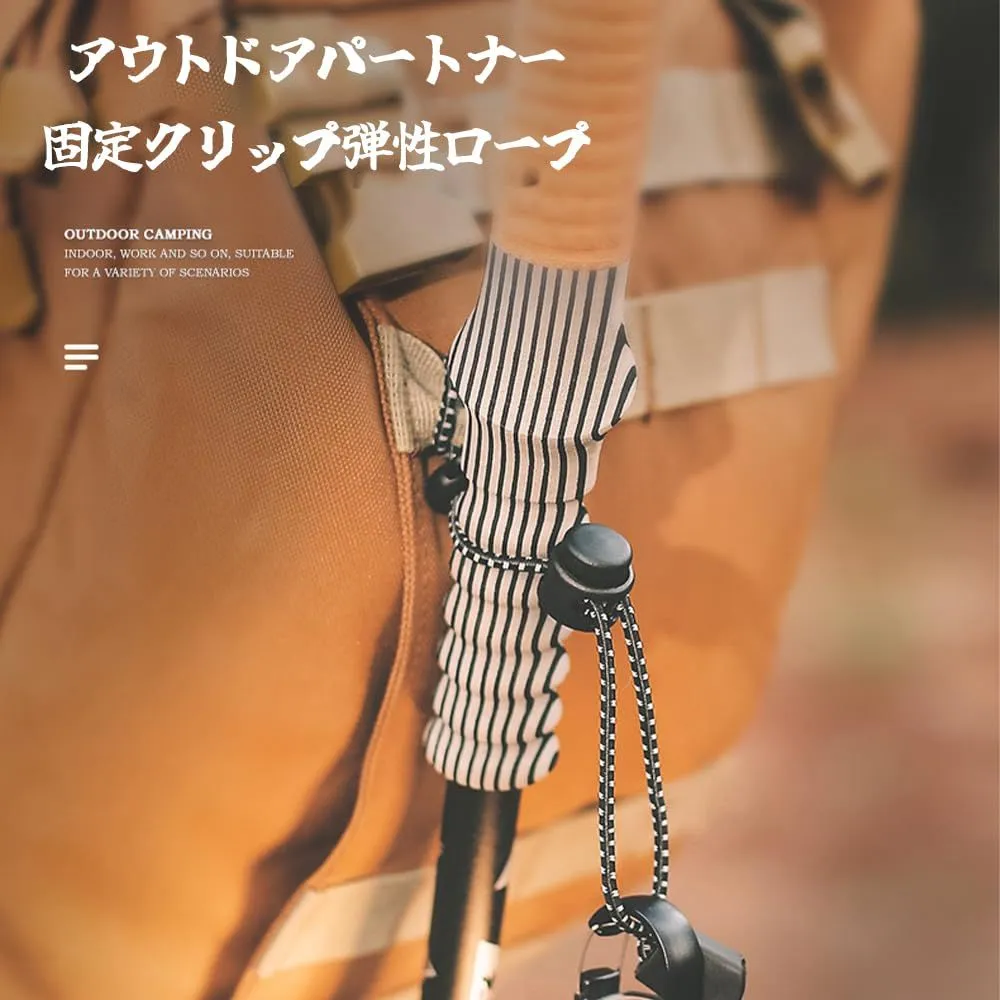 【耐久性と伸縮性】高強度バンジーコードと丈夫なプラスチックバックルを採用。繰り返しの使用でも伸びたり壊れたりしにくく、登山やキャンプなどの過酷な環境にも対応。