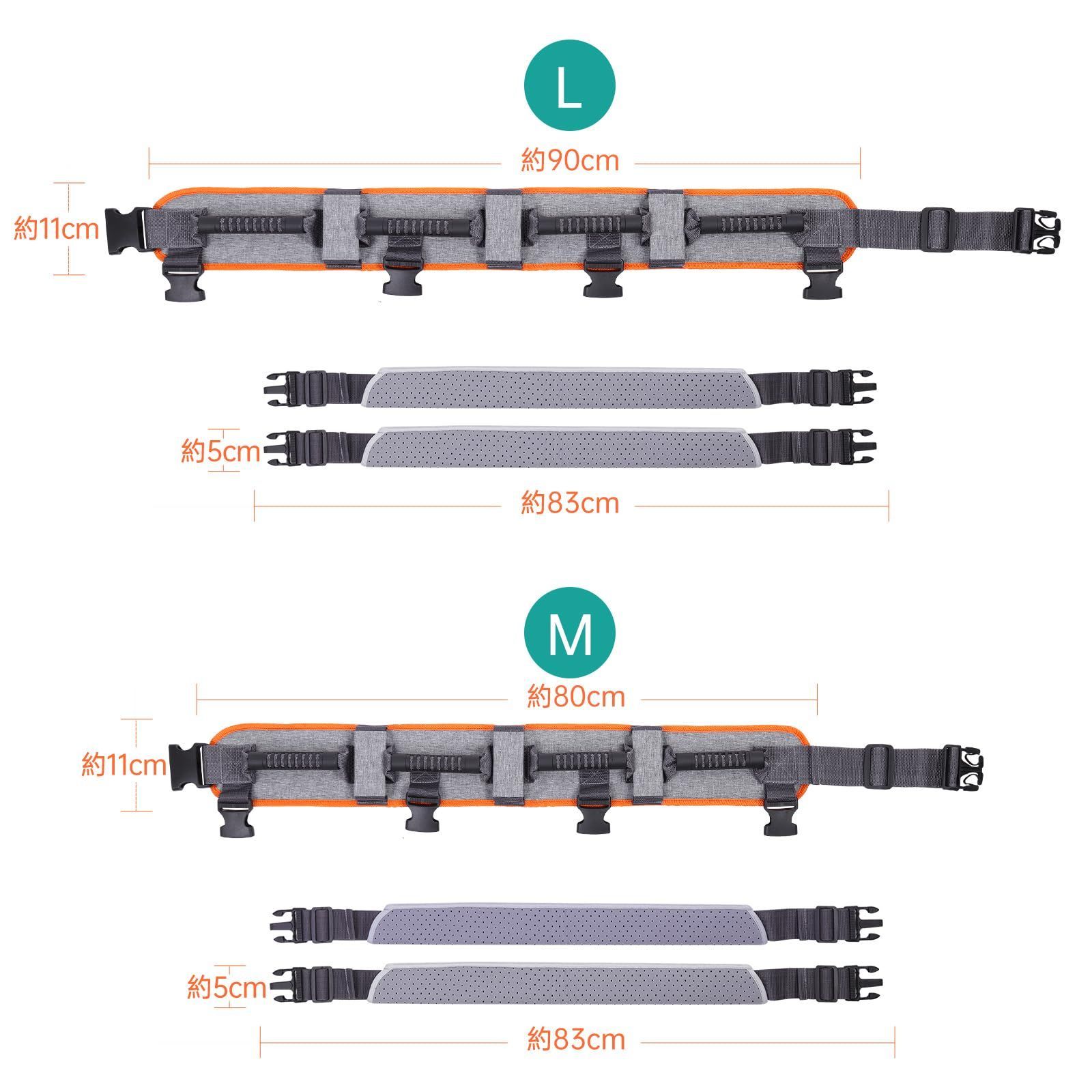 【多サイズ対応、体型に合わせて選べる】Mサイズ(80cm、ウエスト80-96cmに対応)とLサイズ(90cm、ウエスト90cm以上に対応)の2種類をご用意。ベルト幅は11cmで、長時間の使用でも快適です。日常生活や屋外活動での利用に最適です。