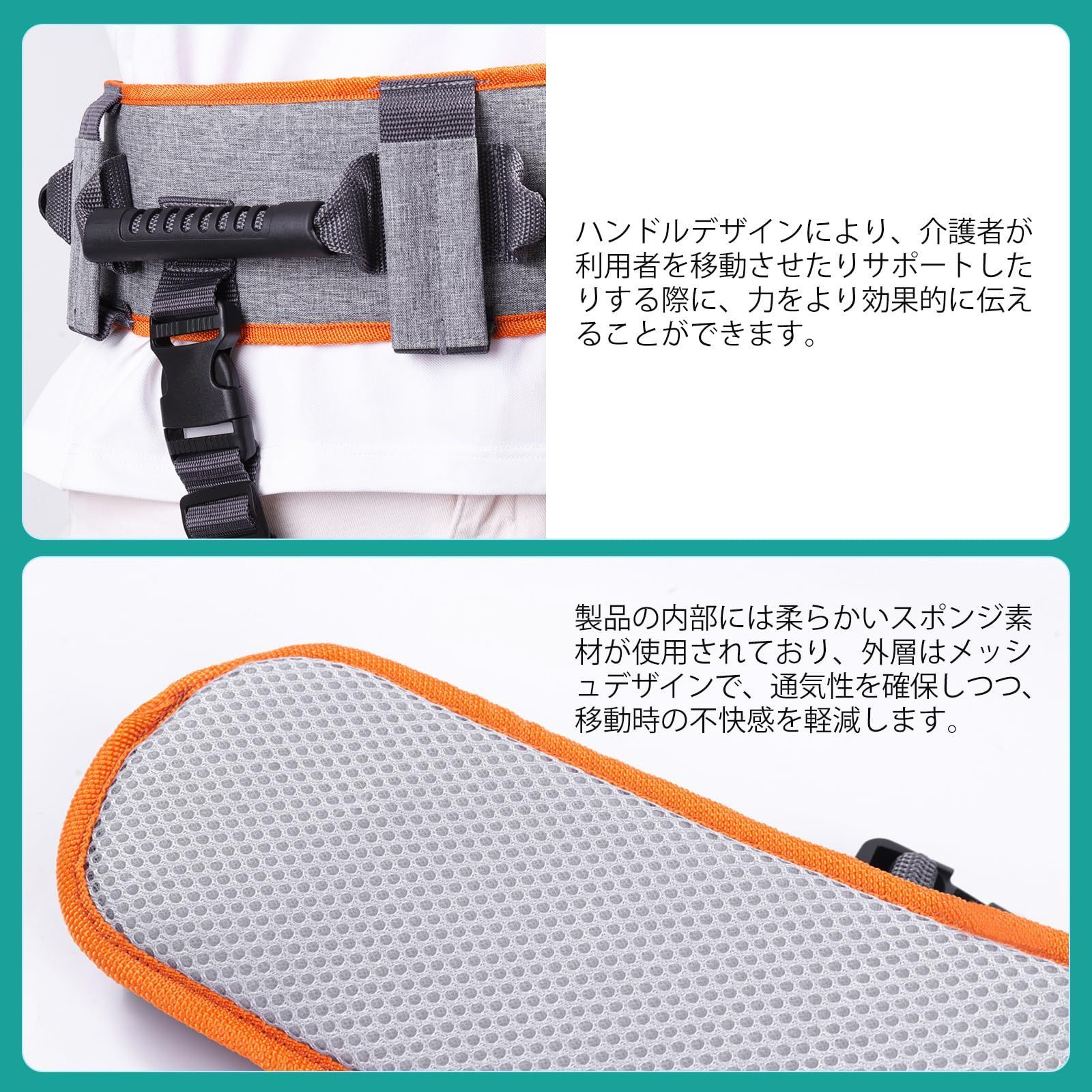 【全方向からサポート、スムーズな移動】ベルトには4つの横方向と3つの縦方向のハンドルが付いており、立ち上がり、移動、歩行などのシーンで全方向からサポートします。寝室、浴室、廊下など、さまざまな場所で介護者が安全にサポートし、転倒のリスクを減少させます。