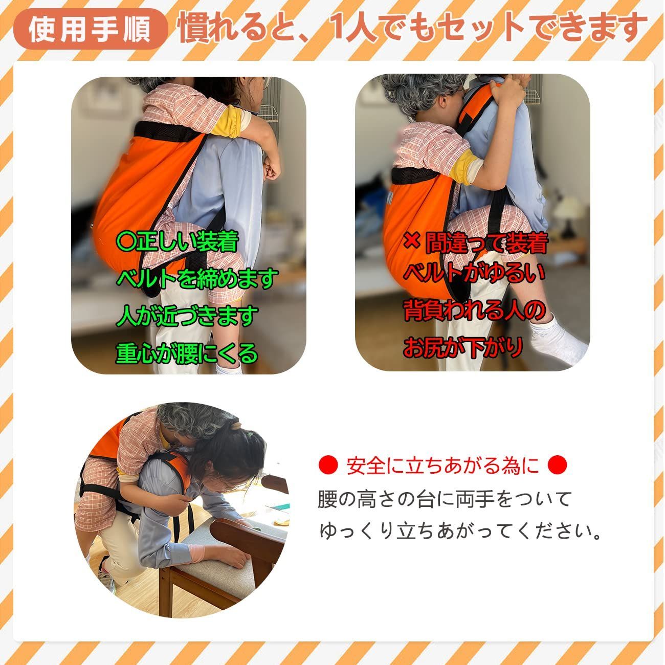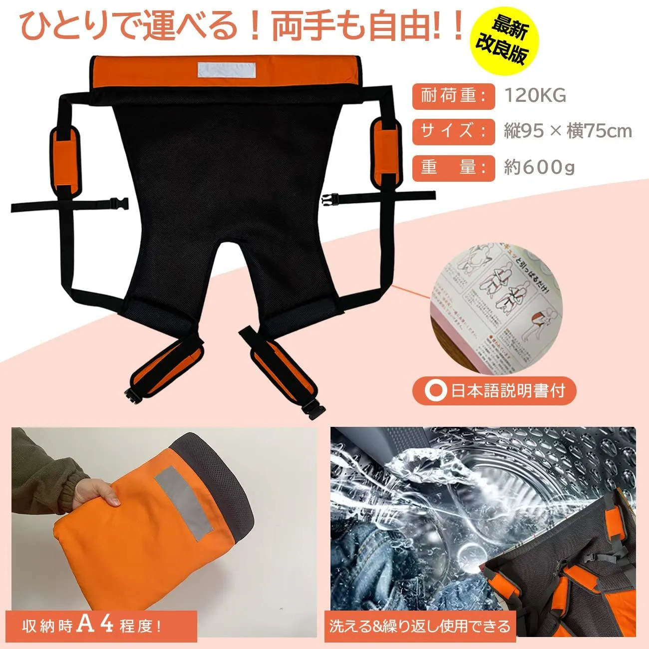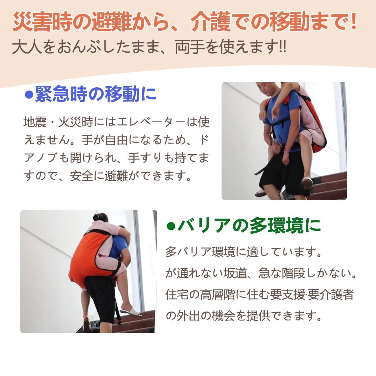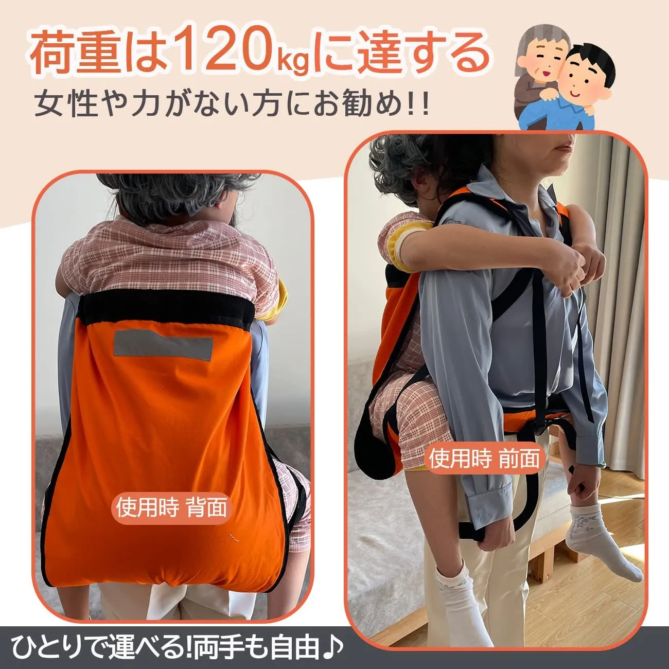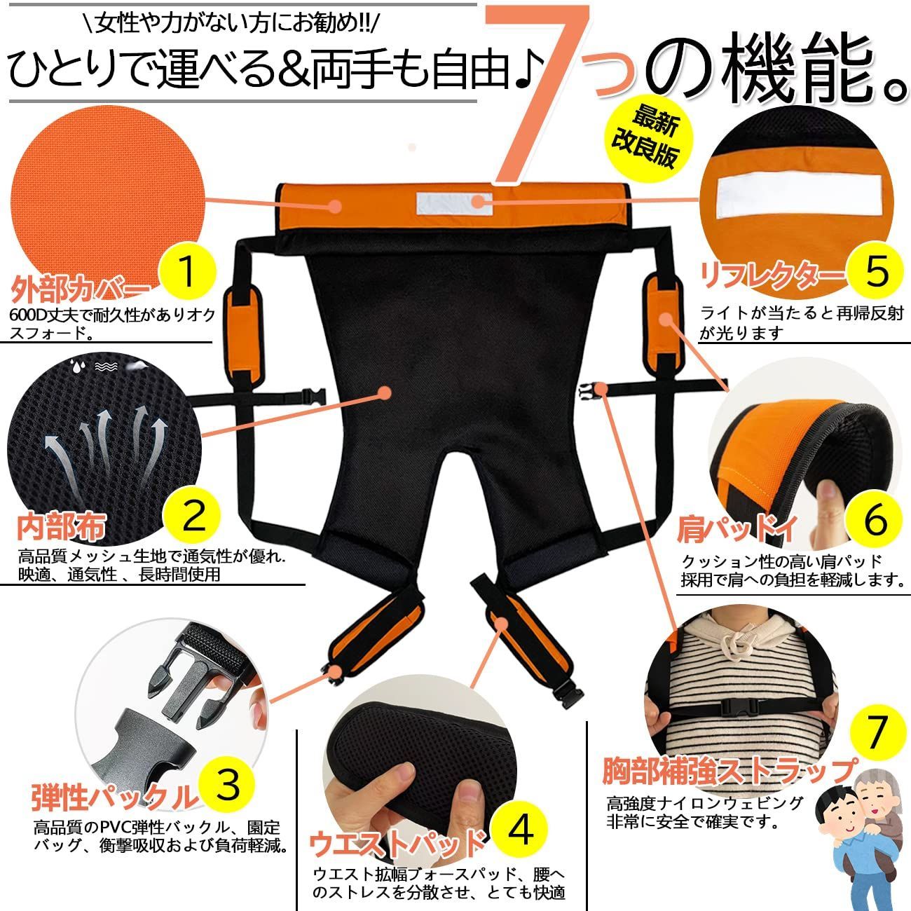 【最新改良】介助ベルト 大人用 耐荷重120kg 緊急時の移動に おんぶ紐 避難用具 介護用品 安全背負い具 介護リフト