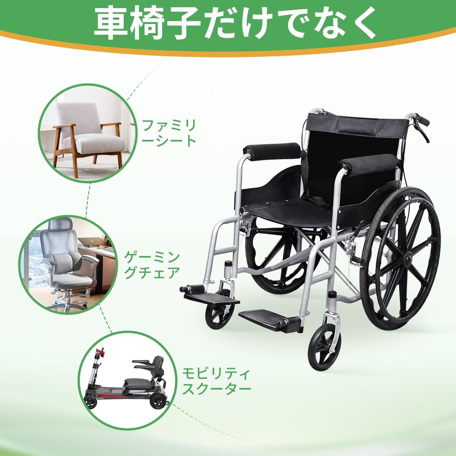 【幅広い対応】車椅子だけでなく、家庭用椅子、ゲーミングチェア、オフィスチェア、リクライニングチェアなど、アームレスト付きの椅子はほとんど対応可能です。
