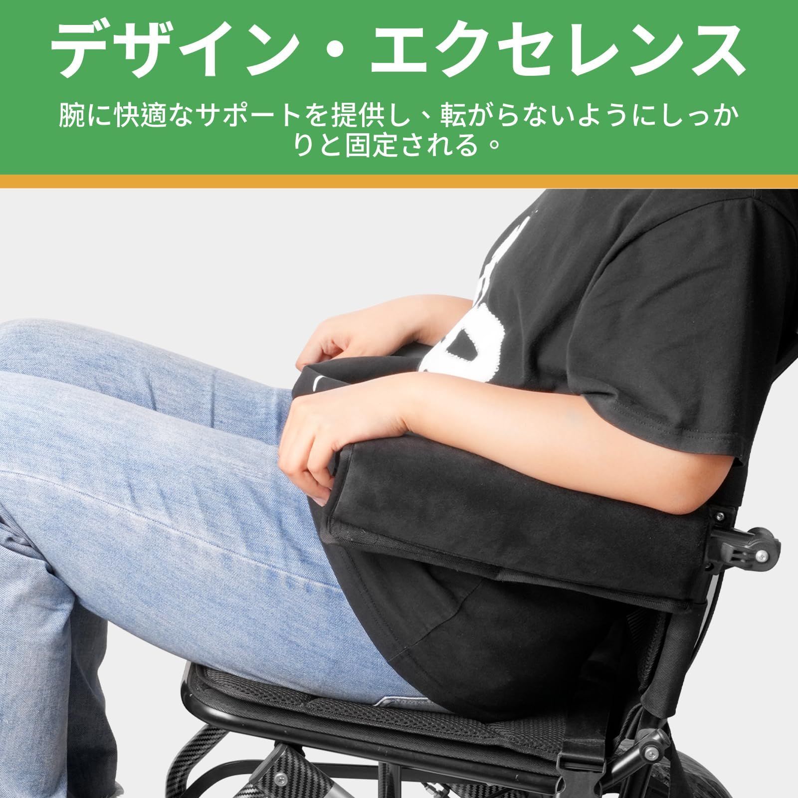 車椅子用アームレストパッドひじ掛け用クッション防水耐磨アームクッション着脱簡単 痛み軽減 吸汗速乾 手入れ簡単 疲れない 洗える車椅子用 オフィスチェア用2個セット 黒です