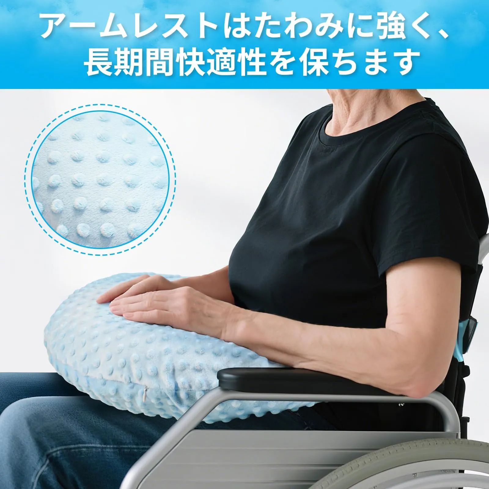 【疲労軽減と滑り止め】車椅子用アームサポートクッションは、長時間の着座による疲労を軽減。確実な滑り止めストラップが車椅子にしっかり固定され、転落を防止します。これは、移動に制限のある高齢ユーザーにとって不可欠な安全性です