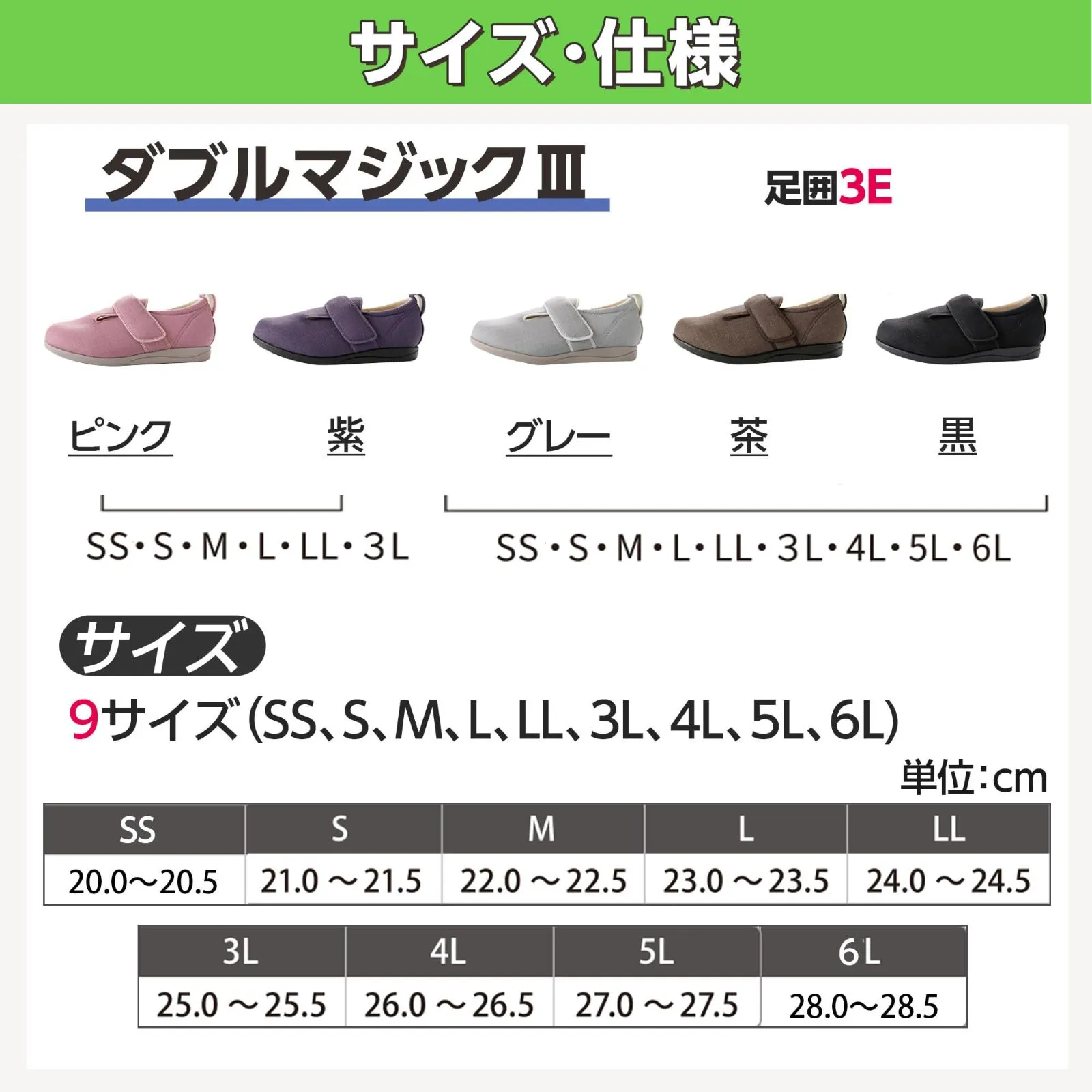 [徳武産業] あゆみシューズ ダブルマジック3 施設用 足囲3E 両足