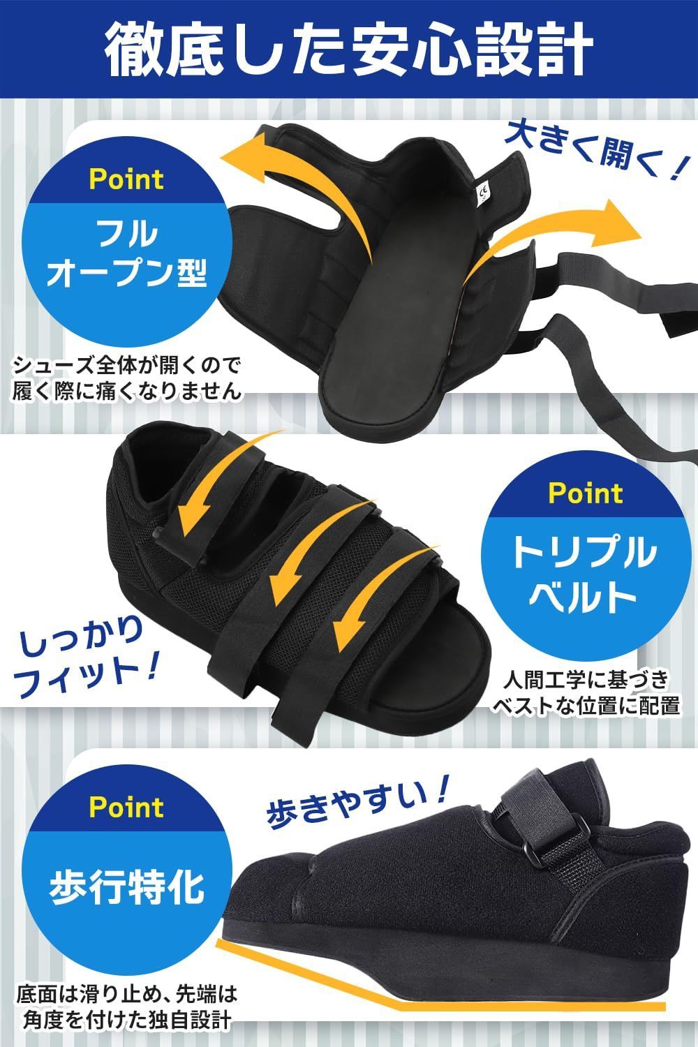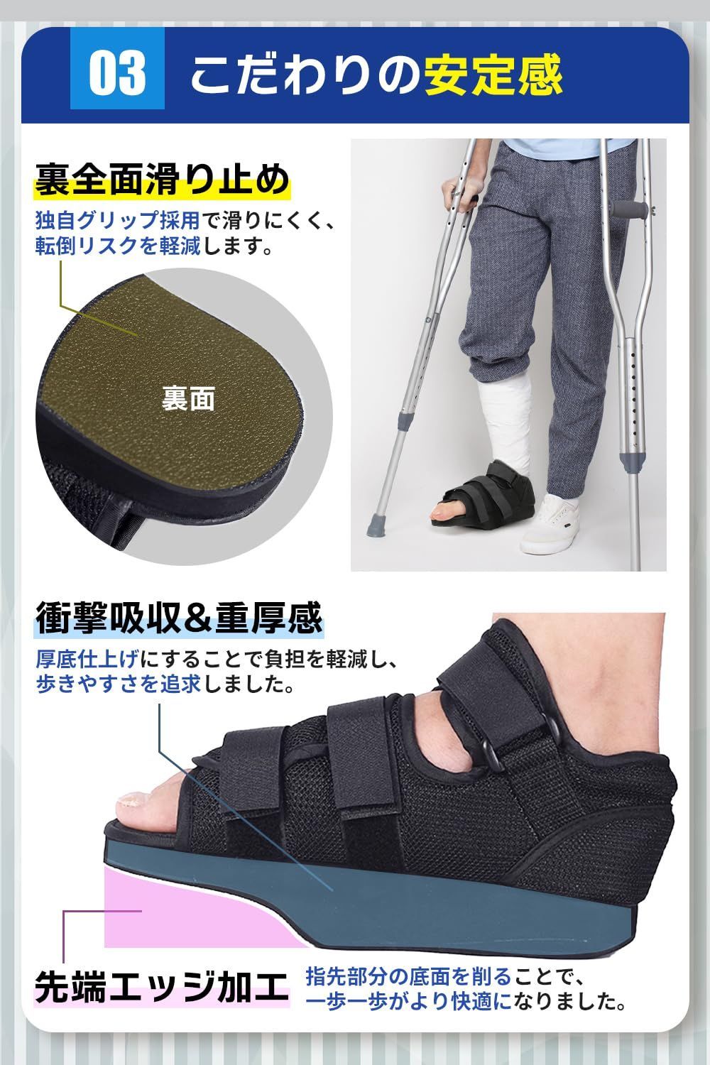 【現役整体師監修】 ギプスシューズ 骨折 サンダル 履きやすい 滑り止め 調節可能 楽々 歩行 OPEN WALK 左右兼用 (M)