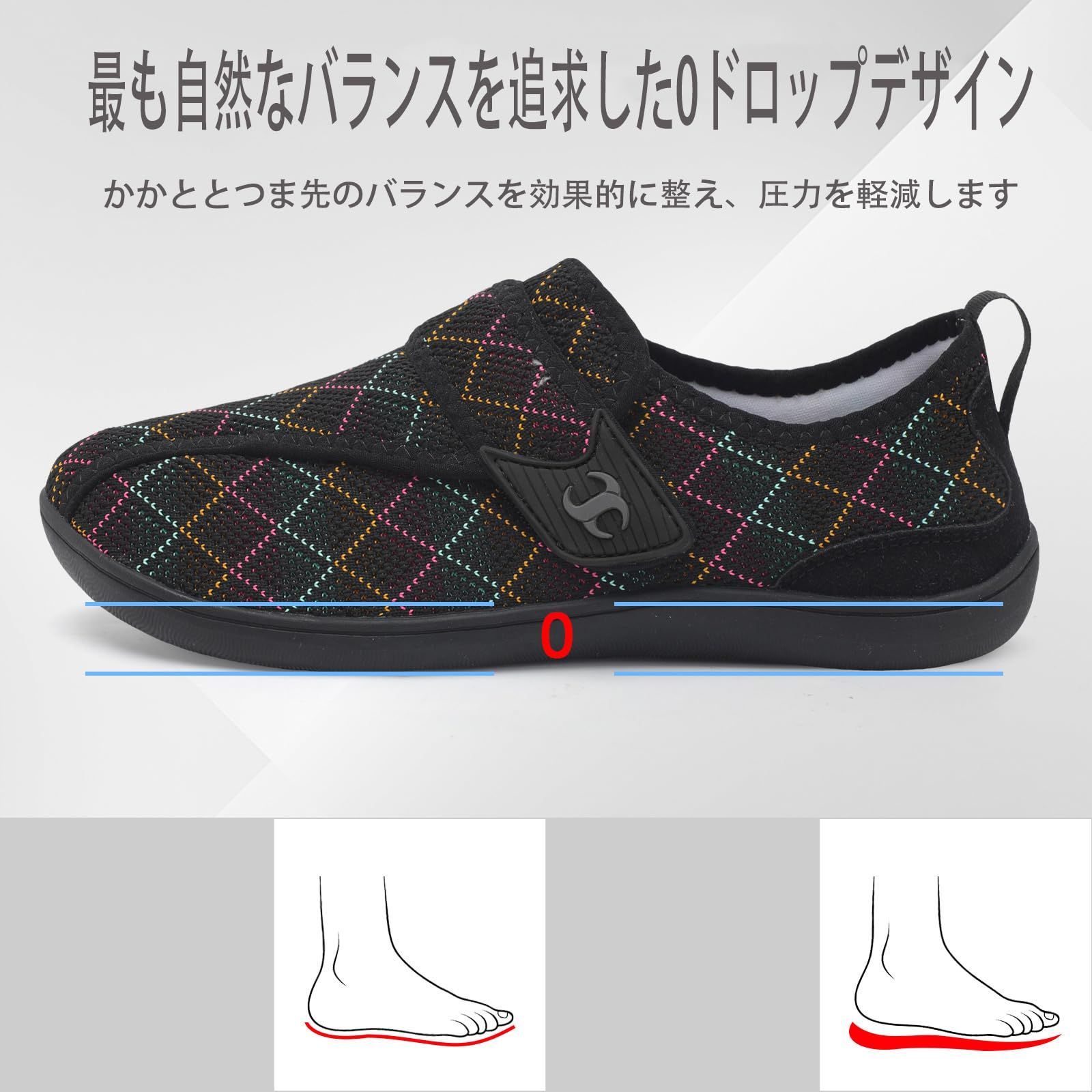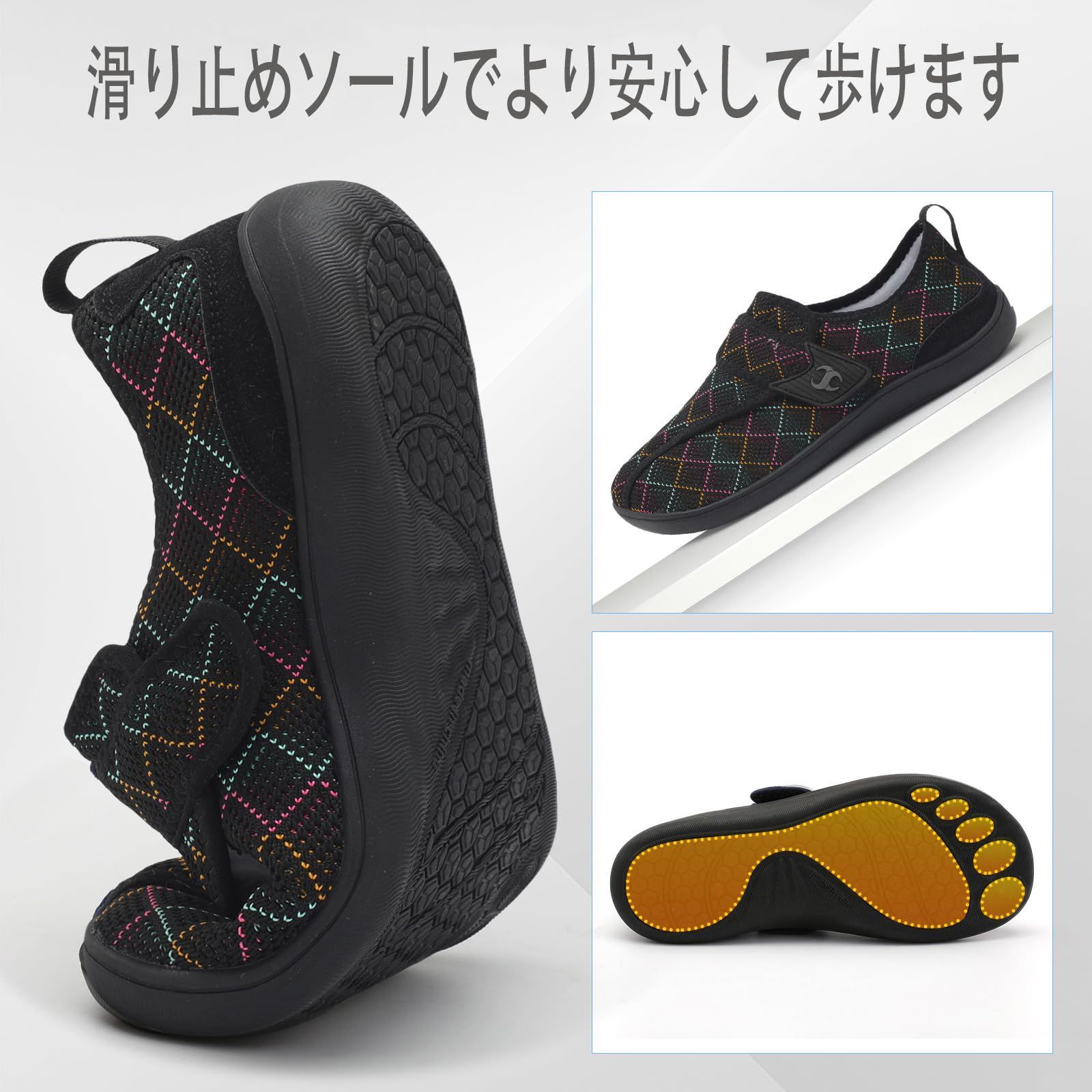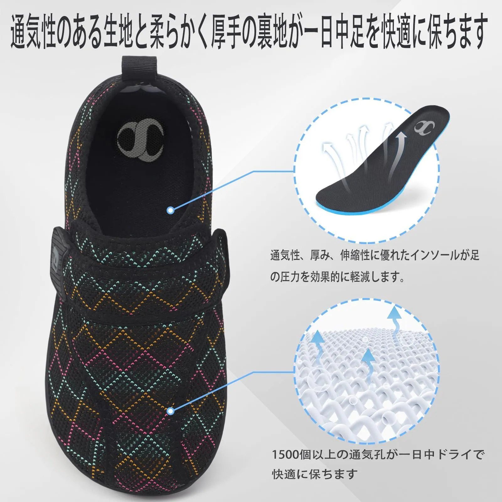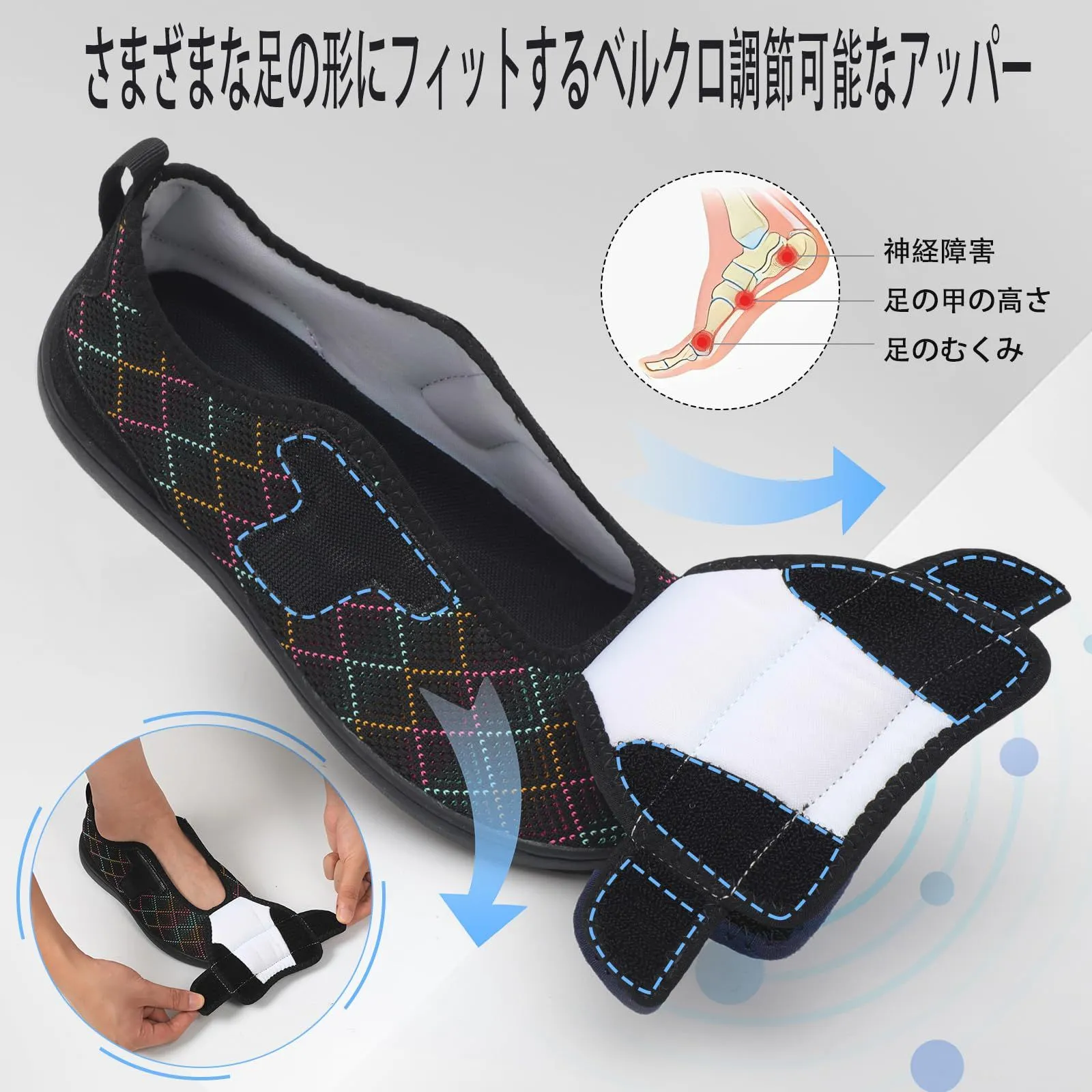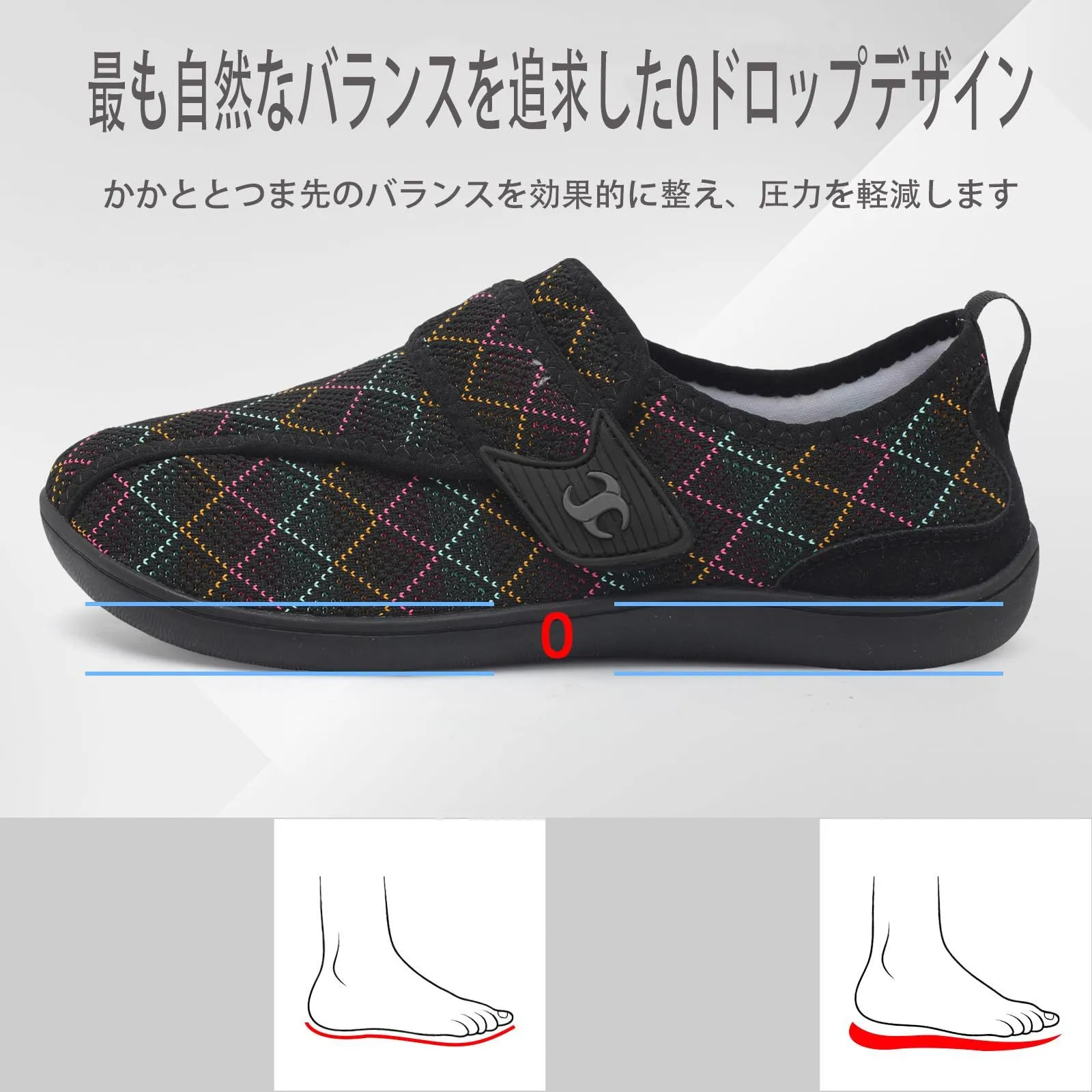 軽量ベアフットシューズ:伸縮性のあるアッパーと立体編み構造が最高の快適さを提供し、汗や臭いを軽減します。この軽量な女性用糖尿病シューズを履けば、すぐに足の痛みが和らぎ、リラックスした時間を過ごせます。