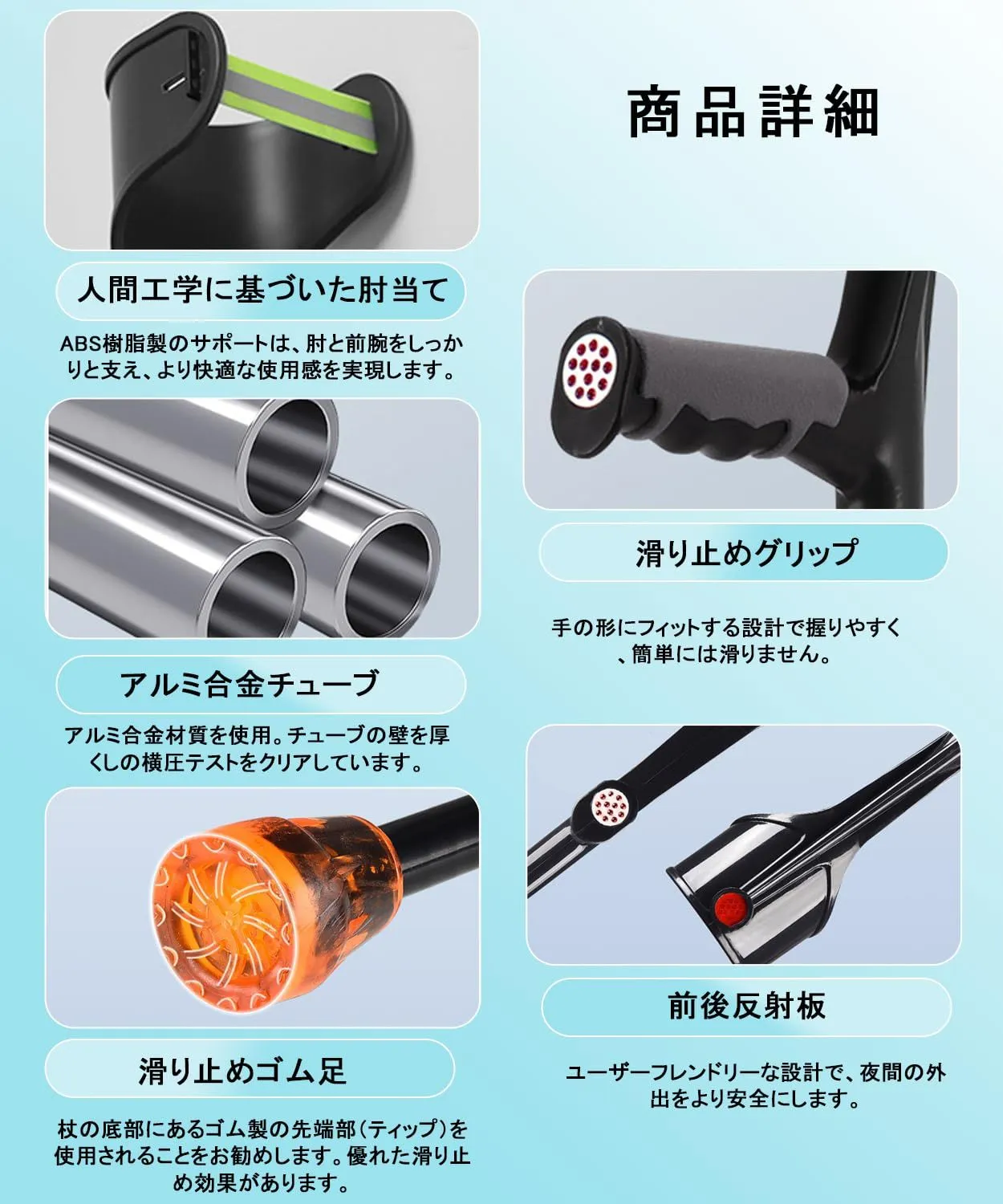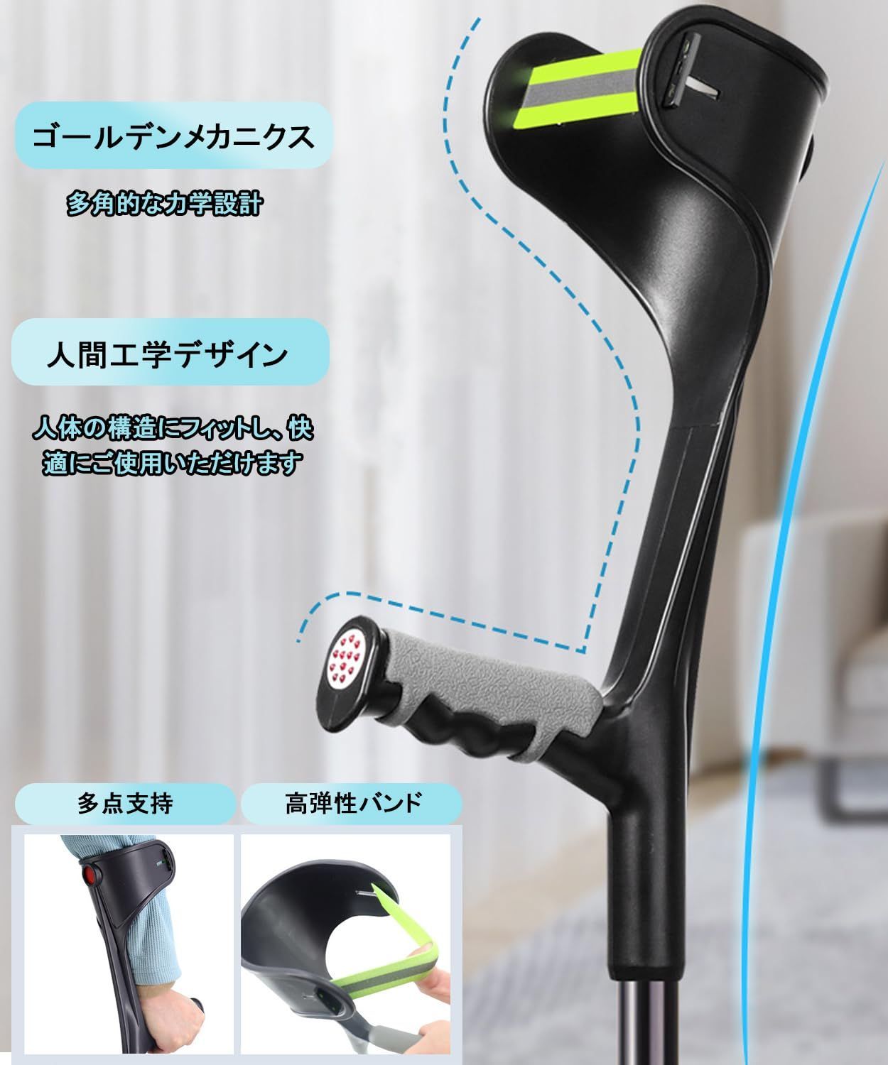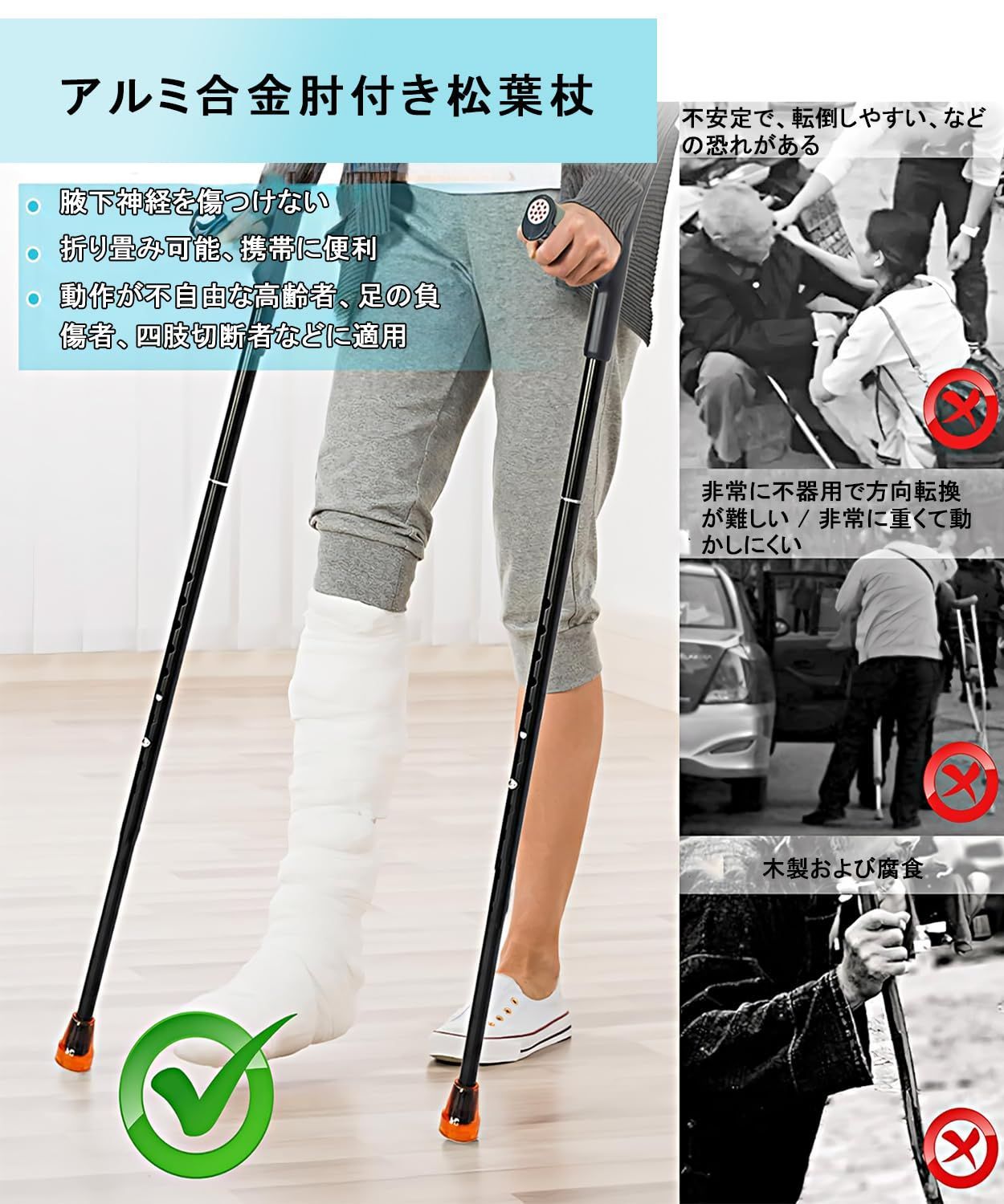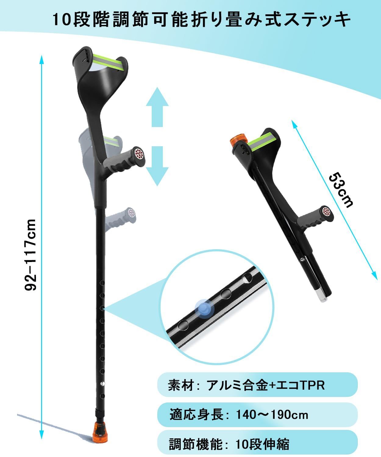 クラッチ杖 ロフストランドクラッチ 松葉杖 ステッキ 歩行補助 介護補助 折りたたみ 軽量 滑り止め 耐久性に 10段階調節可能 対応身長140-190cm 持ち運び便利 男女兼用