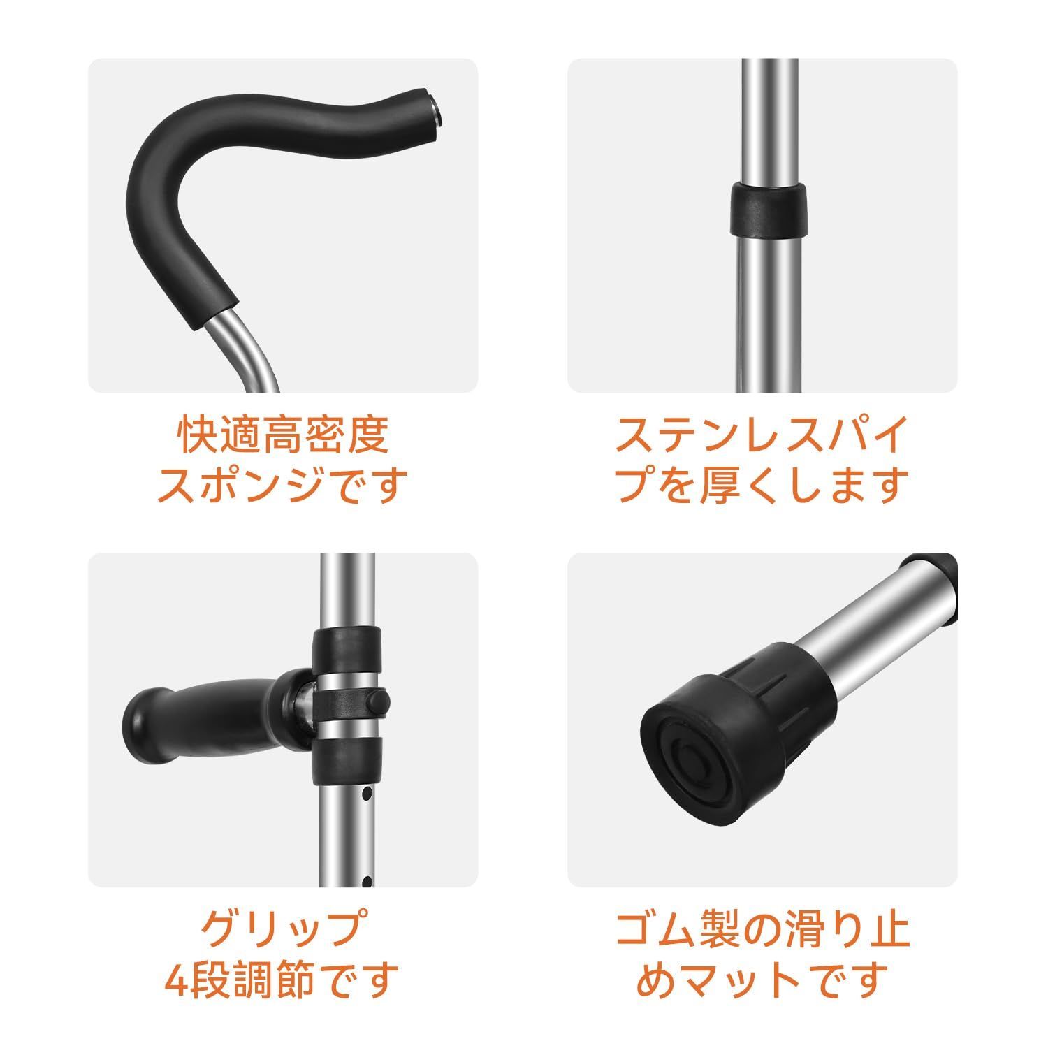 松葉杖 F型 折りたたみステッキ 松葉づえ ステンレス鋼?震杖 衝撃吸収杖