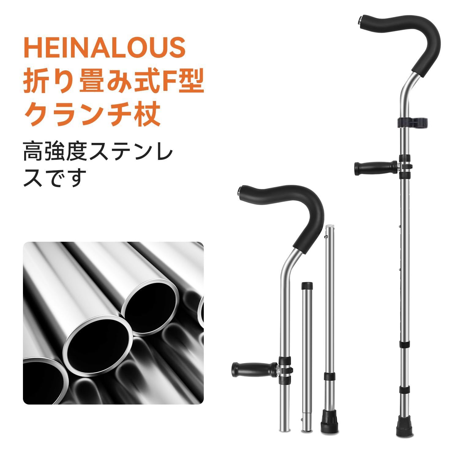 【頑丈なF型松葉杖】このHEINALOUS F型松葉杖は、安定したサポートと歩行のサポートを提供するために設計されています。頑丈な構造と快適なハンドルを備えており、歩行時にユーザーが良好なバランスとサポートを得られるようにしています。