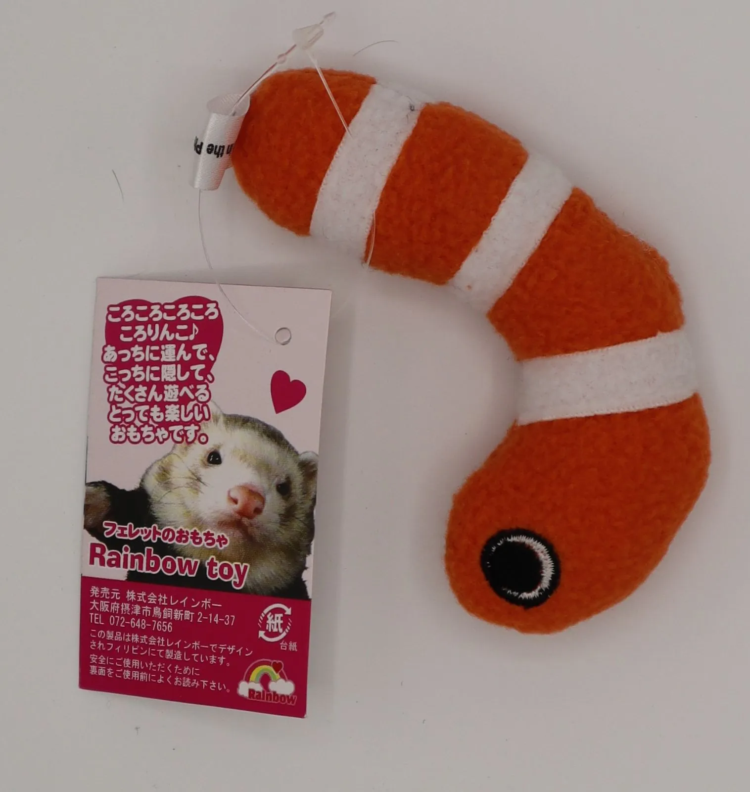 手で振ってスズの音と動きでフェレットちゃんも大興奮! 噛み付きやすく、ぬいぐるみを抱き締める姿にキュン♪ 原材料:ポリエステル