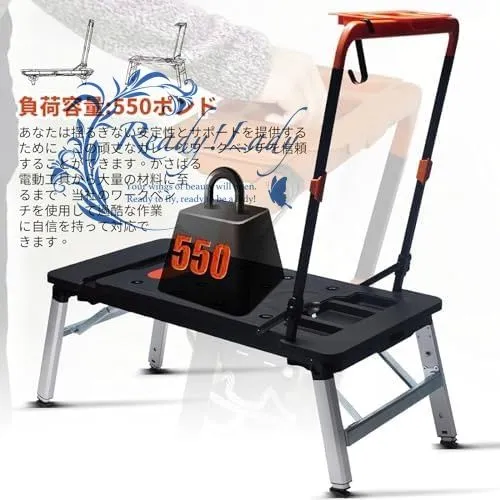 【高耐荷重能力&安定性抜群】サビにくく、丈夫で軽量なアルミニウム製フレーム脚を採用して、足場台の高さは52– 78cmの間で調整できます。頑丈な構造になっているため、作業台として最大耐荷重250kg、抜群の安定性を実現します。