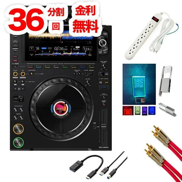 2020 年代を代表する CDJ 特徴 CDJ-3000X はクラウドストレージやストリーミングなどのオンラインメディアに対応し、現代の多様な DJ スタイルに柔軟に応えます。内蔵 Wi-Fi ( R )により LAN ケーブルなしでインターネットに接続でき、現場でのセットアップをよりスムーズに。また、製品フロント部には NFC タッチエリアも搭載し、スマートフォンをかざすだけでオンラインメディアに瞬時にアクセスできます。さらに、 CDJ-3000X は多様なプレイスタイルに応えるため、操作性・演奏性・音質といった基本性能も大幅に進化しています。 10.1 インチの高解像度タッチディスプレイにより、選曲時の視認性と操作性が飛躍的に向上。ジョグホイールは可変抵抗の調整幅を広げ、繊細なプレイにも対応しています。 PLAY/CUE ボタンは構造を見直し、耐久性を高めました。音質面では、新設計の電源部と高性能 DAC の採用により、力強さと解像感を両立したサウンドを実現しています。 AlphaTheta は、パイオニア株式会社の一部門としてスタートし、 30 年以上にわたり、 DJ 機器の進化を牽引してきました。現在も DJ への情熱、技術力、そして開発に対する姿勢はそのままに、新たなステージに立っています。私たちはこれからも、音楽を通じて人と人がつながる体験を大切にし、音楽表現の最前線に立つすべての人々を支え続けていきます。 仕様 対応ソフトウェア rekordbox for Mac/Windows rekordbox for iOS/Android Serato DJ Pro (有償) rekordbox CloudDirectPlay 対応ストレージ Dropbox Google Drive 対応ストリーミング Beatport Streaming 再生メディア USB メモリ USB SSD / HDD PC/Mac ( USB / LAN ) モバイルデバイス( iOS / Android ) 接続方式 USB Type-A × 1 (ストレージ用) USB Type-C × 2 (ストレージ / PC 接続) LAN 端子 × 1 ( PRO DJ LINK ) Wi-Fi ( IEEE802.11a/b/g/n/ac ) NFC ログイン対応 ライブラリ互換性 Device Library Plus 対応 rekordbox で解析済みのライブラリを USB 経由で持ち出し・使用可能 対応 USB フォーマット FAT16 FAT32 exFAT HFS+ ( ※NTFS 非対応) 対応音源フォーマット MP3 AAC WAV AIFF FLAC ALAC 出力端子 アナログ( RCA ) × 1 デジタル( Coaxial ) × 1 音響性能 周波数特性: 4 Hz - 40 kHz S/N 比: 115 dB 全高調波歪率: 0.0018 % ディスプレイ 10.1 インチ静電式フルカラータッチディスプレイ 外形寸法 344.6 × 490.4 × 130.1 mm ( W × D × H ) 質量 6.0 kg 電源 AC 100-240 V, 50/60 Hz 付属品 電源コード 音声ケーブル(アナログ / デジタル) LAN ケーブル クイックスタートガイド 使用上のご注意 保証書(一部の地域)