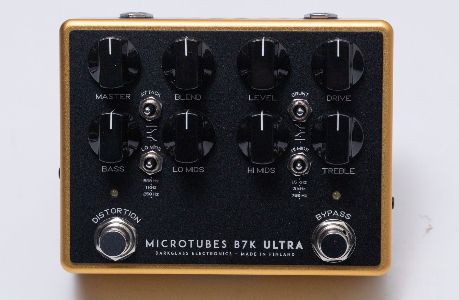 低域のニュアンスを変えるGruntスイッチや高音域の強さを変えるAttackスイッチと合わせて、多彩なサウンドメイクを可能にします。