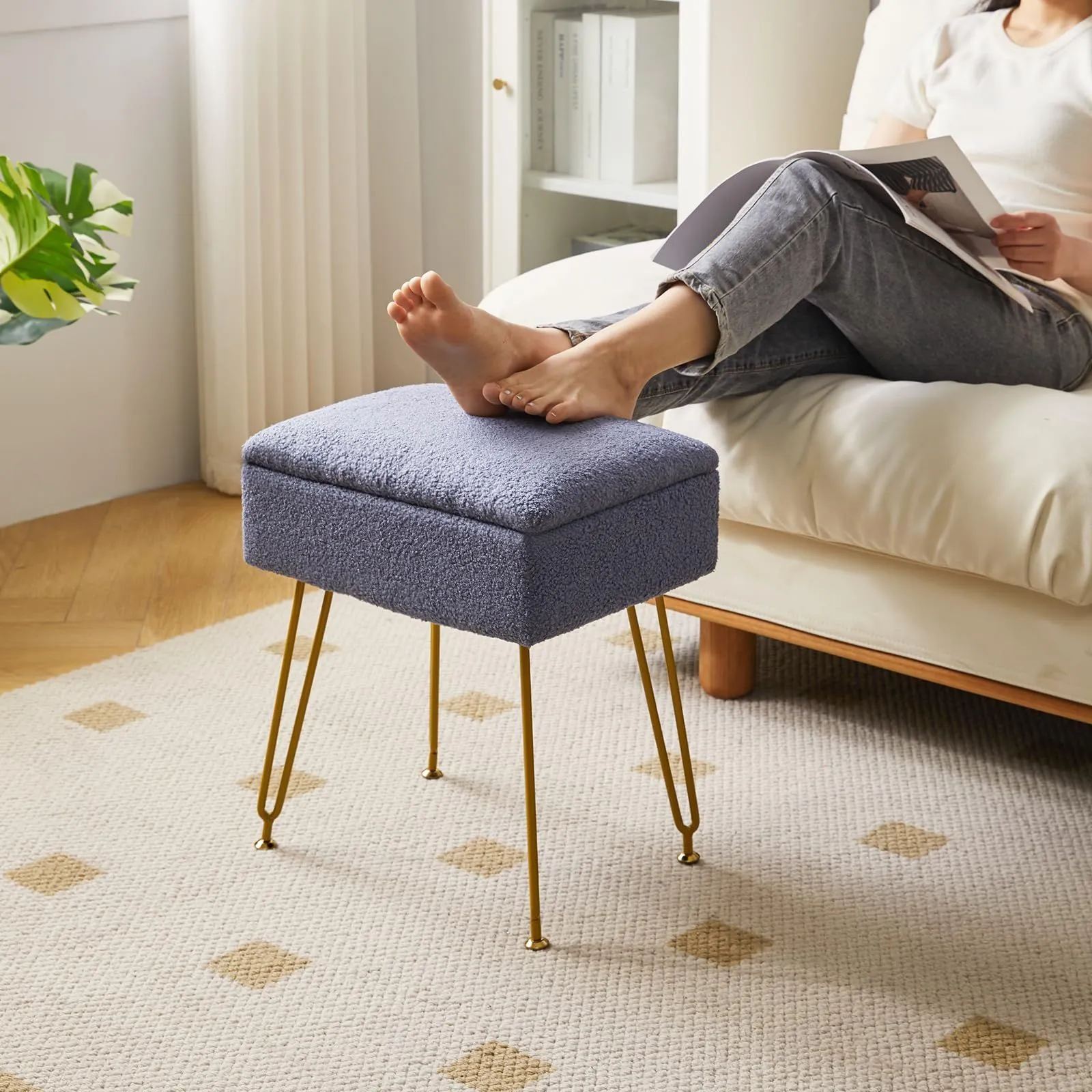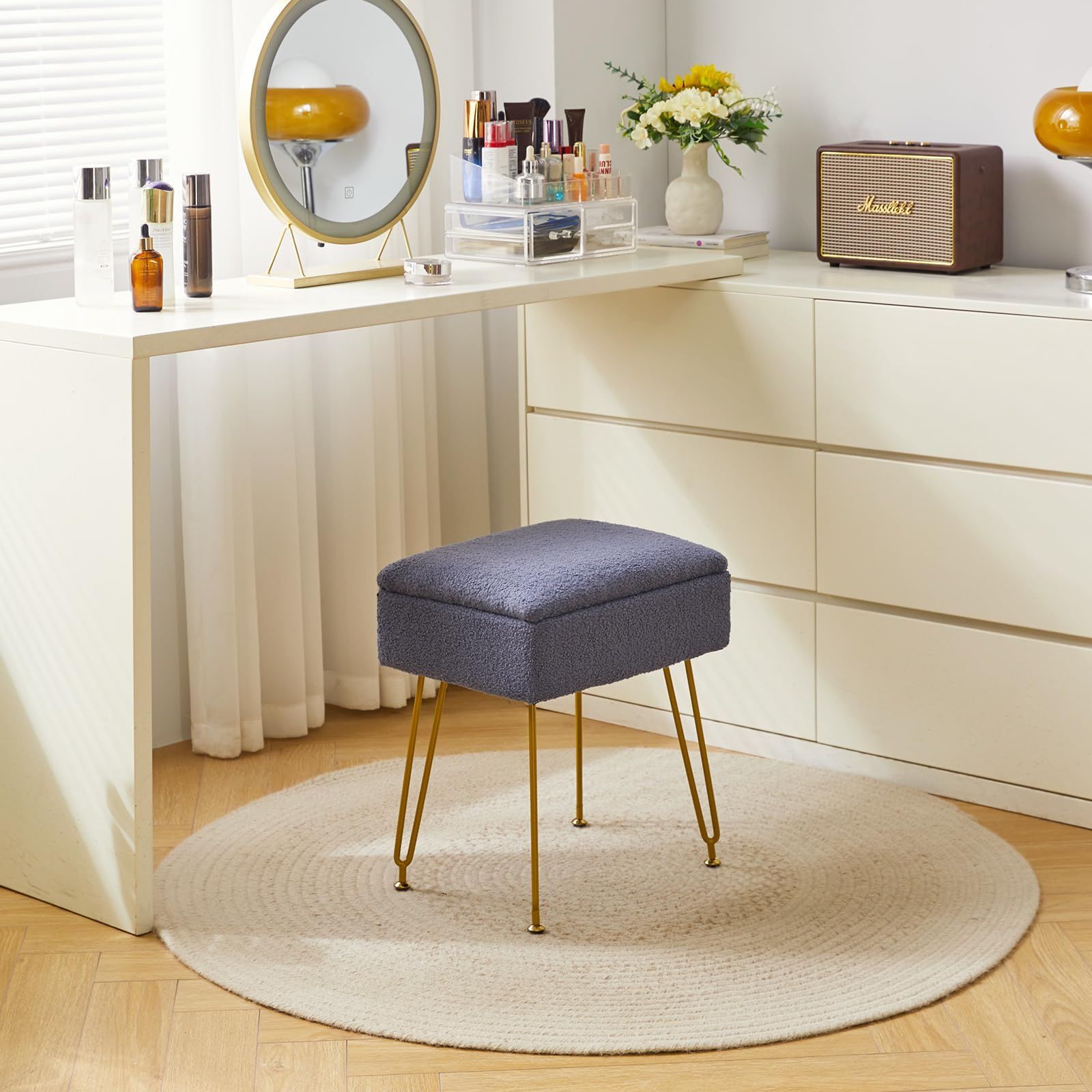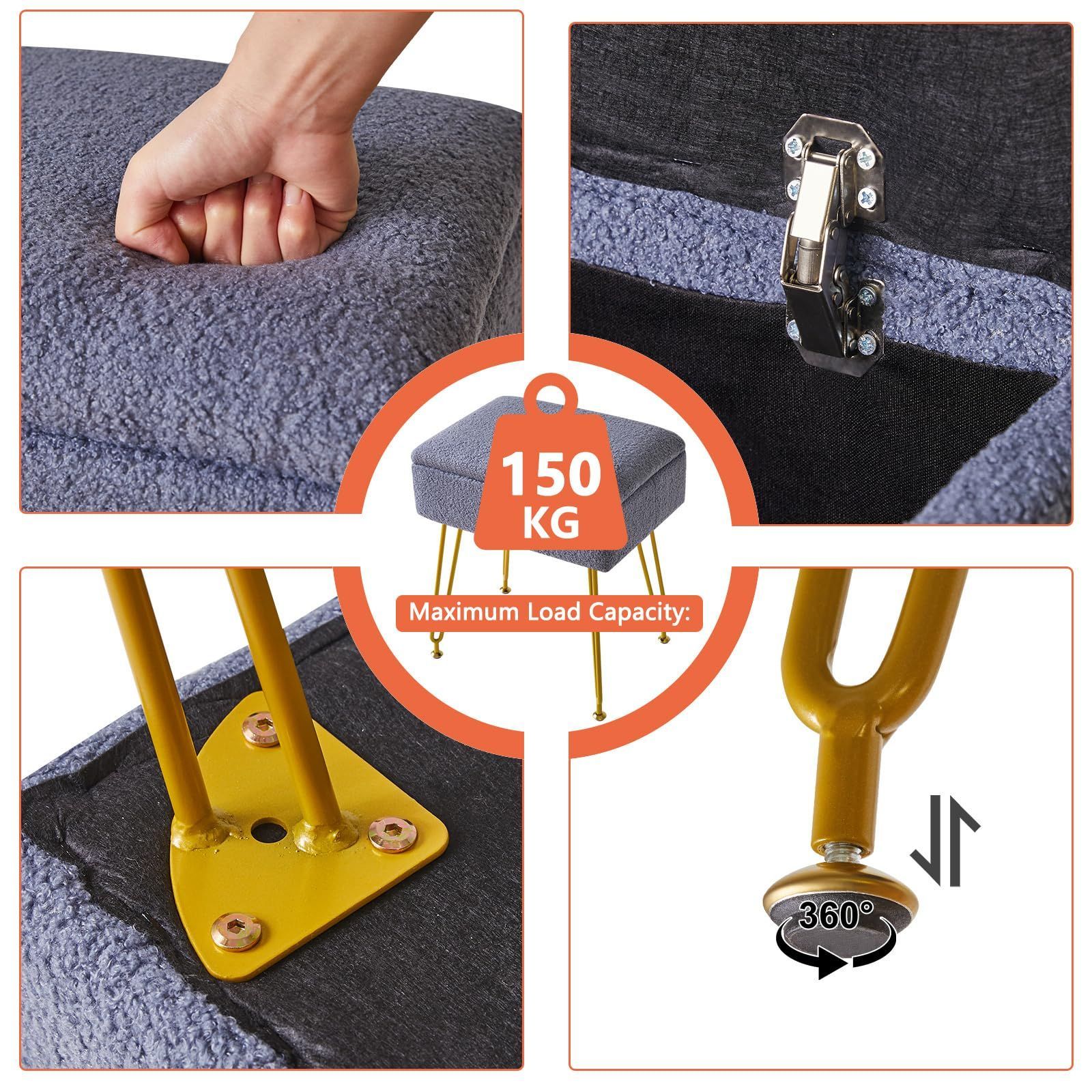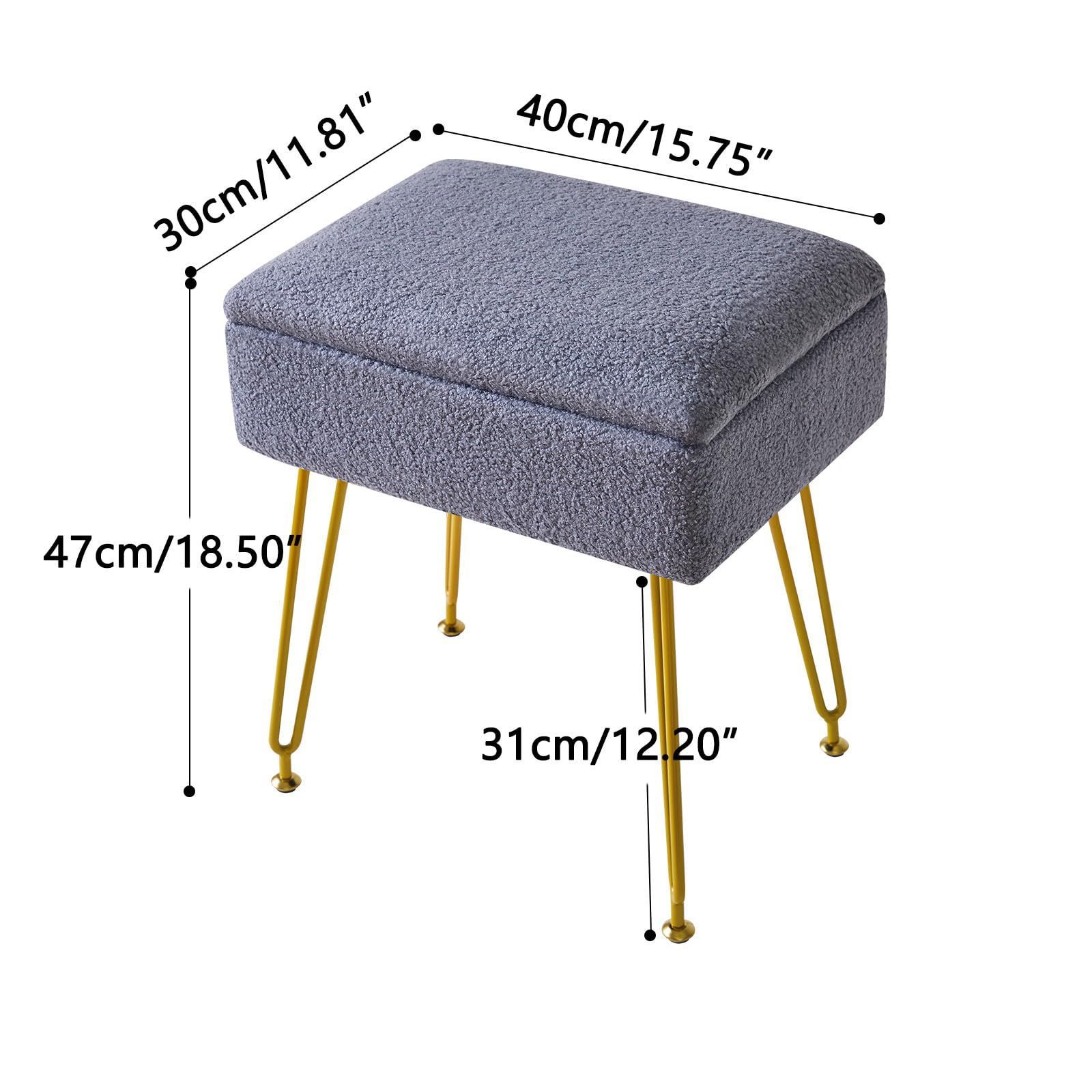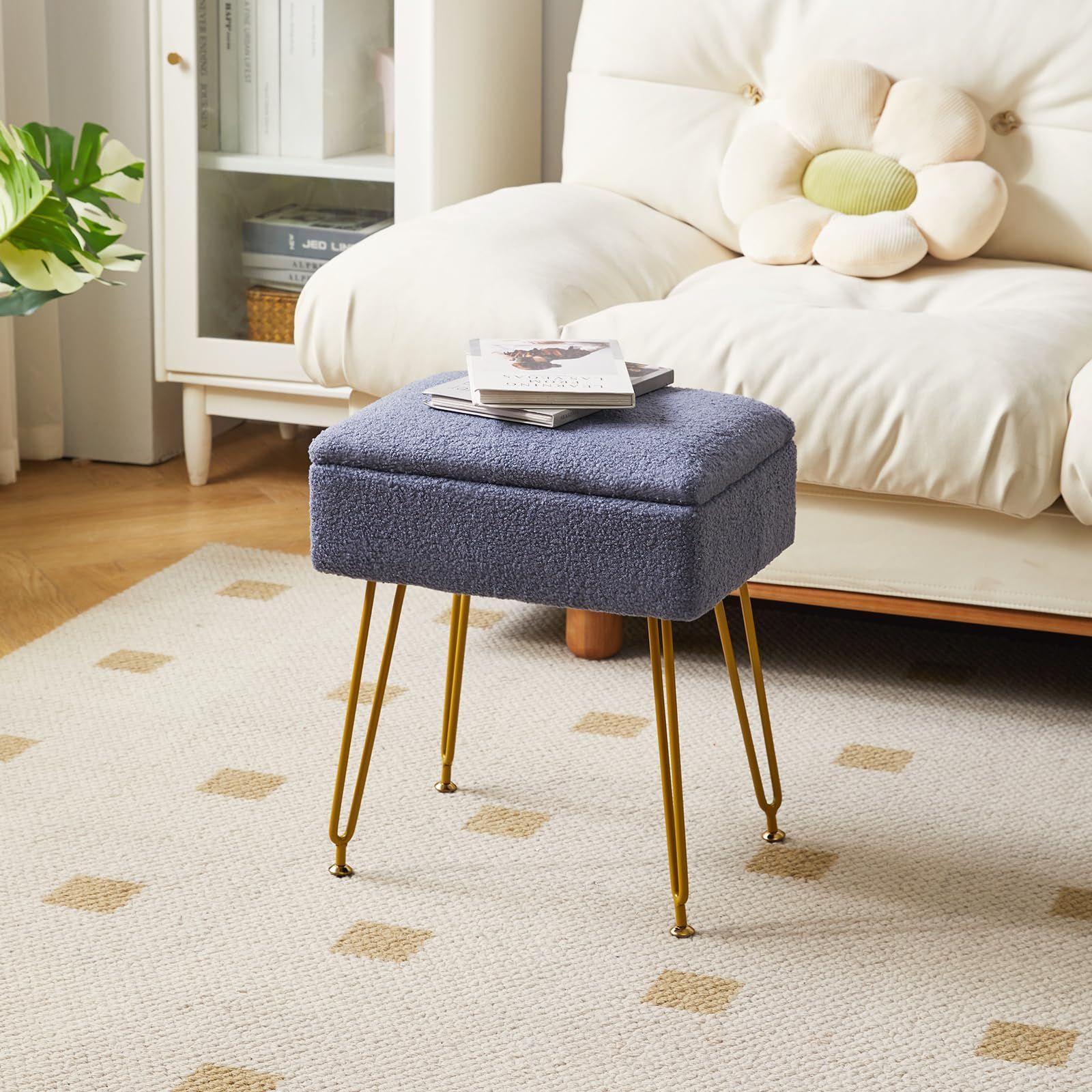 YMYNY オットマン, 収納オットマン、椅子スツール布張り、ポリエステル、ドレッシングテーブルスツール、プーフカウチスツール、金属脚、取り外し可能なカバー、リビングルーム、ベッドルーム用、40×30×47CM 青 JPHBD031BU
