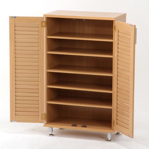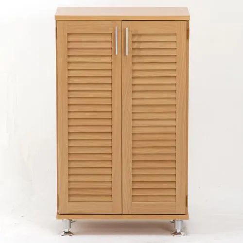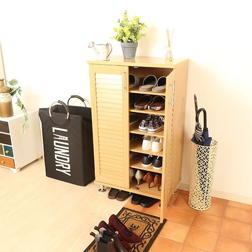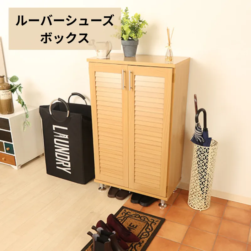ナチュラルで明るい木目調デザインが魅力の、ルーバーシューズラック。