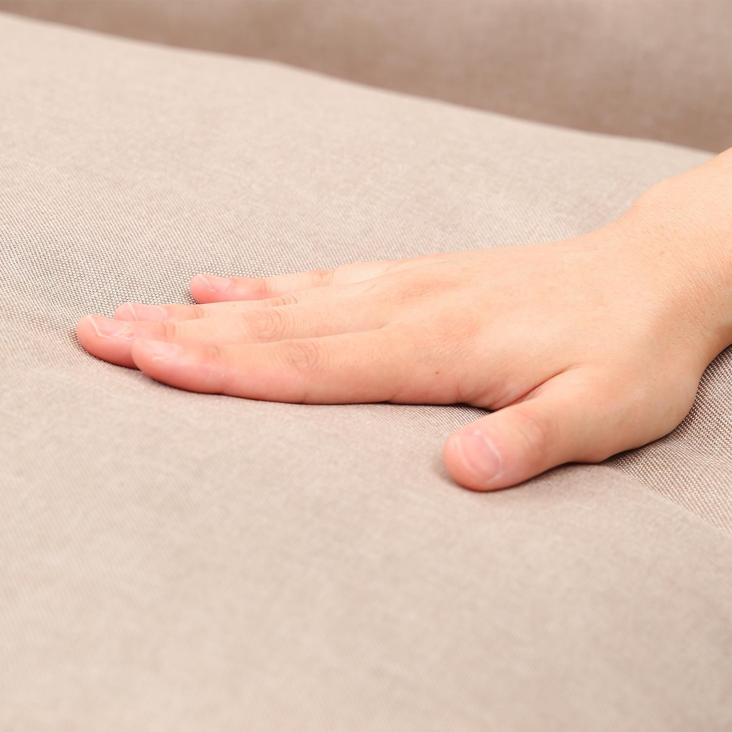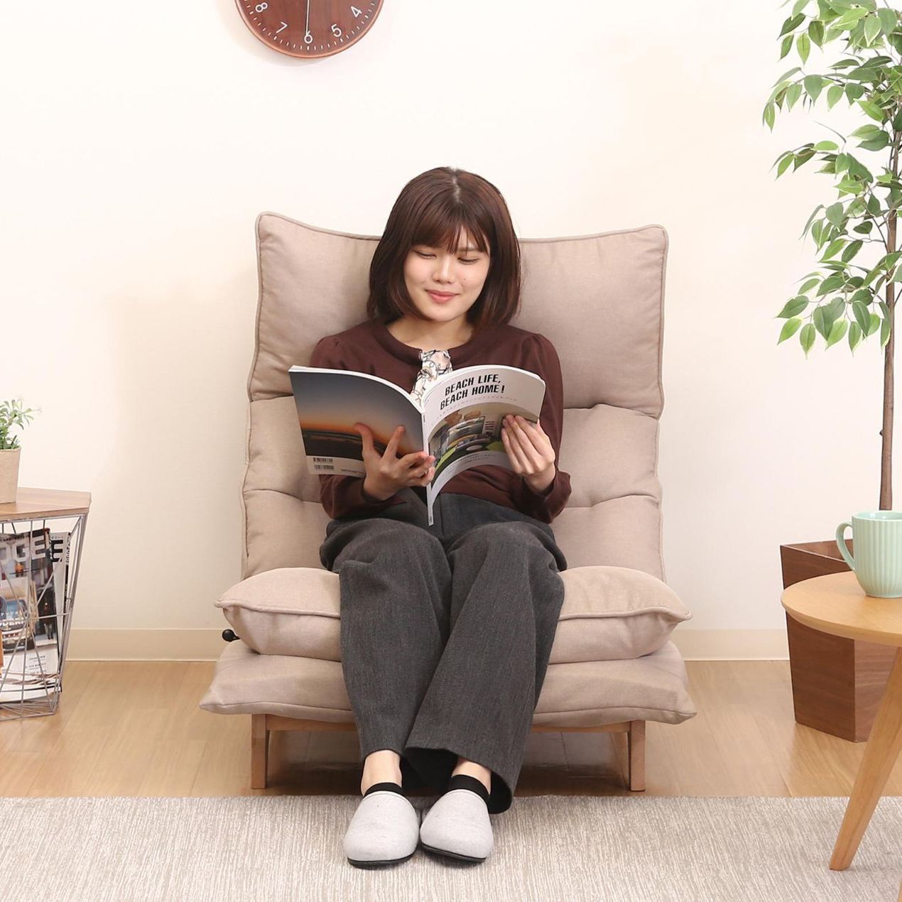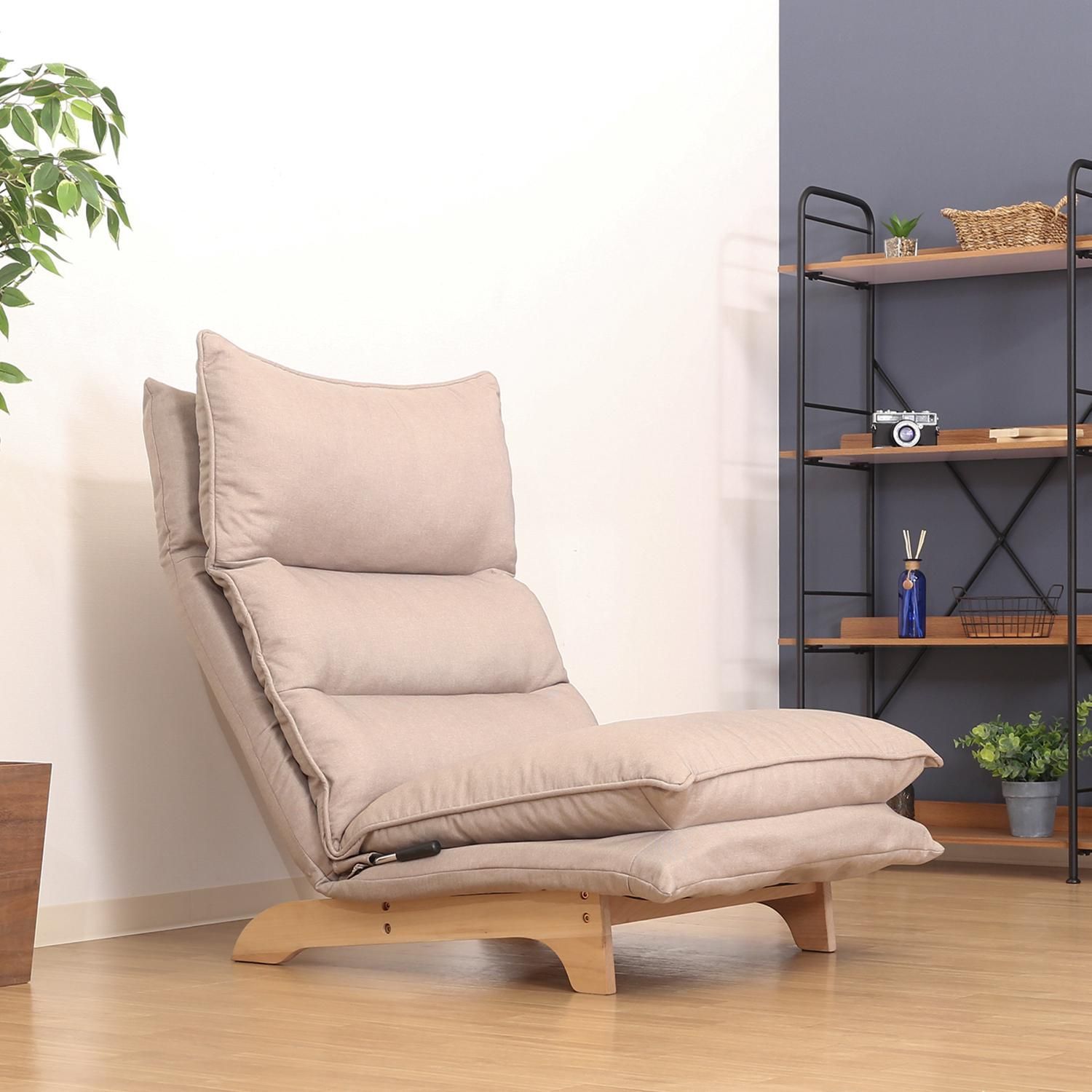 夏はべたつかず、冬はひんやりとしない、ファブリック素材を使用しています。シート高さ290mm/構造部材:金属(鋼)/張り材:ポリエステル/クッション材:ウレタンフォーム/構造部材(フレーム):天然木/スチールパイプ/腰部レバー式6段階ギア+ヘッド部5段階ギア(KOYO)