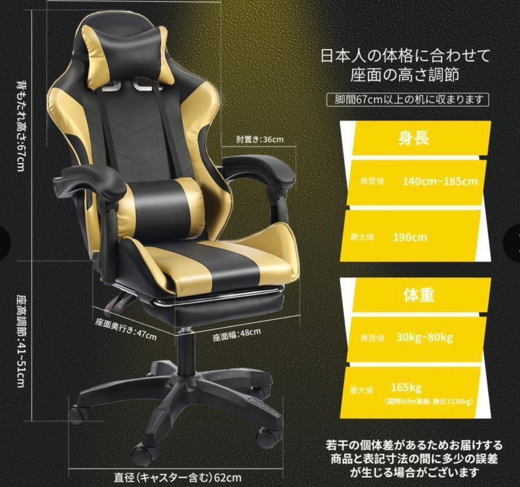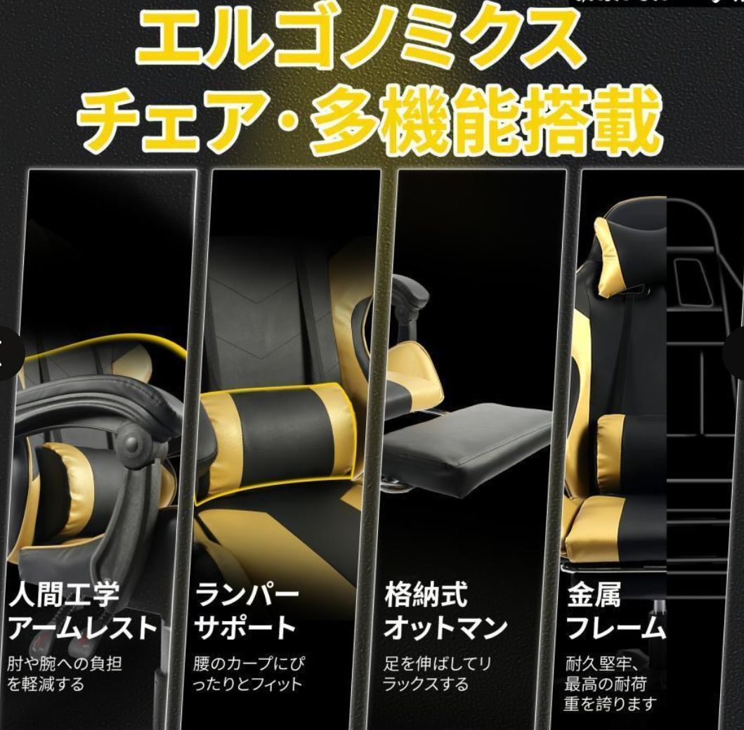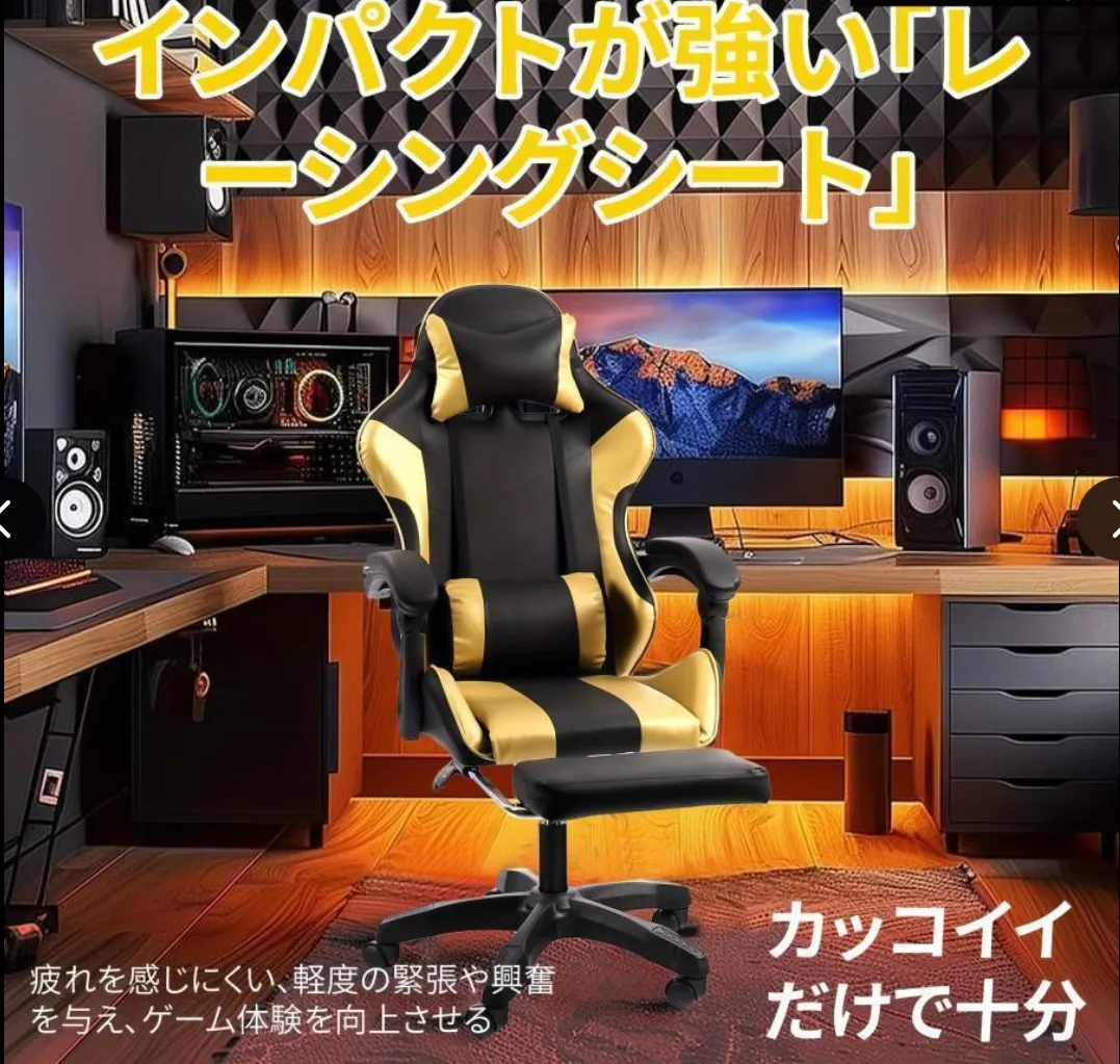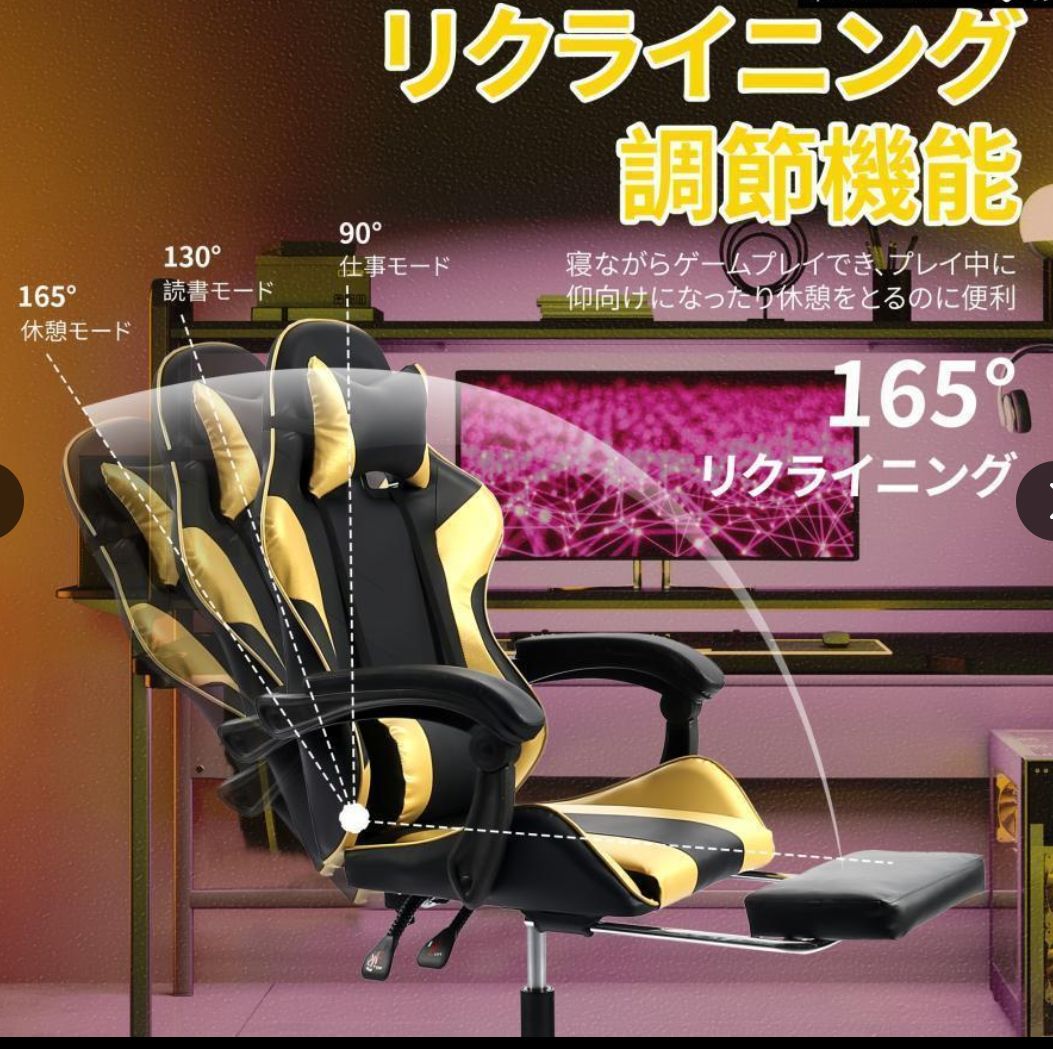 大好評☆ゲーミングチェア ゲーム用チェア PCチェア オフィスチェア デスクチェア パソコンチェア オットマン付き 人間工学 165度リクライニング ハイバック 椅子