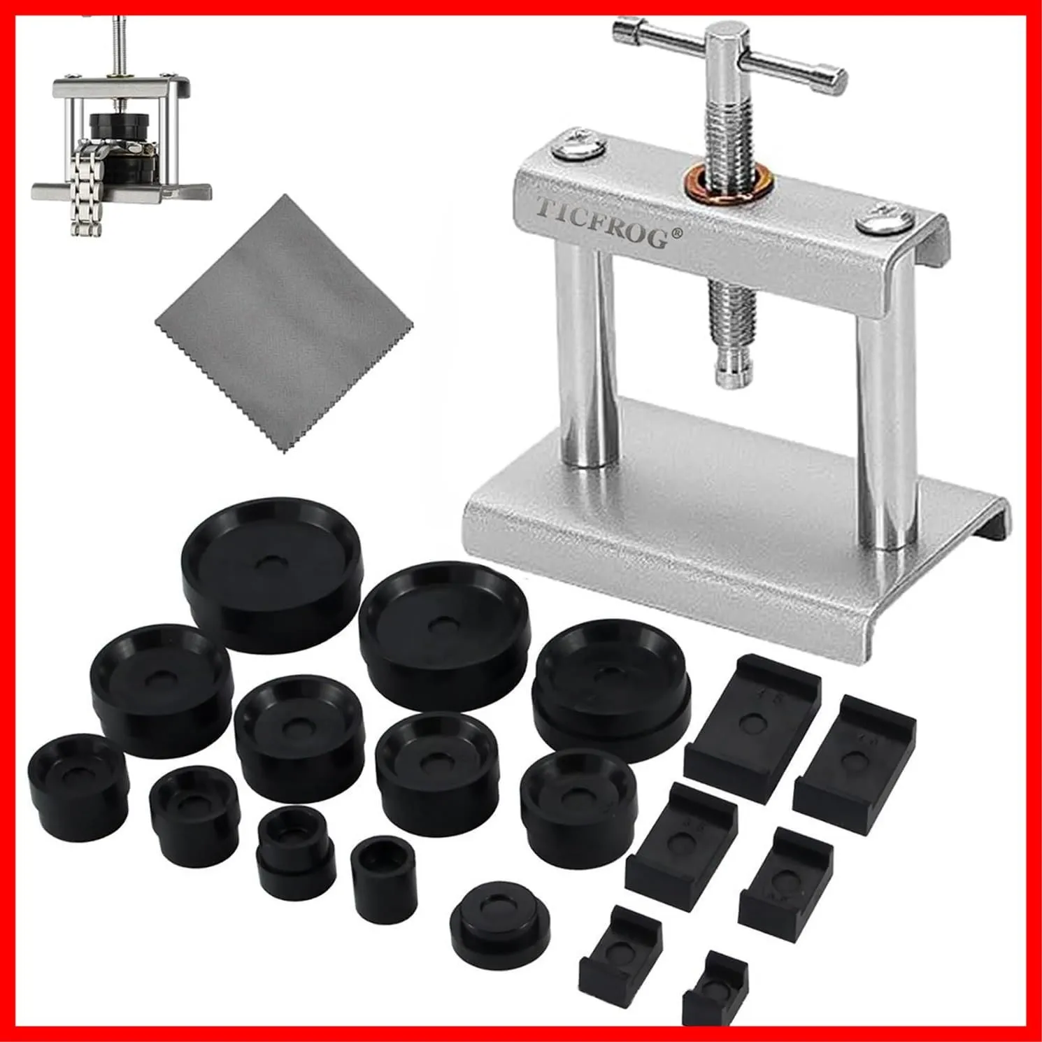 腕時計工具 時計閉め器 時計裏蓋閉め器 裏蓋 ガラス 閉め 電池交換 時計の修理 裏蓋外し コマセット メンテナンス 腕時計用工具 ステンレス素材、強い耐久性 18種類のサイズのアダプター