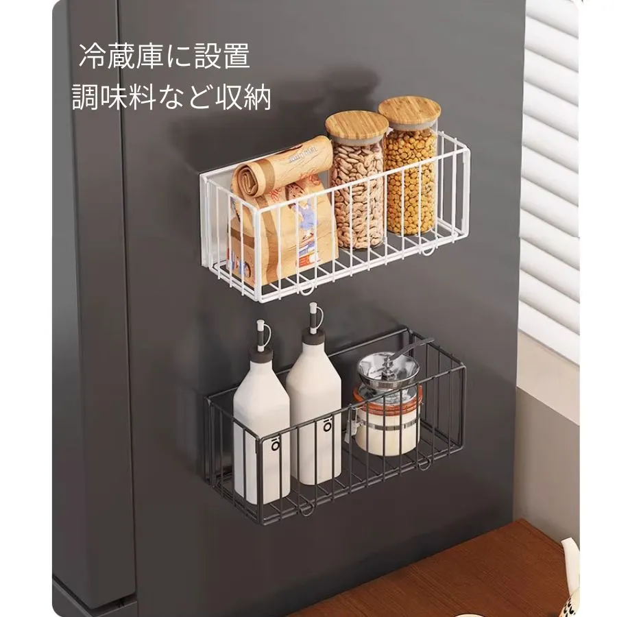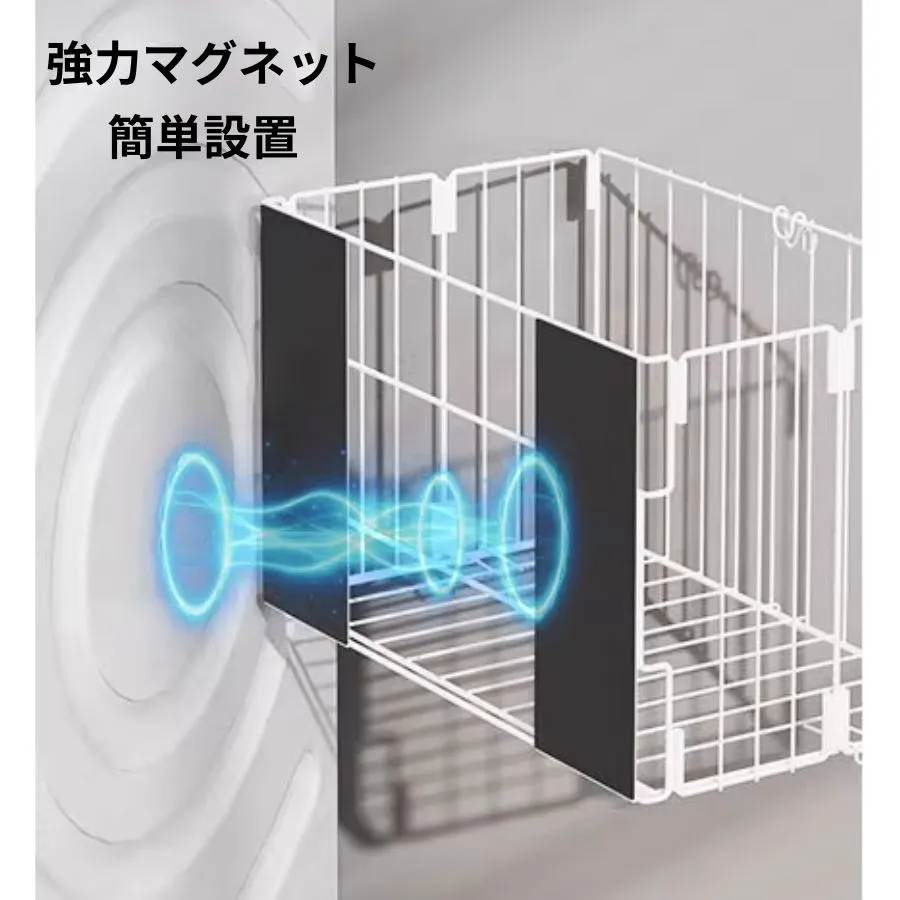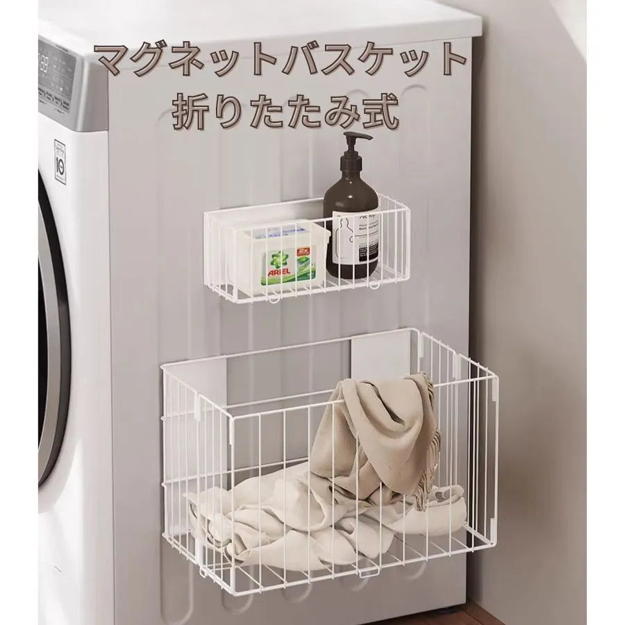 マグネットバスケット 折りたたみ式壁掛け お風呂収納ラック 水切り フック付き 穴あけ不要 洗濯機横 シャワーラック