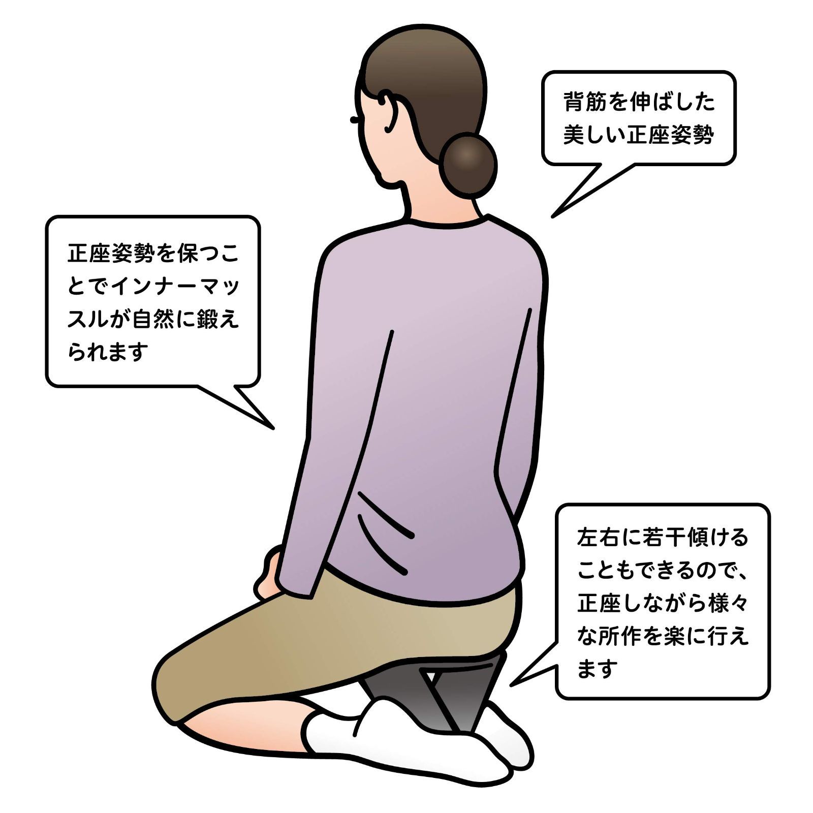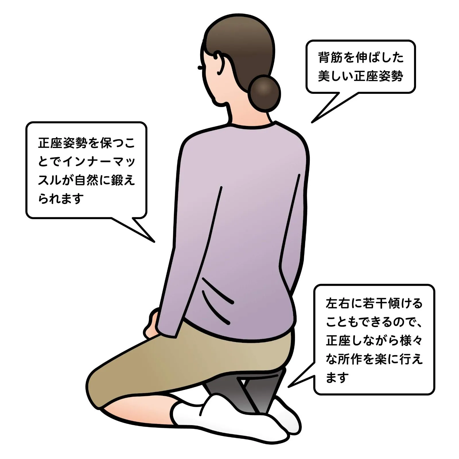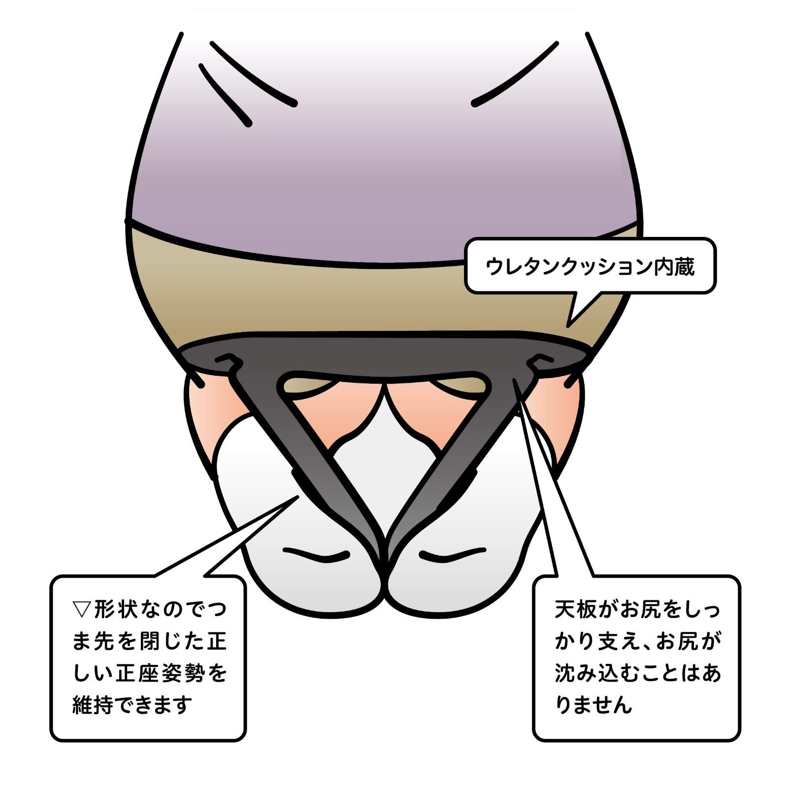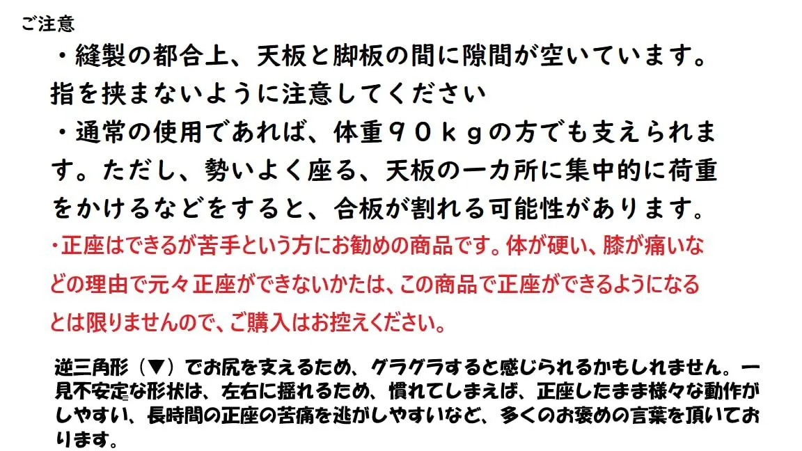 注意: 正座革命ネオ16は逆三角形でお尻を支えるため、グラグラすると感じられるかもしれません。慣れるまでは注意して使用してください。