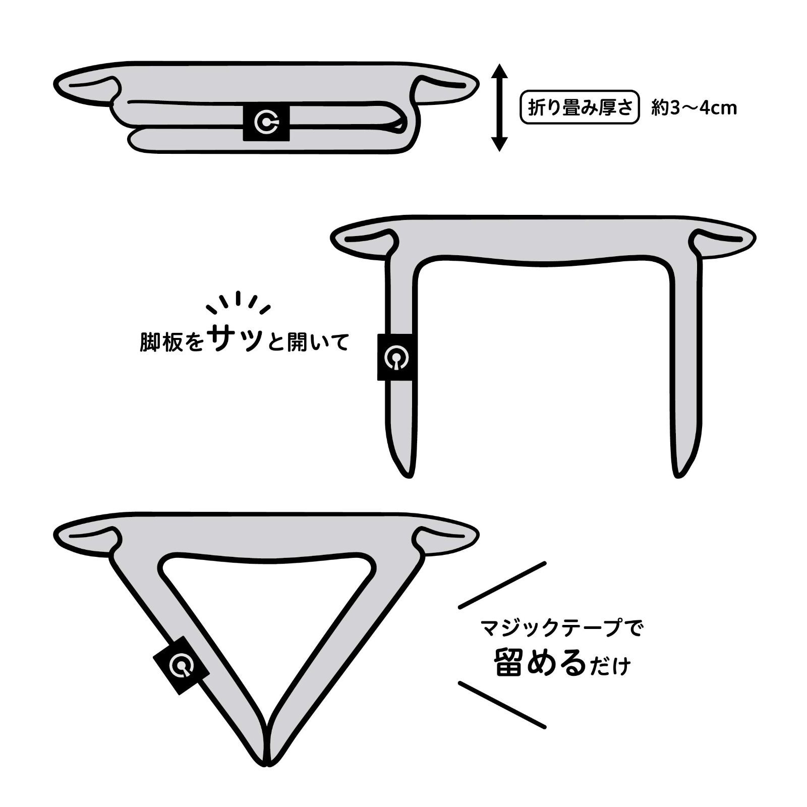 正座革命ネオのラージバージョンです。 ・サイズ:約 17 cm(奥行)×約 22 cm(幅)×約 16 cm(使用時高さ) ・折り畳み時:約 17 cm(奥行)×約 22 cm(幅)× 2.5 cm(厚さ) ・重量:約 300 g 「正座革命ネオ 16 cm」は、足の厚みのために座高が高い(床面から座骨までの距離が長い)ユーザー様向けの商品です。 平均体型の方が「正座革命ネオ 16 cm」を使用すると、正座は楽になりますが、座高が高くなりすぎて違和感が生じることがあります。 洋服のサイズの M サイズや L サイズといった選び方ではなく、正座したときの床面からお尻までの高さを目安にサイズをお選び下さい。 2012年の発売以来ご好評をいただいている、日本製携帯用折りたたみ正座椅子「正座革命シリーズ」の最新バージョンです。長時間の正座がつらい方におすすめします。独自の逆三角形の形状と安定感を高める天板(意匠登録済)が特長です。天板のない類似品に違和感があった方にも、お尻を面で支える本品の快適さをお試しいただければ幸いです。 ご購入前の確認事項 1. 安定性と使用感について 本品は逆三角形の構造上、意図的に左右のあそびや傾きが生じます。これはふくらはぎで挟むための仕様です。安定させるためには背筋を伸ばし、重心を中央に保つ意識が必要です。 重要:一般的なバランス感覚があれば問題ありませんが、体の歪みが大きい方や、背筋を伸ばす姿勢の維持が困難な方は、本品が安定せずグラグラすると感じられる可能性があります。あらかじめ特性をご理解の上ご検討ください。 2. サイズの選び方について 適正サイズは、身長や体重だけでなく、体の柔軟性や正座時のお尻の高さ、足の厚みによって決まります。「標準 12 cm」と「ラージ 16 cm」の2種類をご用意しています。サイズイメージの相違を防ぐため、必ず商品画像のサイズガイドと商品説明の実寸法をご確認の上、お選びください。 3. 商品の目的と限界について 本品は、正座の苦痛を緩和することを目的とした補助椅子です。天板がお尻を支え、脚への体重負担を軽減します。 重要:体が硬すぎる場合や、膝や腰のトラブル等でそもそも正座の形に足を折りたためない場合は、本品を使用しても正座の姿勢をとることができません。目安として、自力で数分間は正座ができることをご確認の上、ご使用ください。 安全上のご注意 この椅子は体重 90 kg 以下の方向けです。勢いよく座ったり、製品の一箇所に負荷を集中させたりすると合板が破損する恐れがありますので、過度な負荷をかけないようご注意ください。また、左右に揺れる構造のため、慣れるまでは不安定に感じる場合があります。