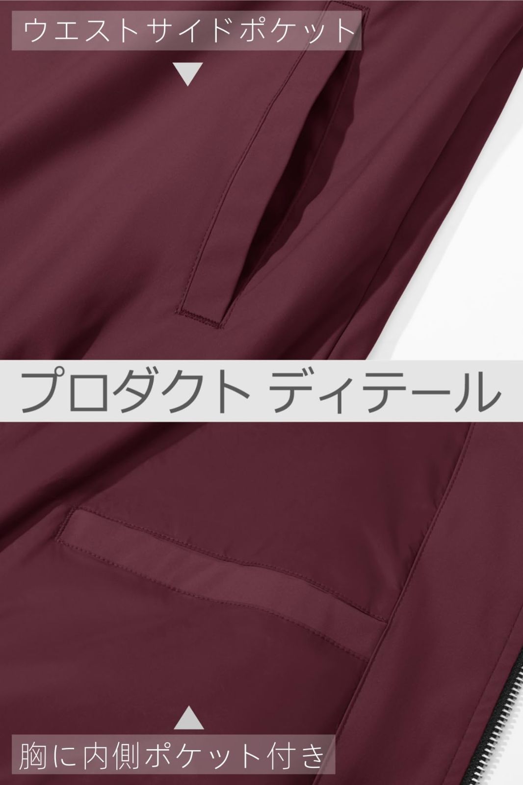 【デザイン】サイド×2、インナー×1、日常の収納ポケットがあり、便利な収納スペースを備え、必要なアイテムをスマートに持ち運べます。裾・袖口・襟に伸縮性があり、動きやすく快適な着き心地です。