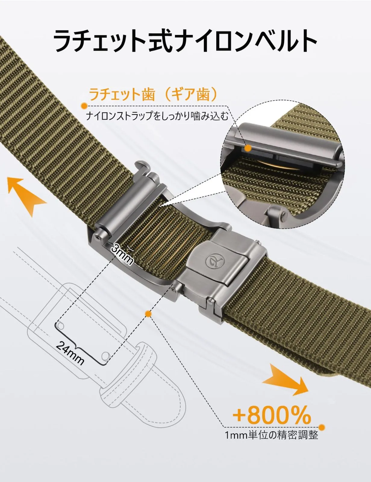 [JUKMO] ゴルフ ベルト メンズ カジュアル ラチェット式ベルト ナイロンベルト 作業用ベルト