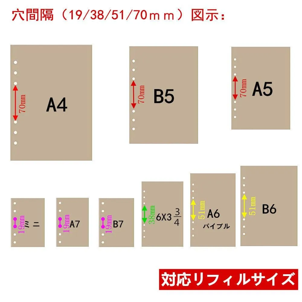 【6穴開けパンチ】A5/A6/A7/バイブル/ミニサイズ適用しています。システム手帳 、バインダーノート、あな吉手帳、伝票/書類の 整理が楽々です。横ゲージの目盛りに応じて、A3/A4/A5/B3/B4/B5の縦側/横側のどちらでもご利用いただけます