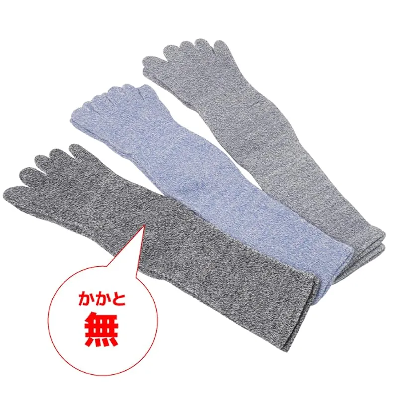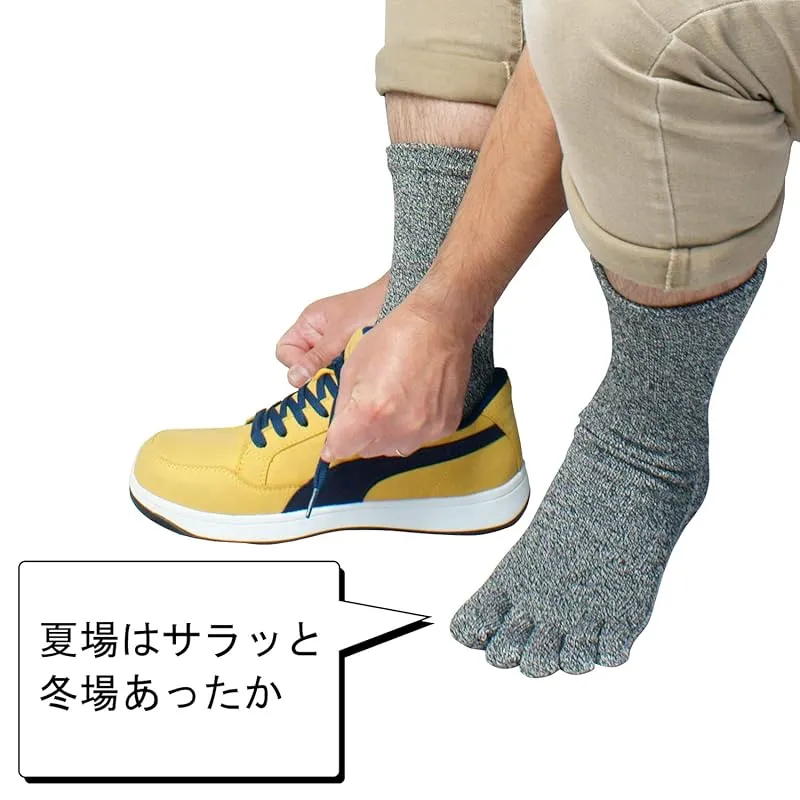 【絹×綿のハイブリッド構造】 肌に触れる内側は絹、外側は綿の二重編み構造を採用。絹の持つ高い吸湿性・放湿性が汗やニオイを吸い上げ、綿がキャッチして放出するため、足元は常にサラサラで快適です。