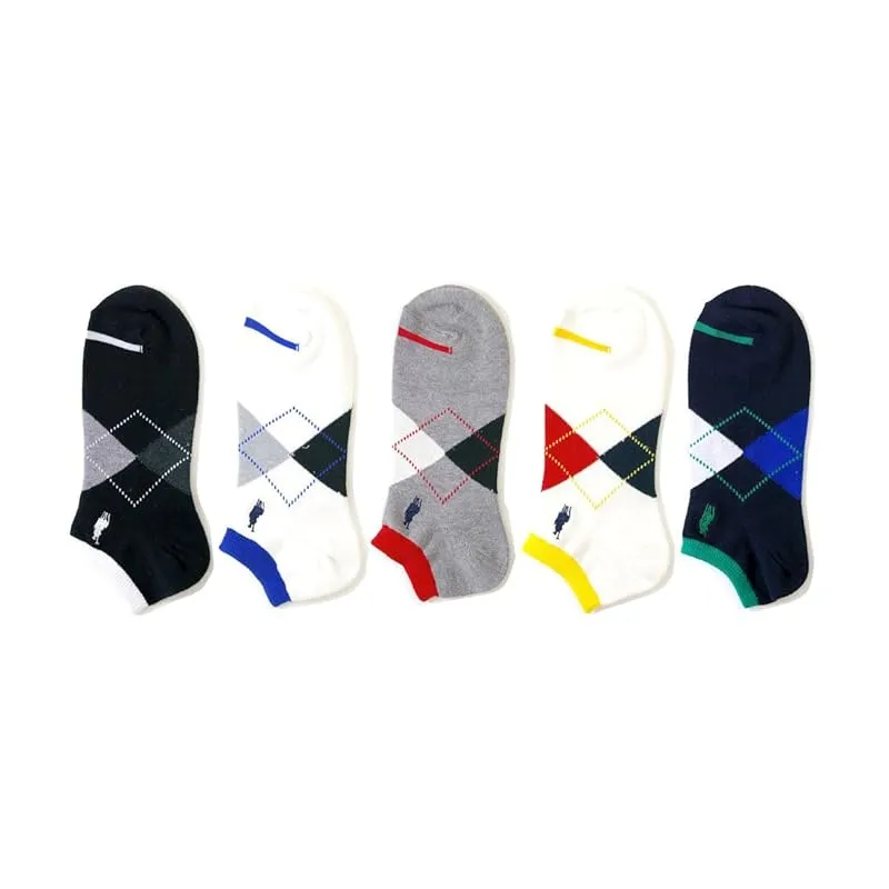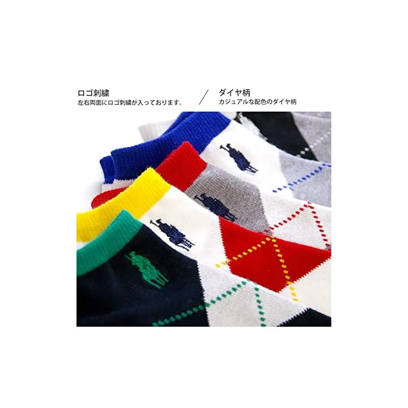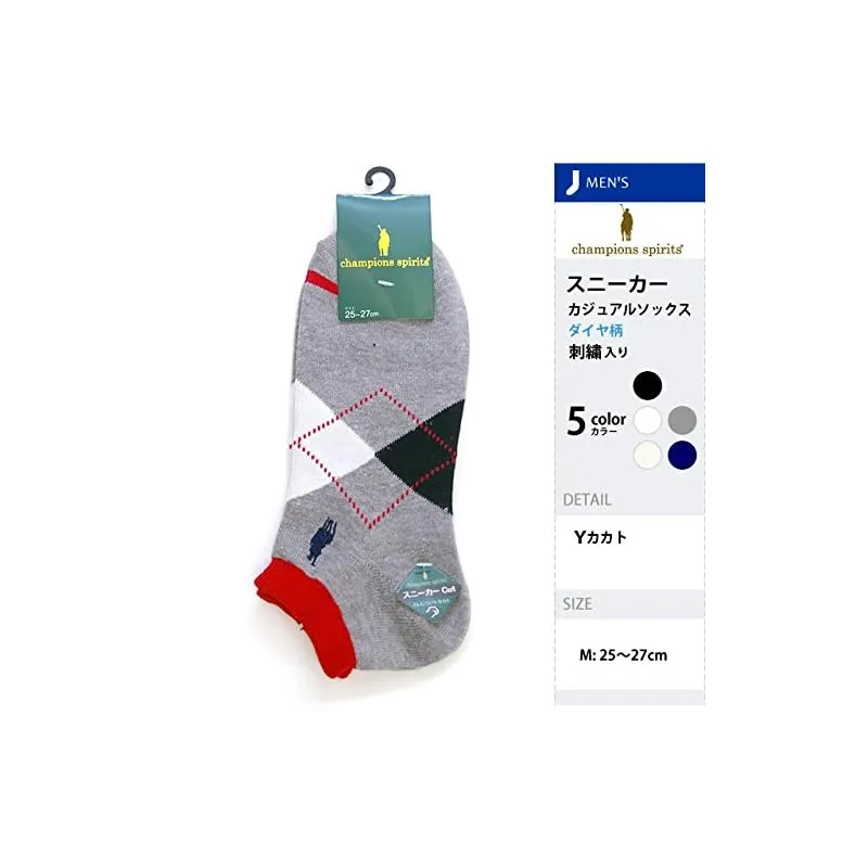 【新品】 [癒足] メンズ スニーカーソックス 5足セット ダイヤ柄champions spiritsR刺繍
