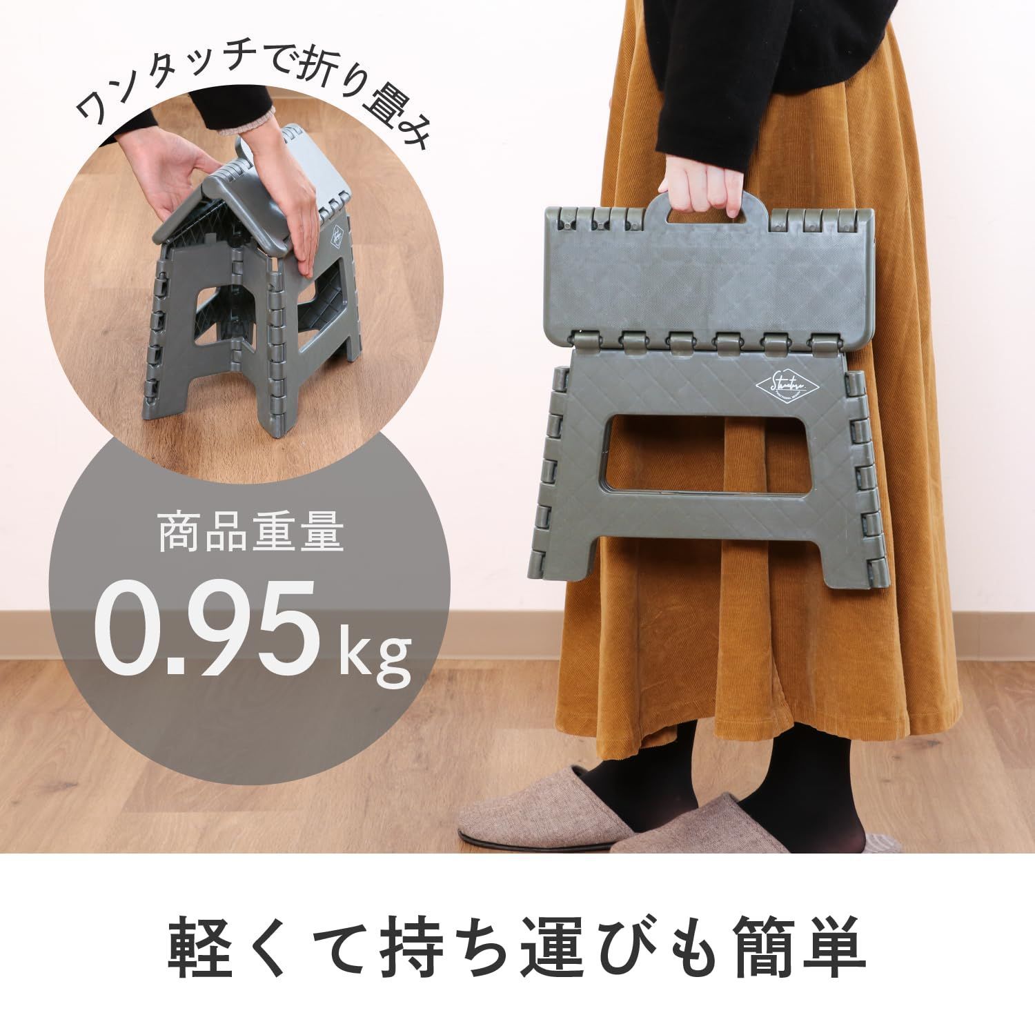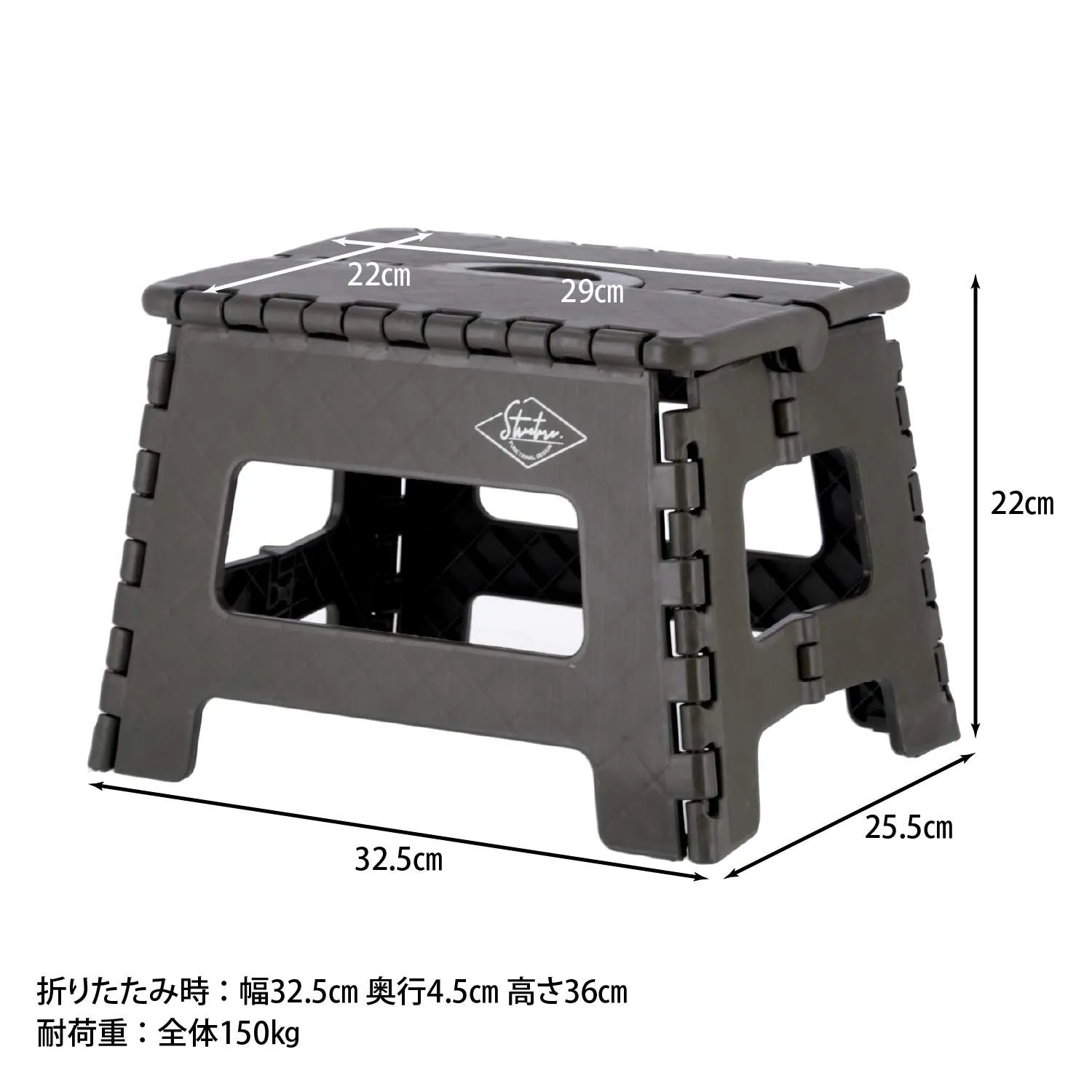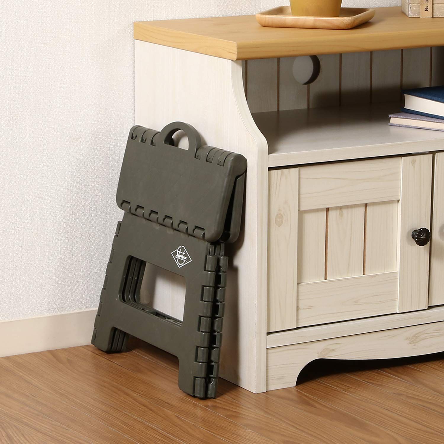 不二貿易(Fujiboeki) 折りたたみ椅子 踏み台 ステップ 幅32.5×奥行25.5×高さ22cm カーキ アウトドア コンパクト スツール 耐荷重150kg 86073