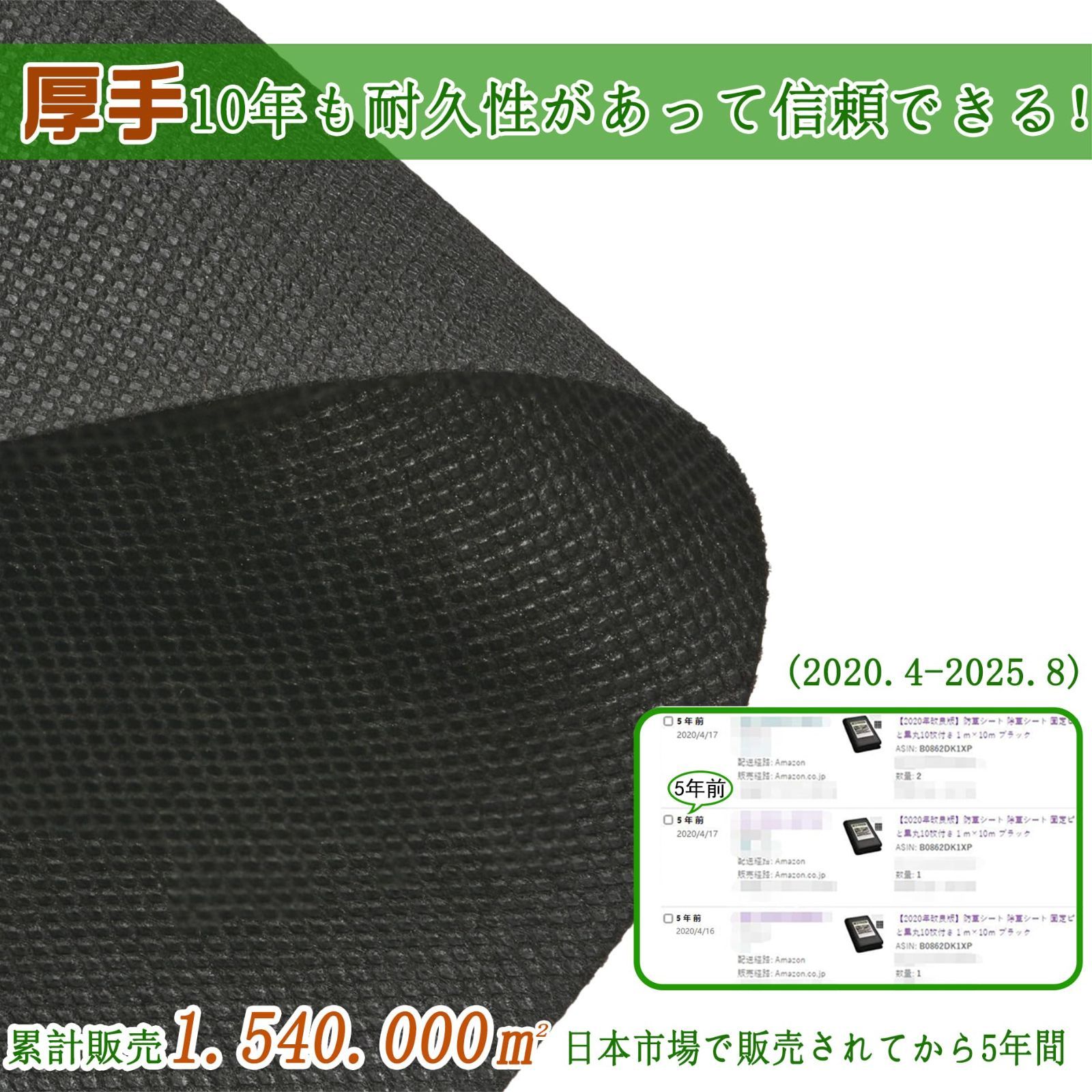 【耐久年数:5年】厚手なので破れにくく丈夫です。また、U V剤入りなので、紫外線による劣化を防止します。 製品の使用寿命をより向上させることができ、 耐用年数は5年で除草(雑草取り)作業の手間を省きます。 ※使用環境などによって差が出る場合があります。