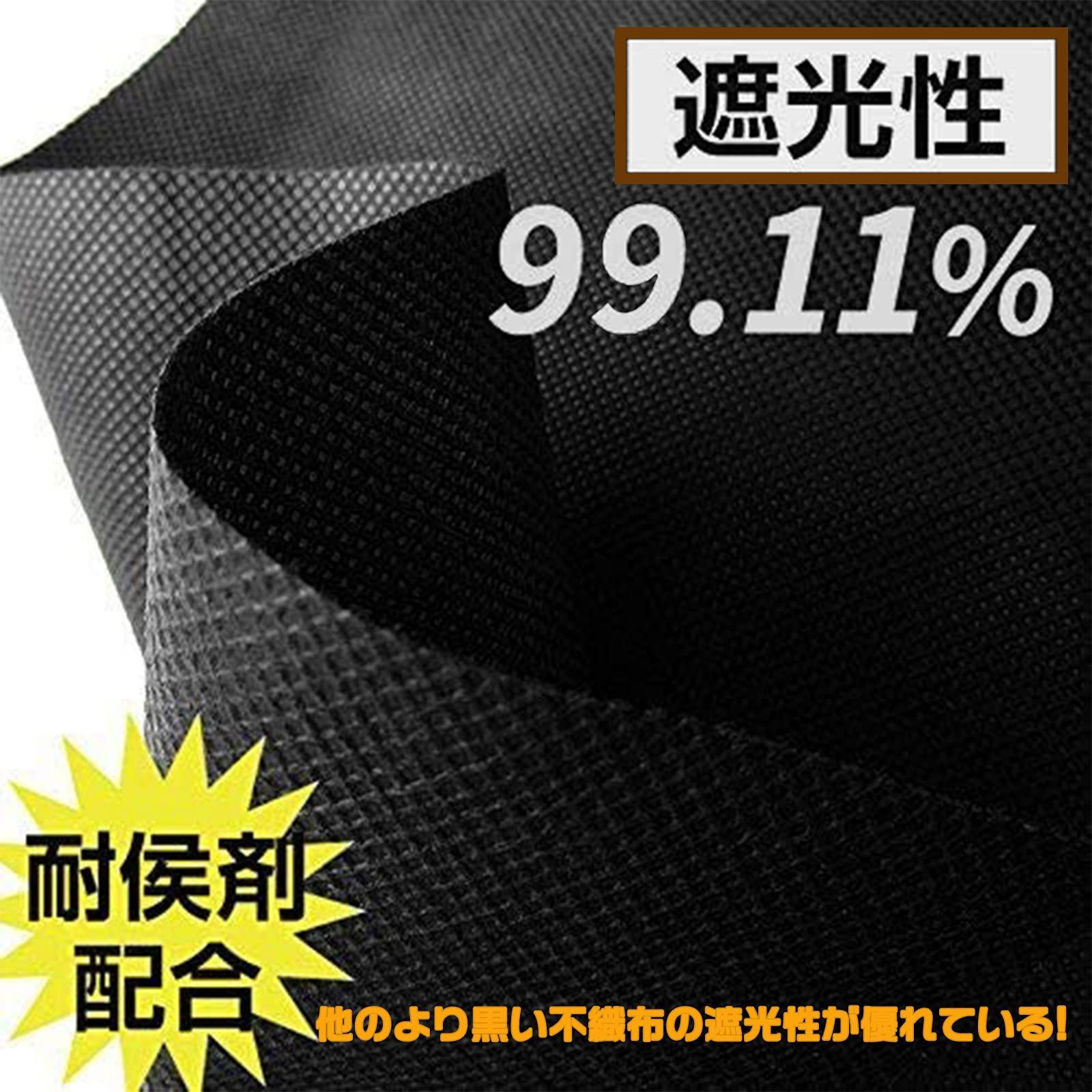 【抜群な遮光】高品質の耐候性不織布を採用して、99.11%日光を遮り、雑草を生きにくいです。光を遮ることで光合成を防ぎ、除草剤を使わずに雑草の繁殖を防止します。水や空気、液体肥料を通すので植栽もできる防草シート(雑草防止シート)です。 除草剤に頼らないため、大切な庭木や花壇などの枯らしたくない植物に影響しません。安全性の高い雑草対策です。