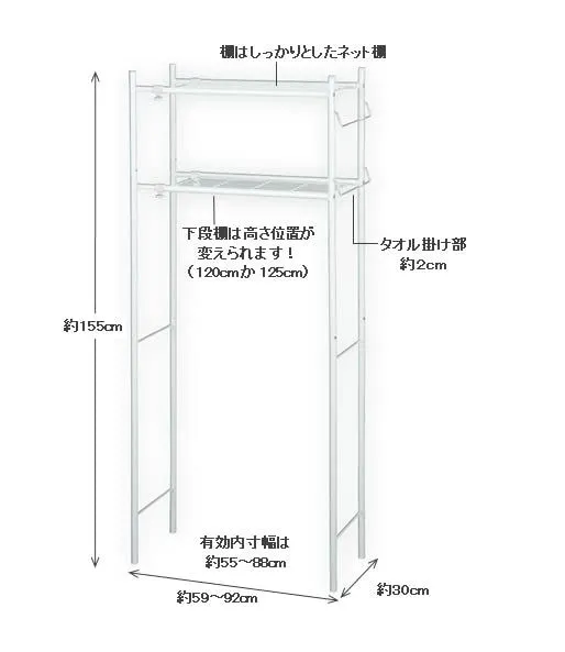 外寸幅:59~92cm / 有効内寸幅:55~88cm × 奥行30cm × 高さ155cm