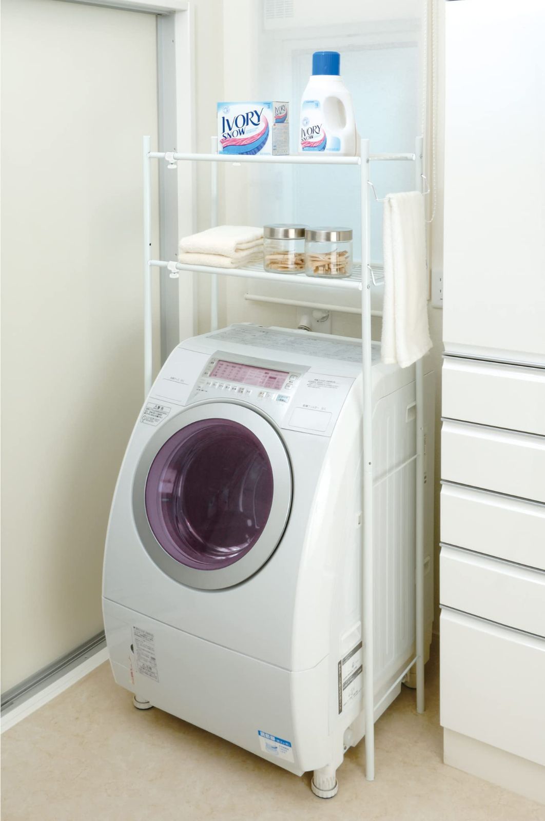 洗濯機ラック ランドリー MISM 伸縮式洗濯機棚 ホワイト CTN-102-W 高さ155cm