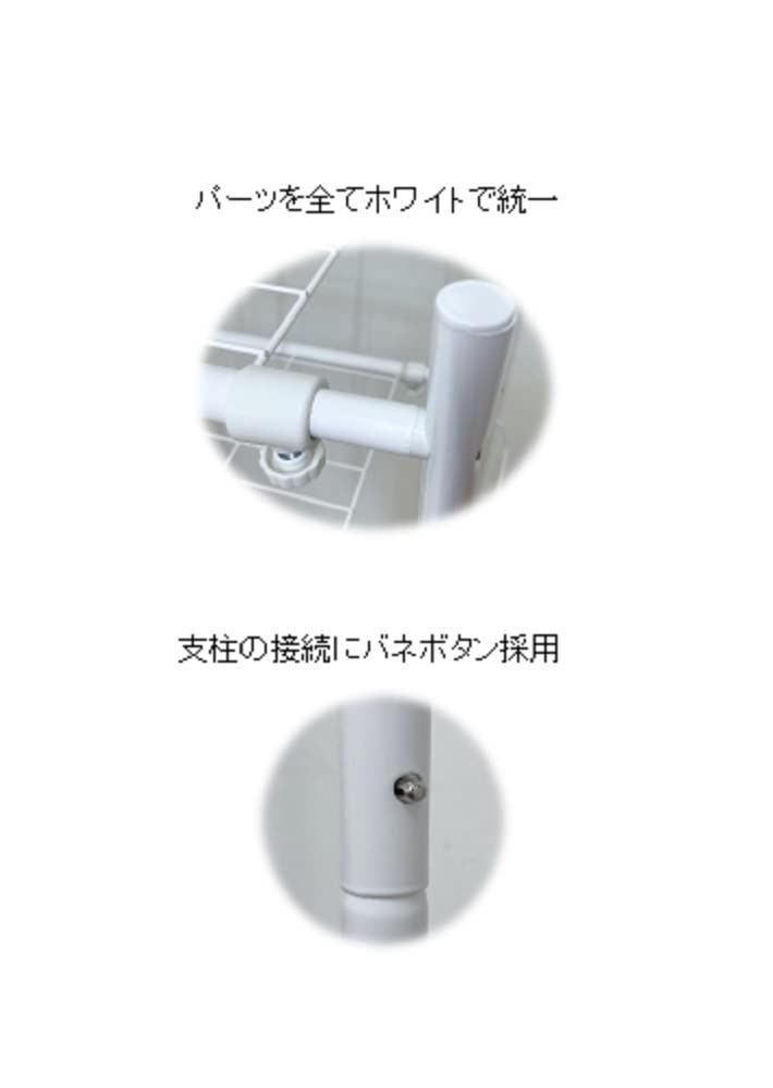 パイプ・棚・タオル掛け:スチール(エポキシ樹脂粉体塗装)キャップ:PE エンドリング・パイプホルダー:ABS樹脂 ねじ・バネボタン:スチール(メッキ加工)