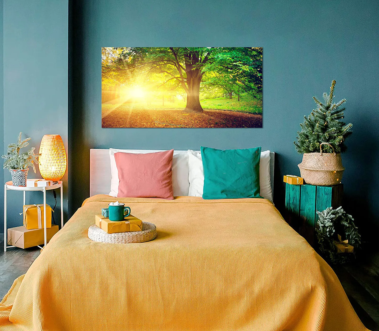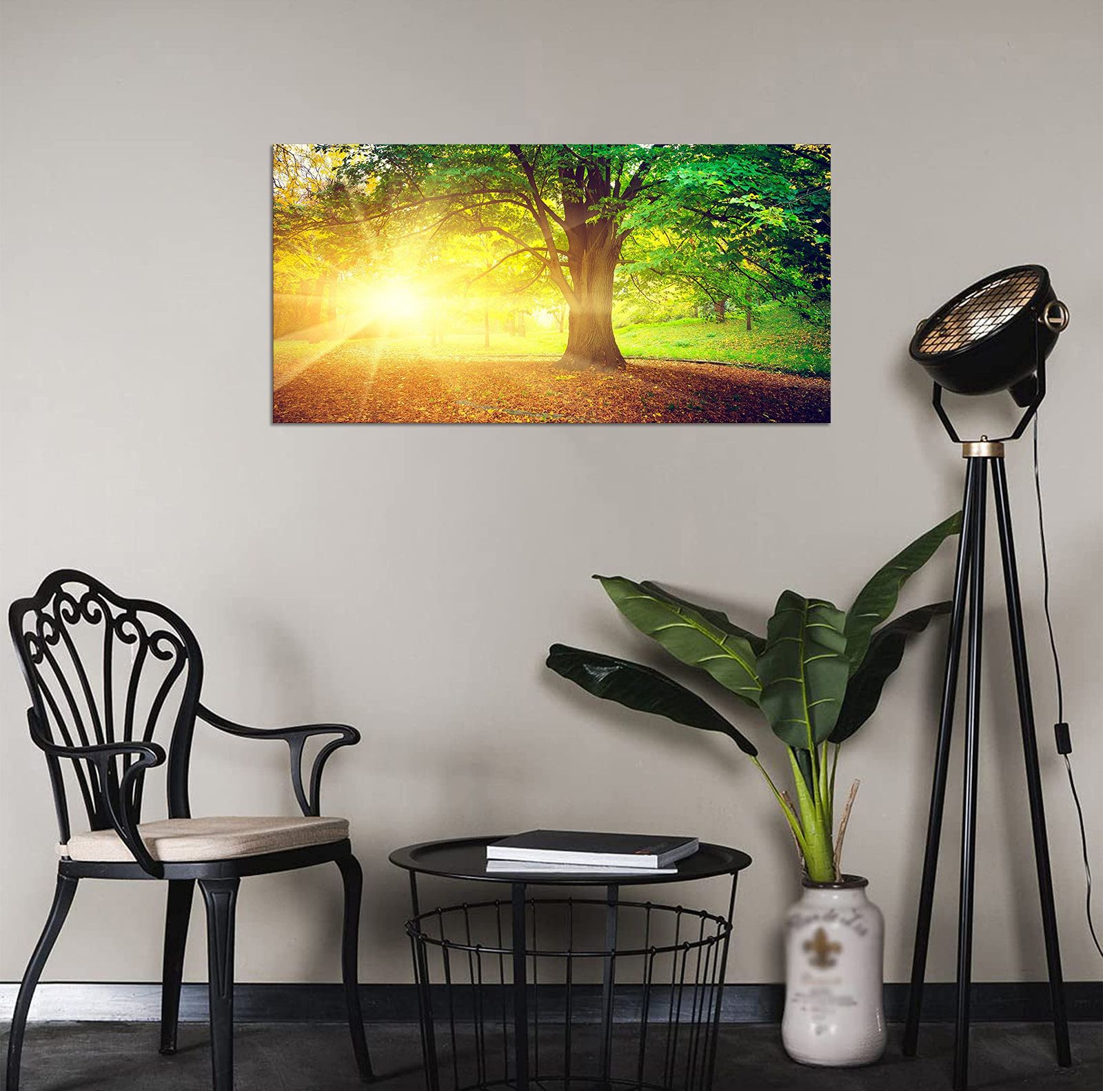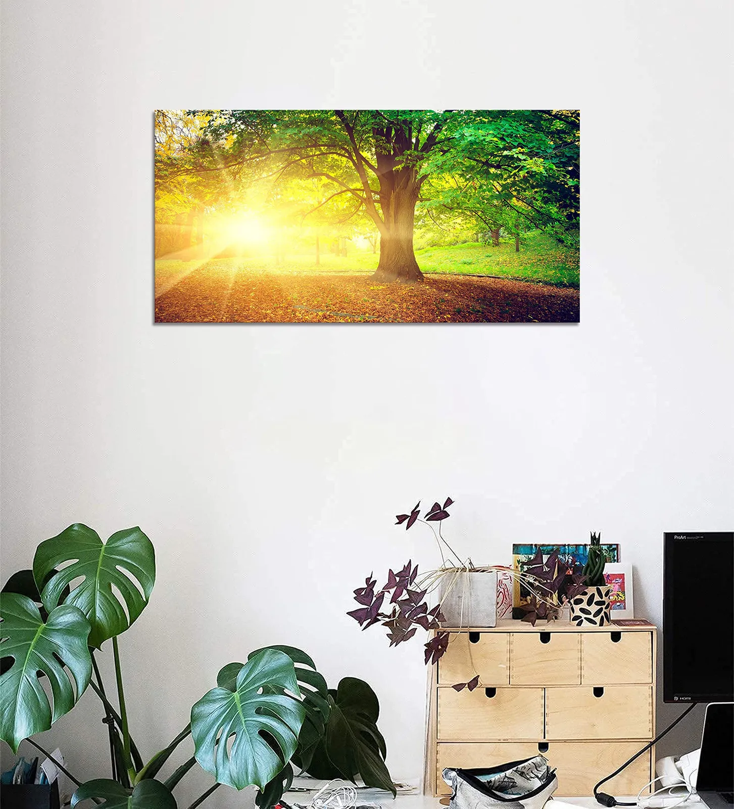 森 アートパネル 木 風景画 太陽の光 絵 風景画 壁掛け 壁掛け 風景 部屋飾り 壁絵 木枠付きの完成品 (30x60cm)