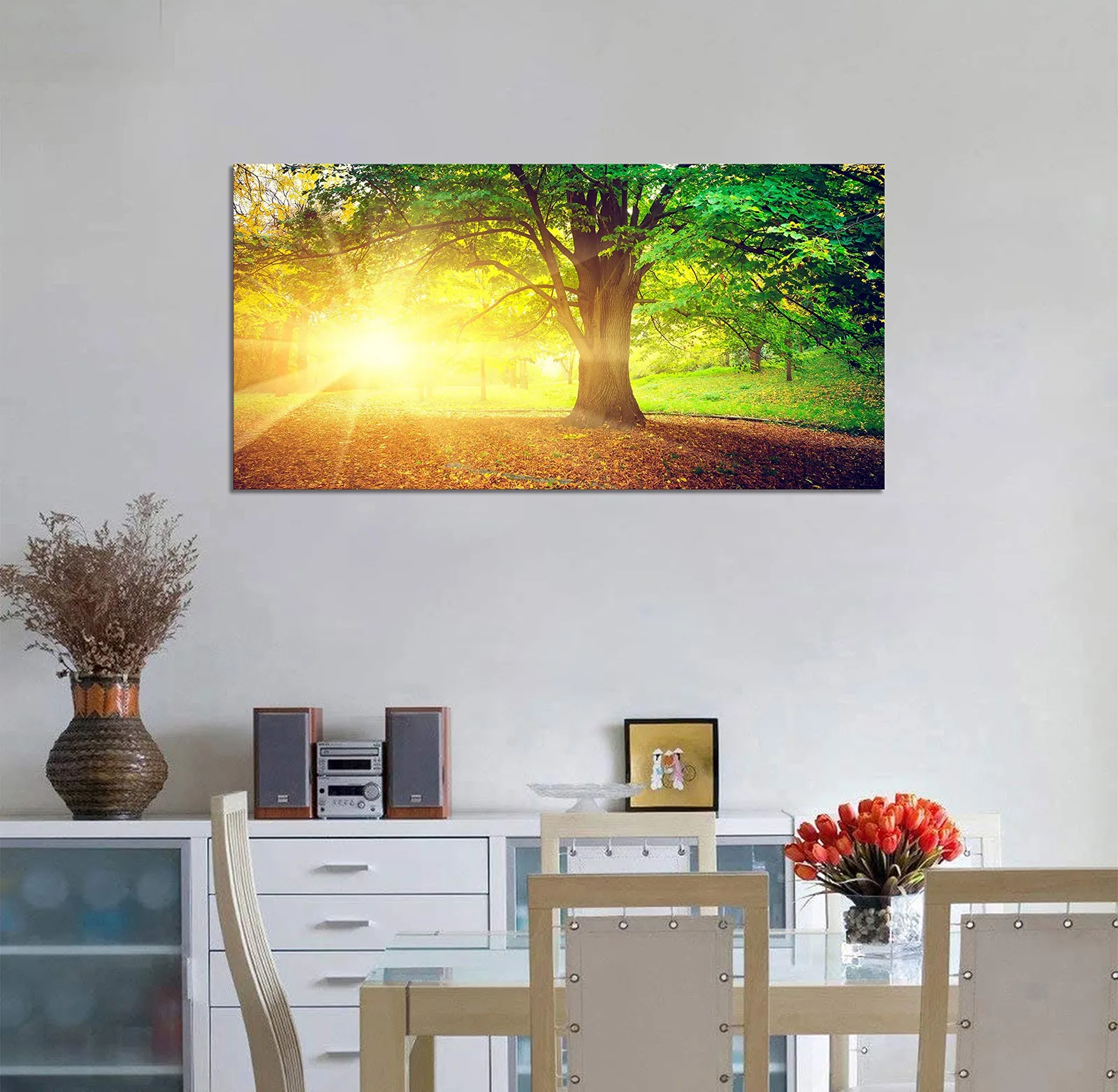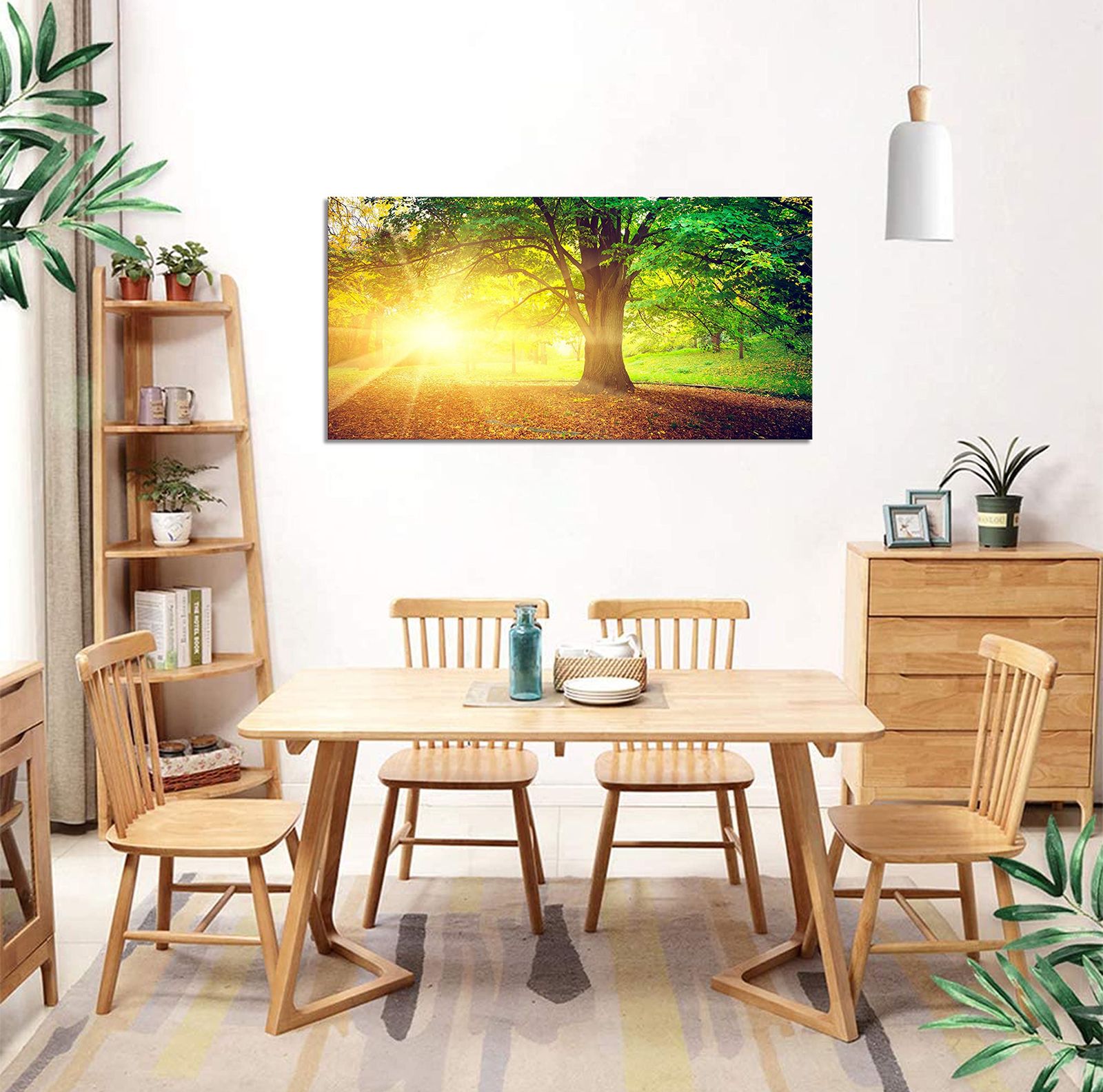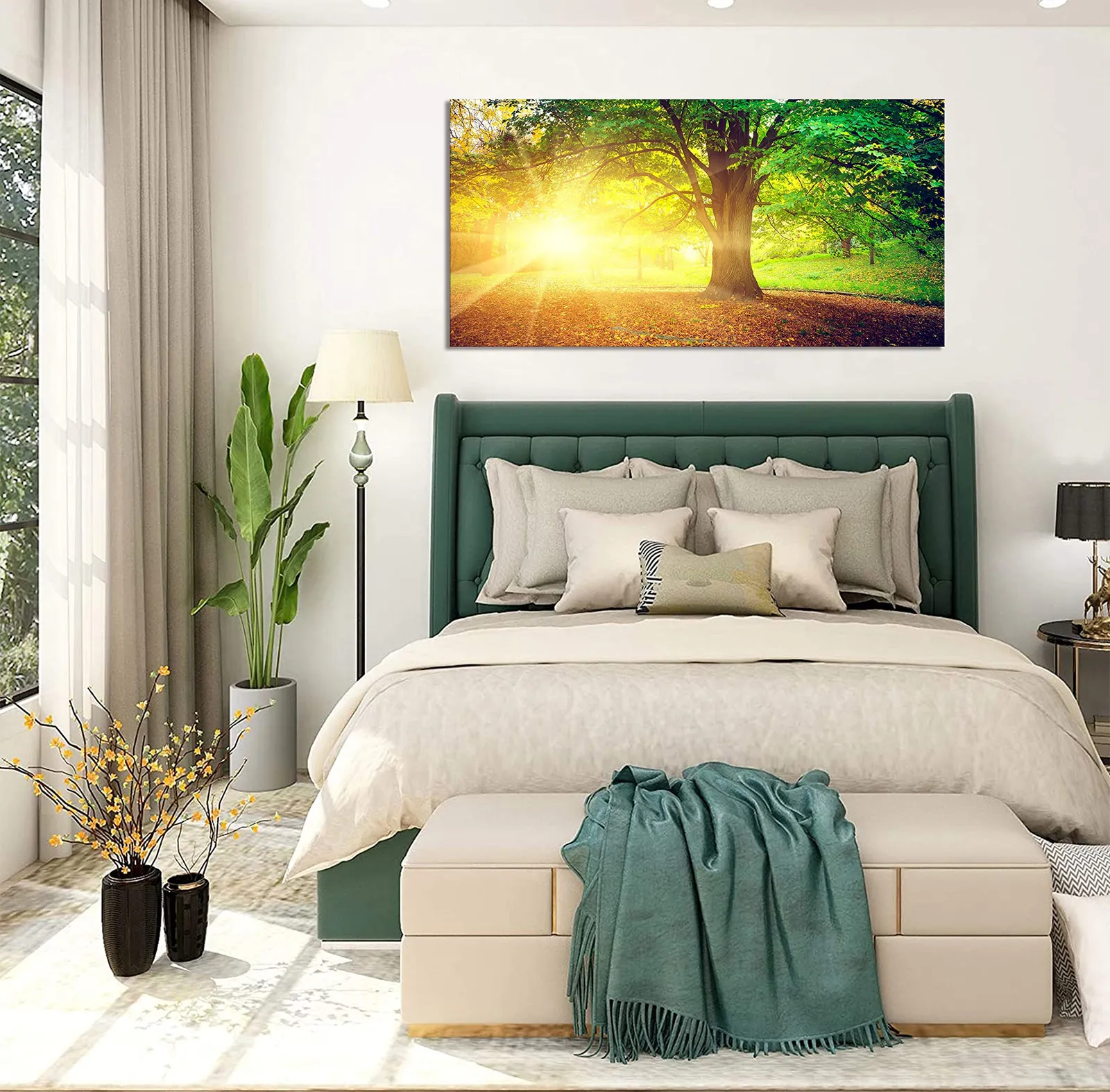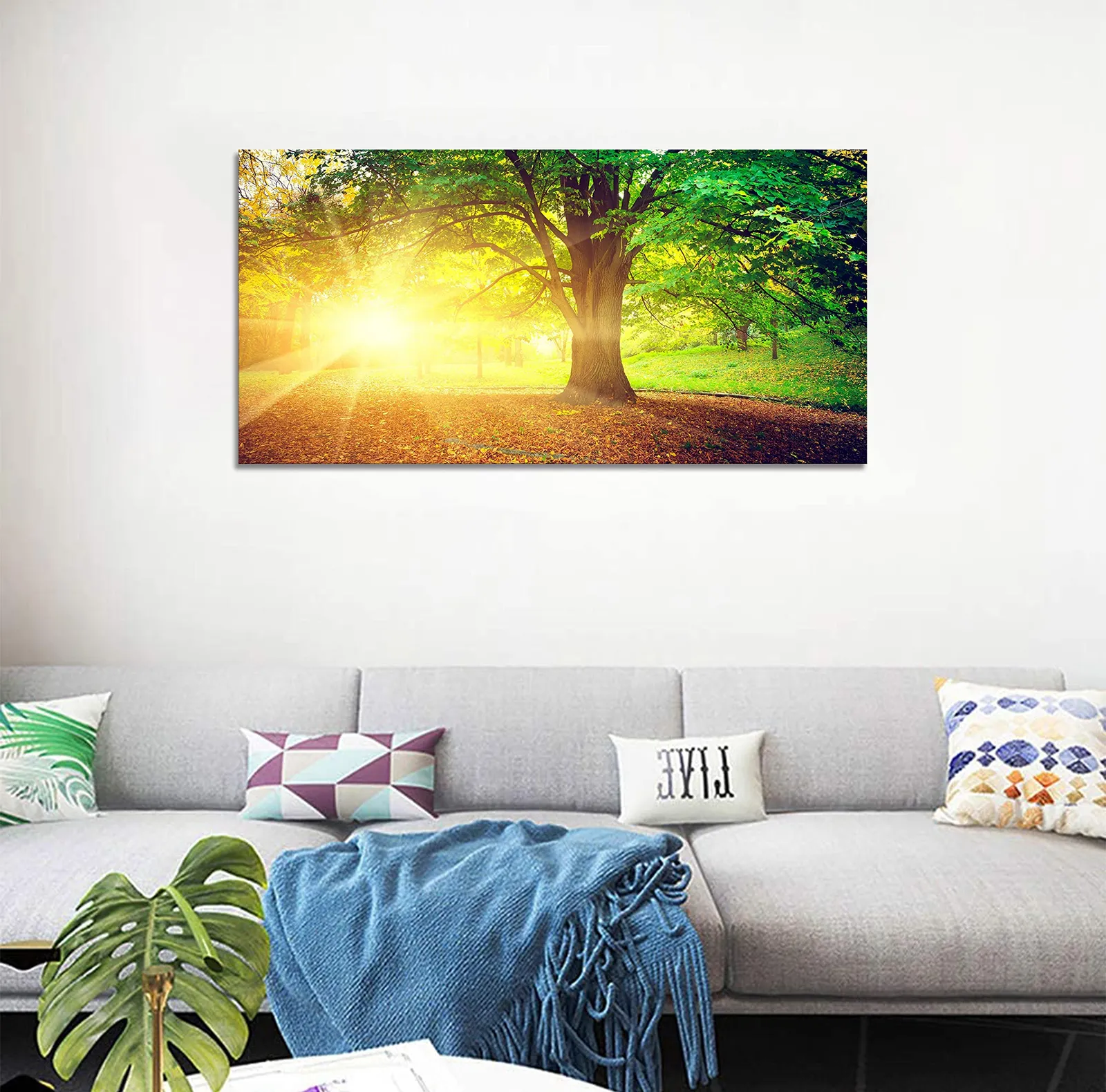 森 アートパネル 木 風景画 太陽の光 絵 風景画 壁掛け 壁掛け 風景 部屋飾り 壁絵 木枠付きの完成品 (30x60cm)