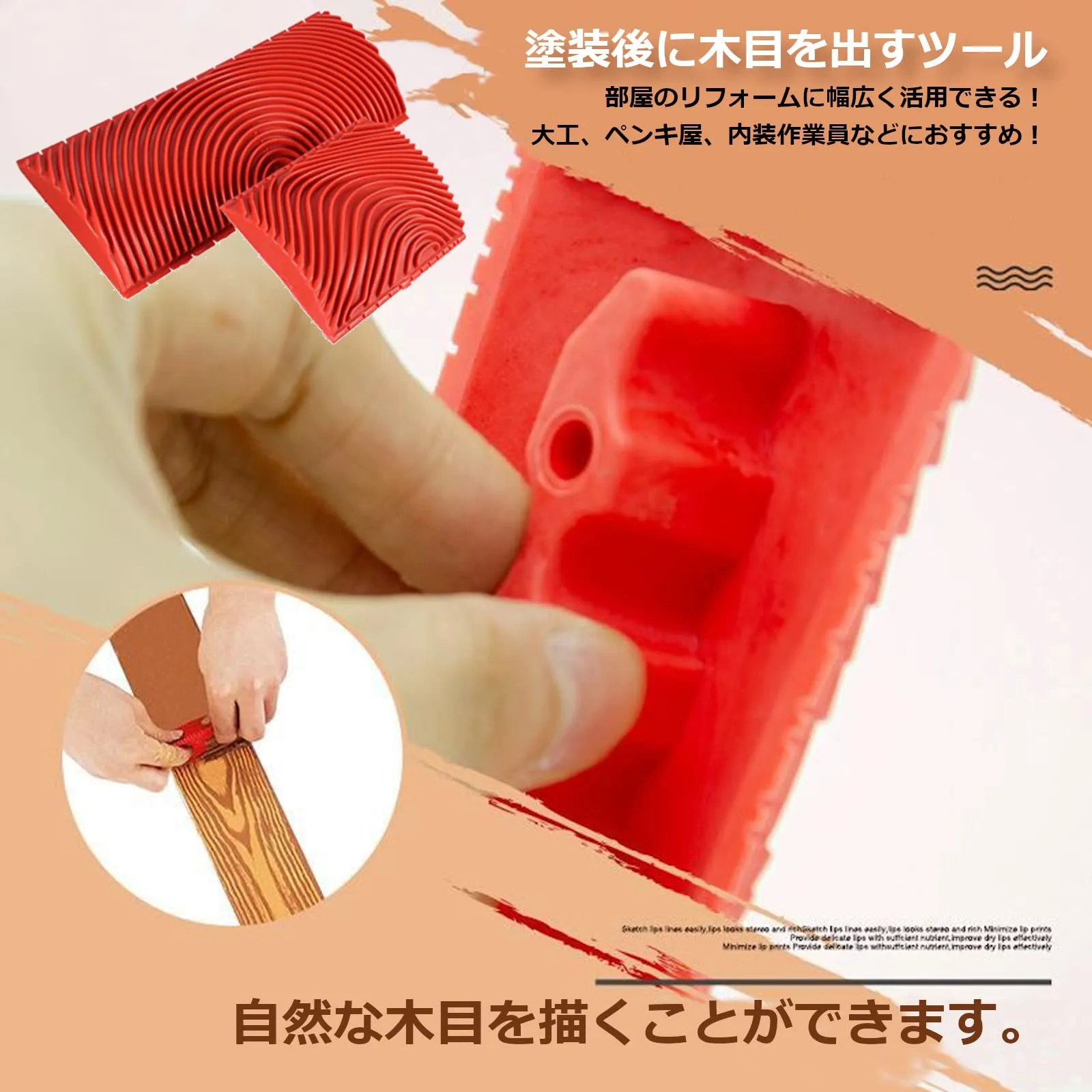 こちらの木目柄グレーニングツールと、ウッド調ガーデニングツールのセットは、木目っぽい塗装したい方や自分設計でいる方だけでなく、初心者の入門編としてのDIY挑戦のかたなどはばあ広くお使いいただけまっす。※使用の際コツ等ありますので、納得いく形にしていただくため練習・試し作成等していただいてからお使いください。