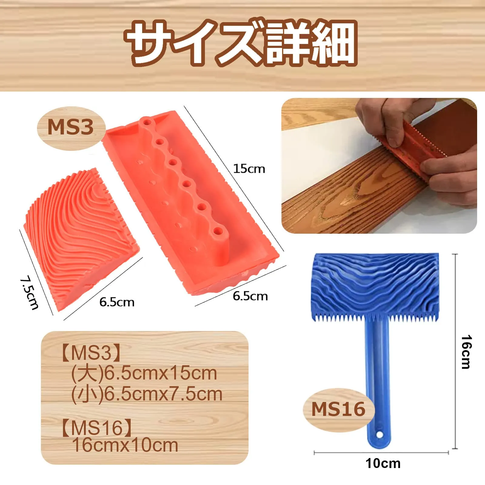 UTST 木目調塗装 ウッド調 塗装 ローラー 室内 木材 木目塗装ツール 塗装用品 塗装用道具 (M3+M16)
