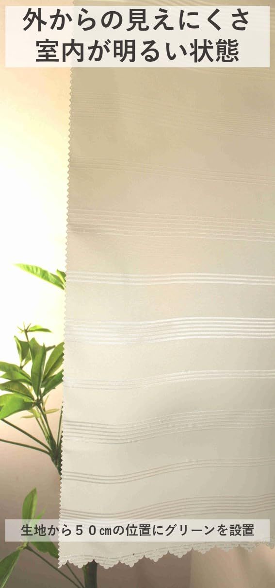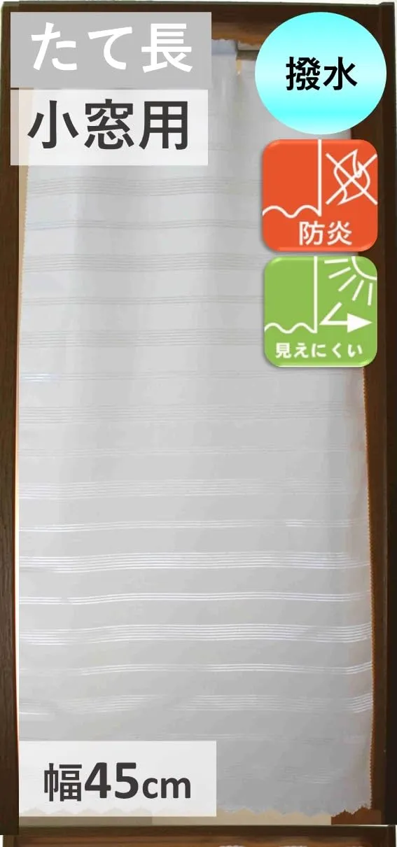 clothshop布や 防炎 撥水 カフェ カーテン シャワーカーテン 小窓用 UV 断熱 外から見えにくい 幅 約45x丈70cm ボーダー無地 オフホワイト