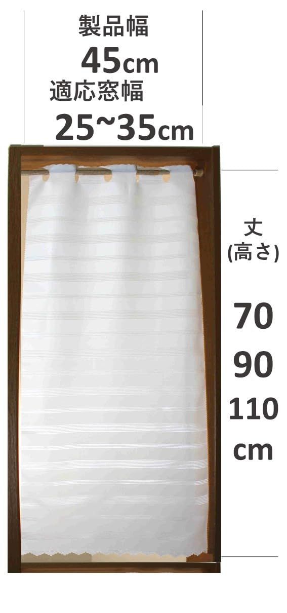 【製品・カラー・サイズ】 防炎撥水加工付き カフェカーテン・ボーダー無地 オフホワイト・幅45cm x 丈70cm 適応幅:25?35cm