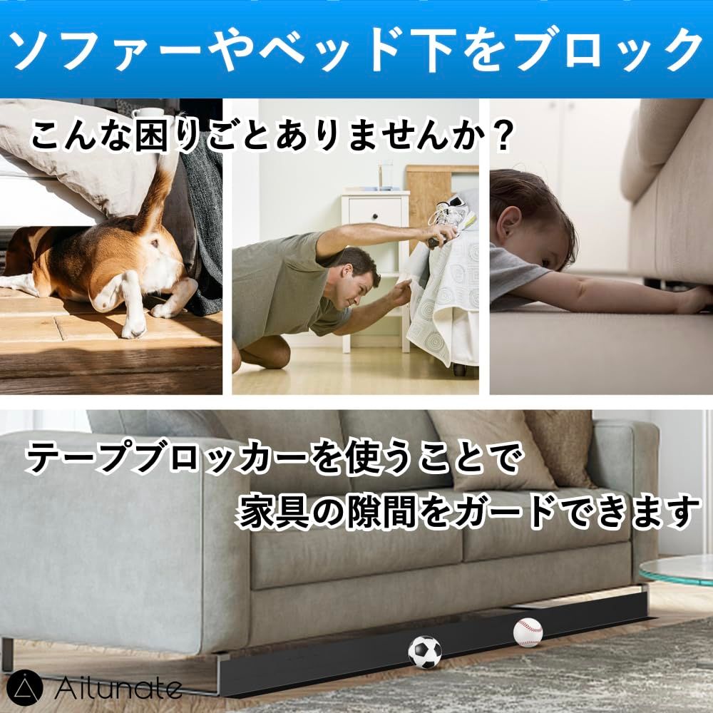 Ailunate 隙間テープ ソファー下ブロッカー ベッド下 おもちゃ ペット 犬 猫 ブロック ガード 壁 侵入防止 ストッパー (幅11cmx長さ6m)