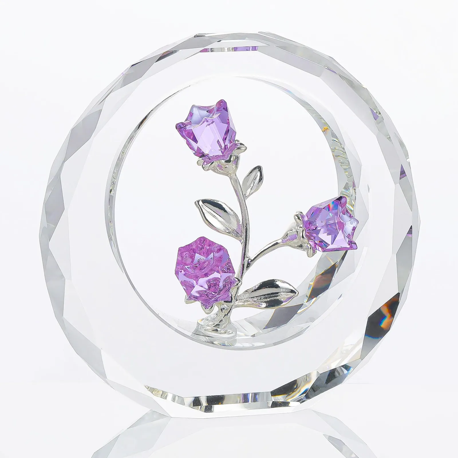 クリスタル紫 ローズ 誕生日プレゼント 女性 人気 K9クリスタルいバラギフト バラの花束 薔薇 置物 結婚記念日プレゼント 結婚祝い バレンタインデー 彼女 妻 母への贈り物 枯れない花(パープル)