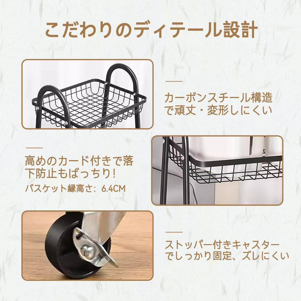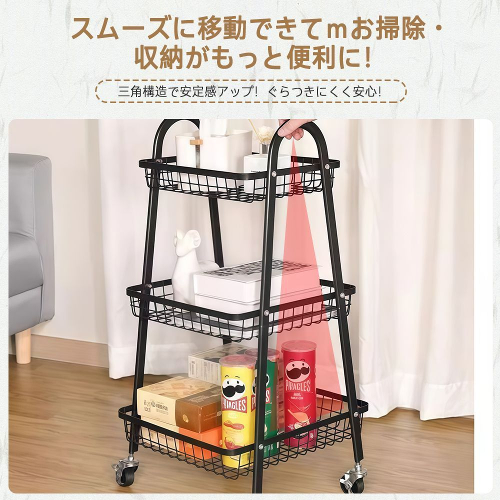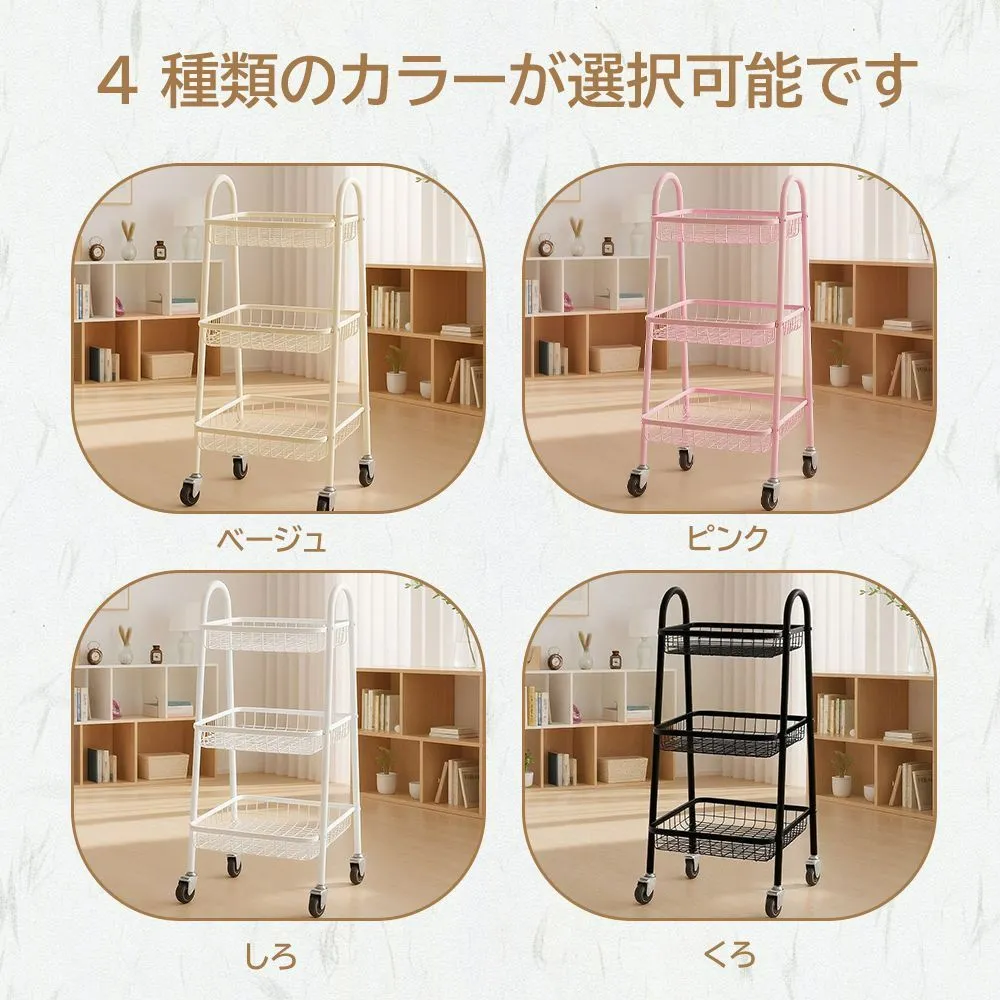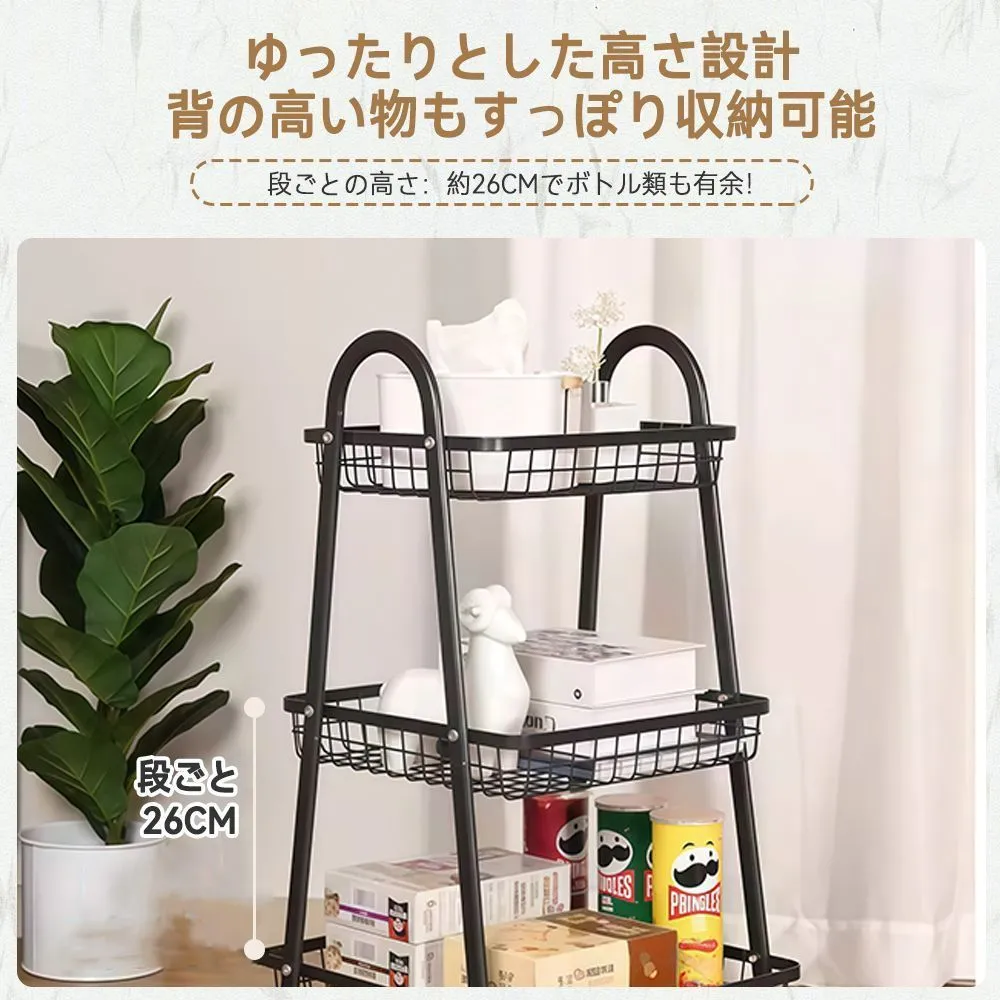 収納ラック キャスター付き キッチンワゴン A型パイプ 三段 四段 取っ手付き 隙間収納 バスケット キッチン収納 ランドリー収納 多目的ラック キッチンラック アウトレット おしゃれ 簡単組み立て