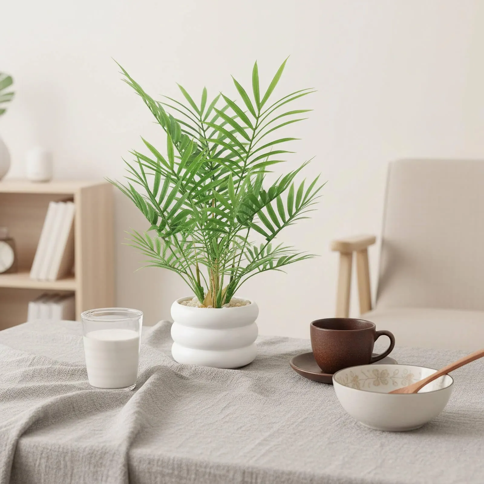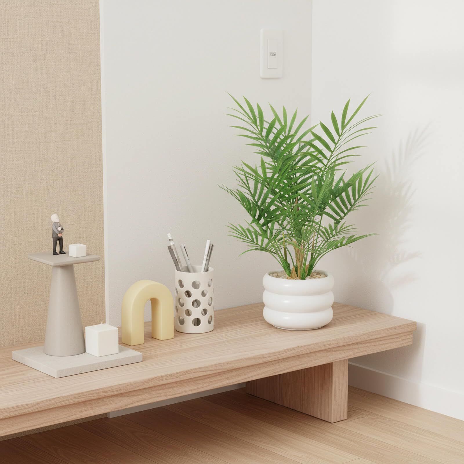 陶器鉢で安定感があり、倒れにくく安心。玄関やデスク周りなど、どこに置いても美しい存在感を発揮します。