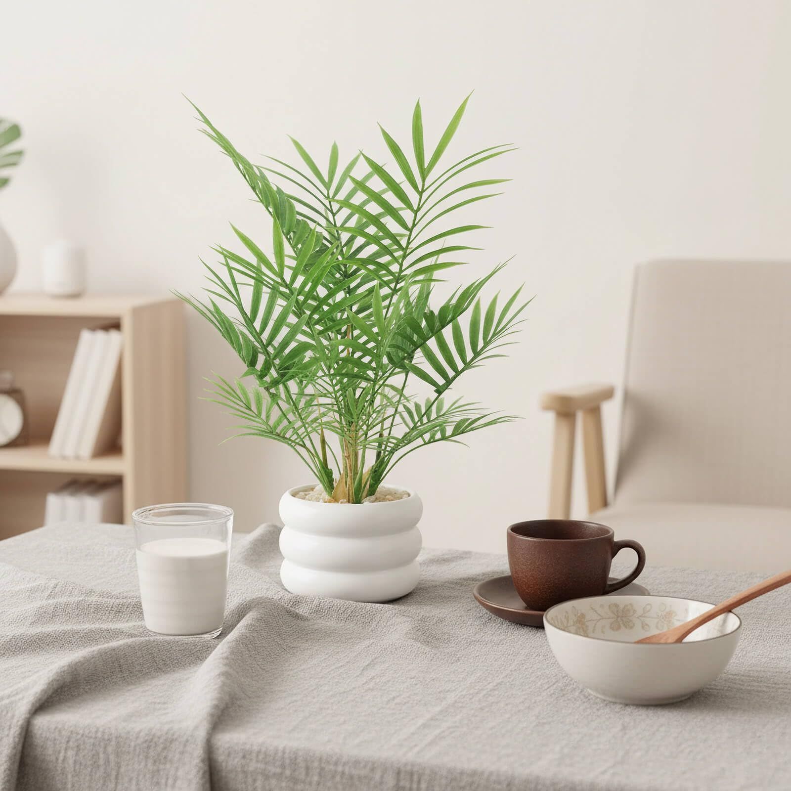 【安定感のある鉢付き&ギフト向き】 陶器鉢で安定感抜群。母の日や新築祝い、誕生日などのギフトにも最適。卓上サイズで置き場所を選びません。