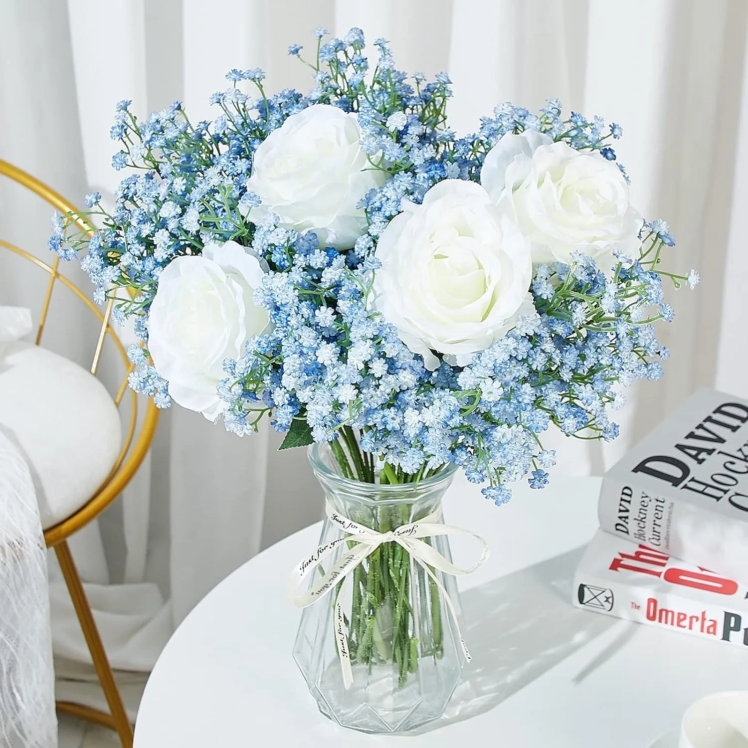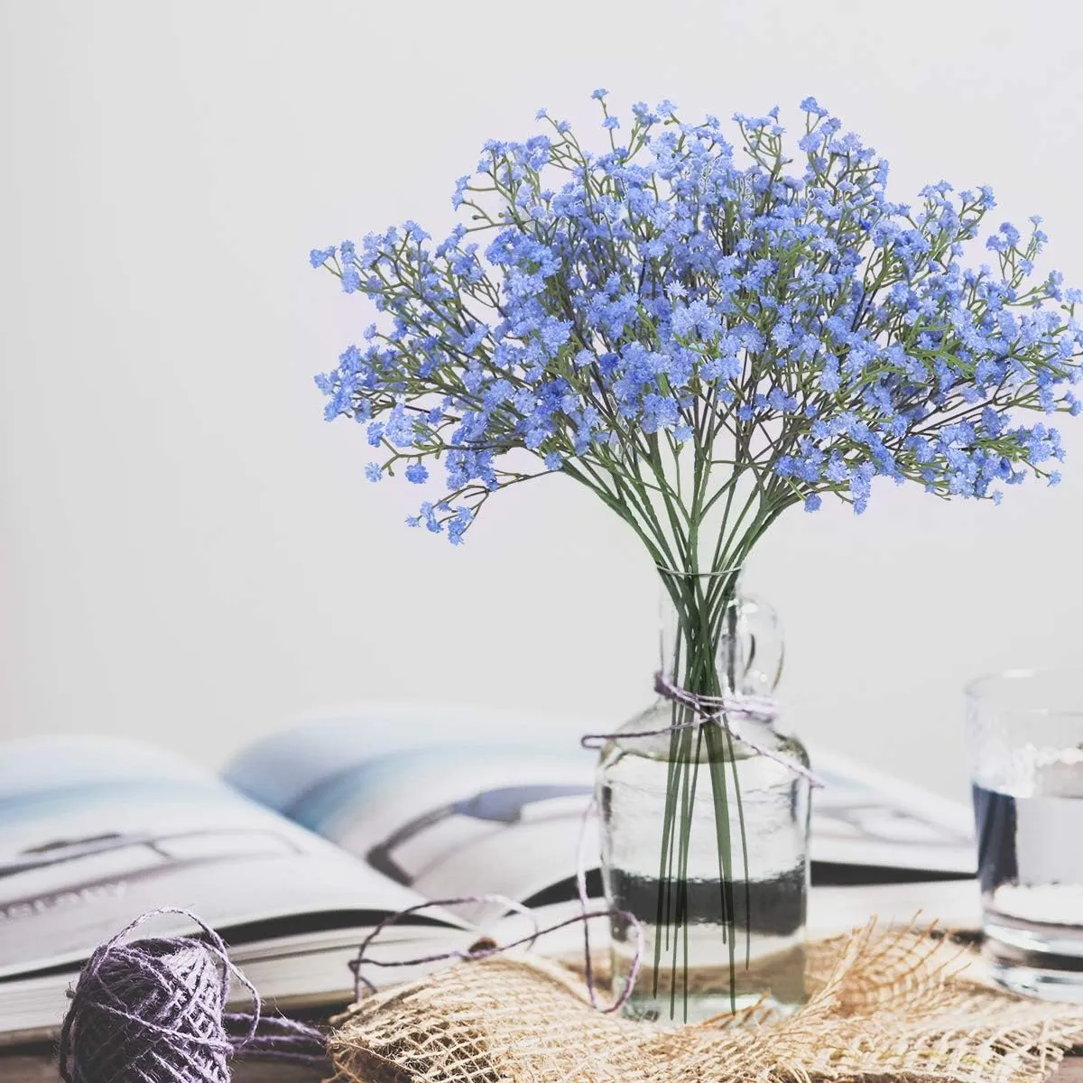 【春の雰囲気】装飾花として最適です。特別な青くて上品なかすみ草は、春をより美しくし、春の暖かさに満ちた感じを人々にもたらします。オフィスや家庭に自然な雰囲気を加えて、寝室や食卓に置いて、自然の中にいるような感覚も味わうことができるのです。